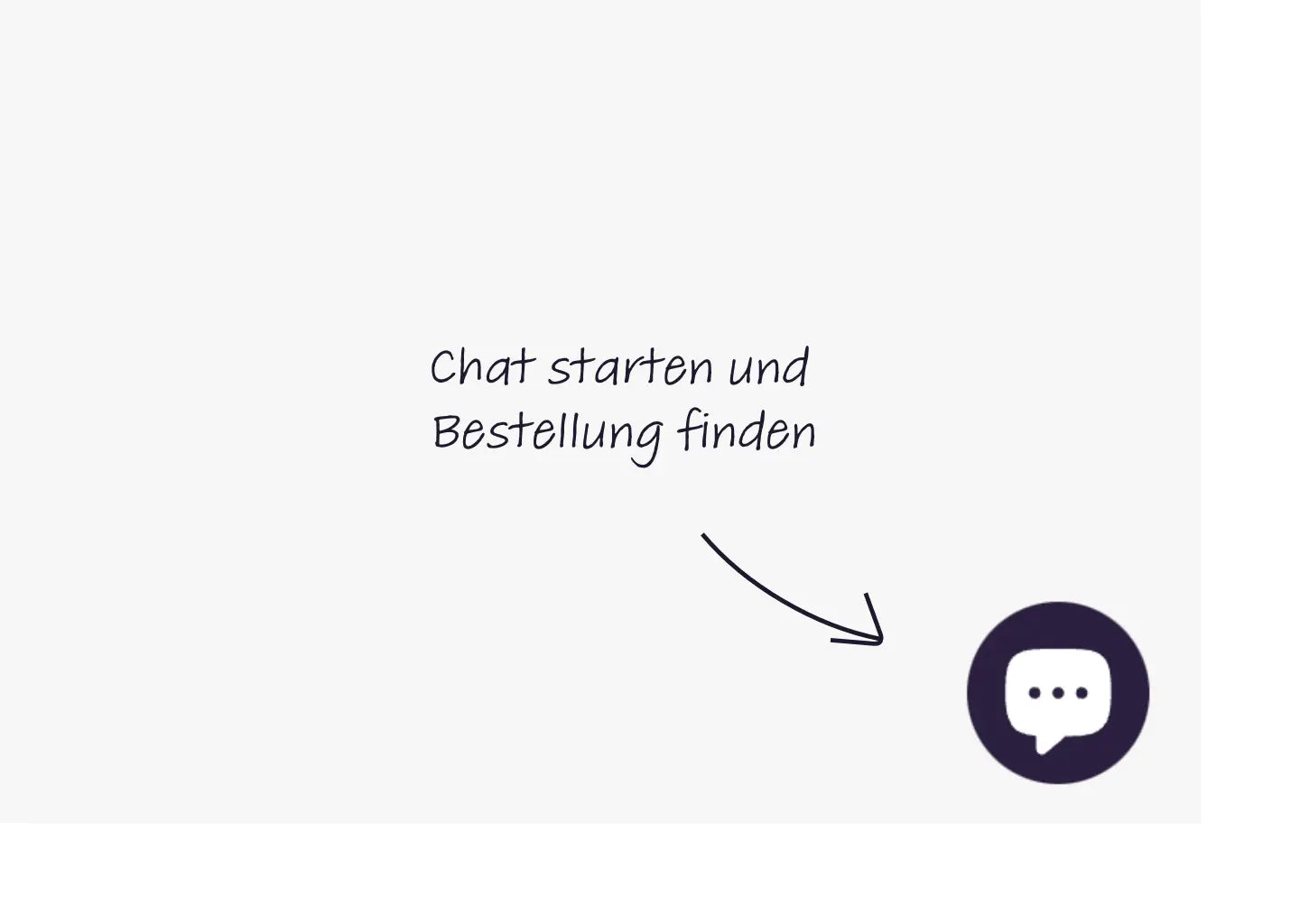 Um deine Bestellung zu finden, kannst du ganz einfach den Chat unten rechts nutzen. Dort findest du in der Schnellauswahl die Möglichkeit, nach deiner Bestellung zu suchen.