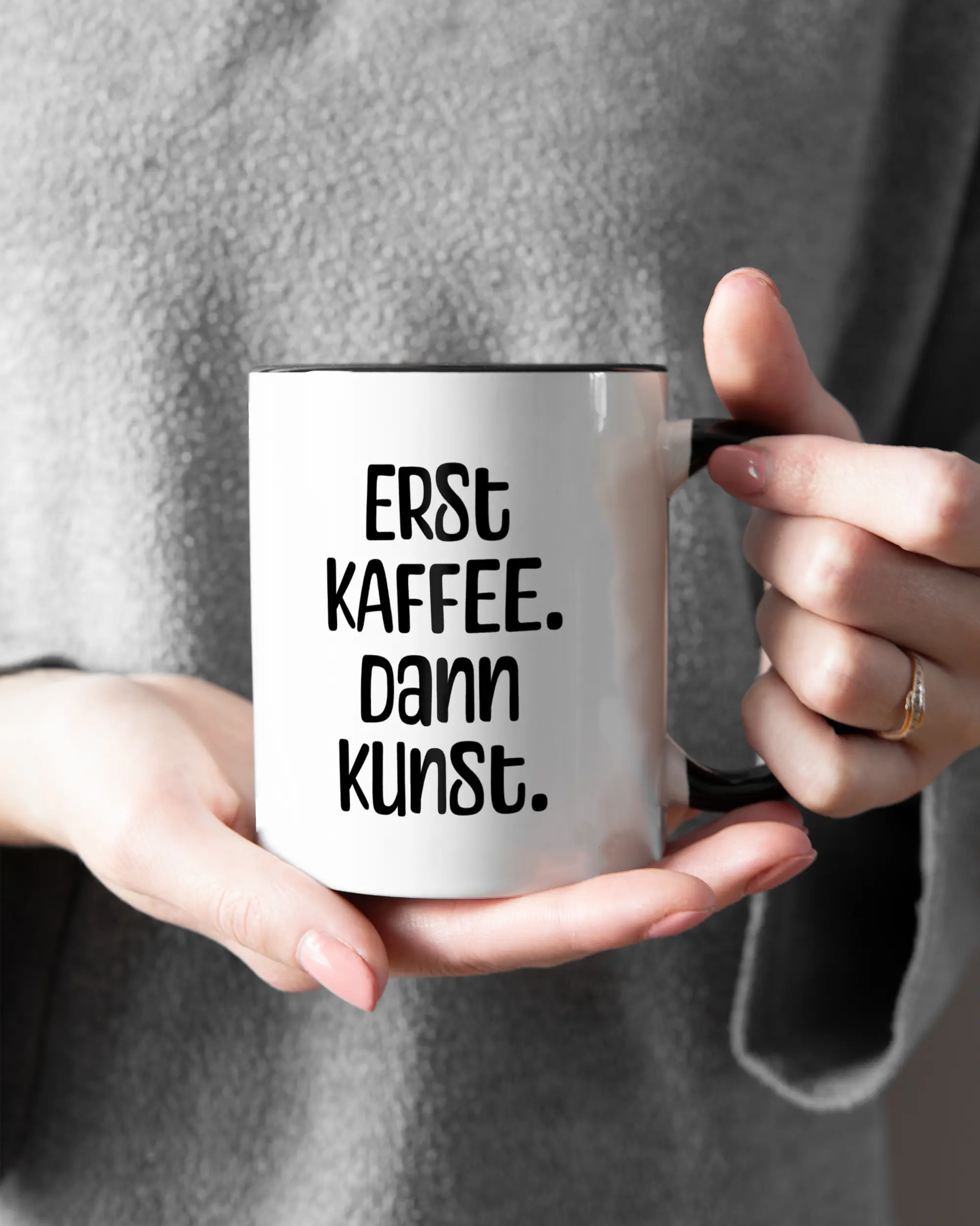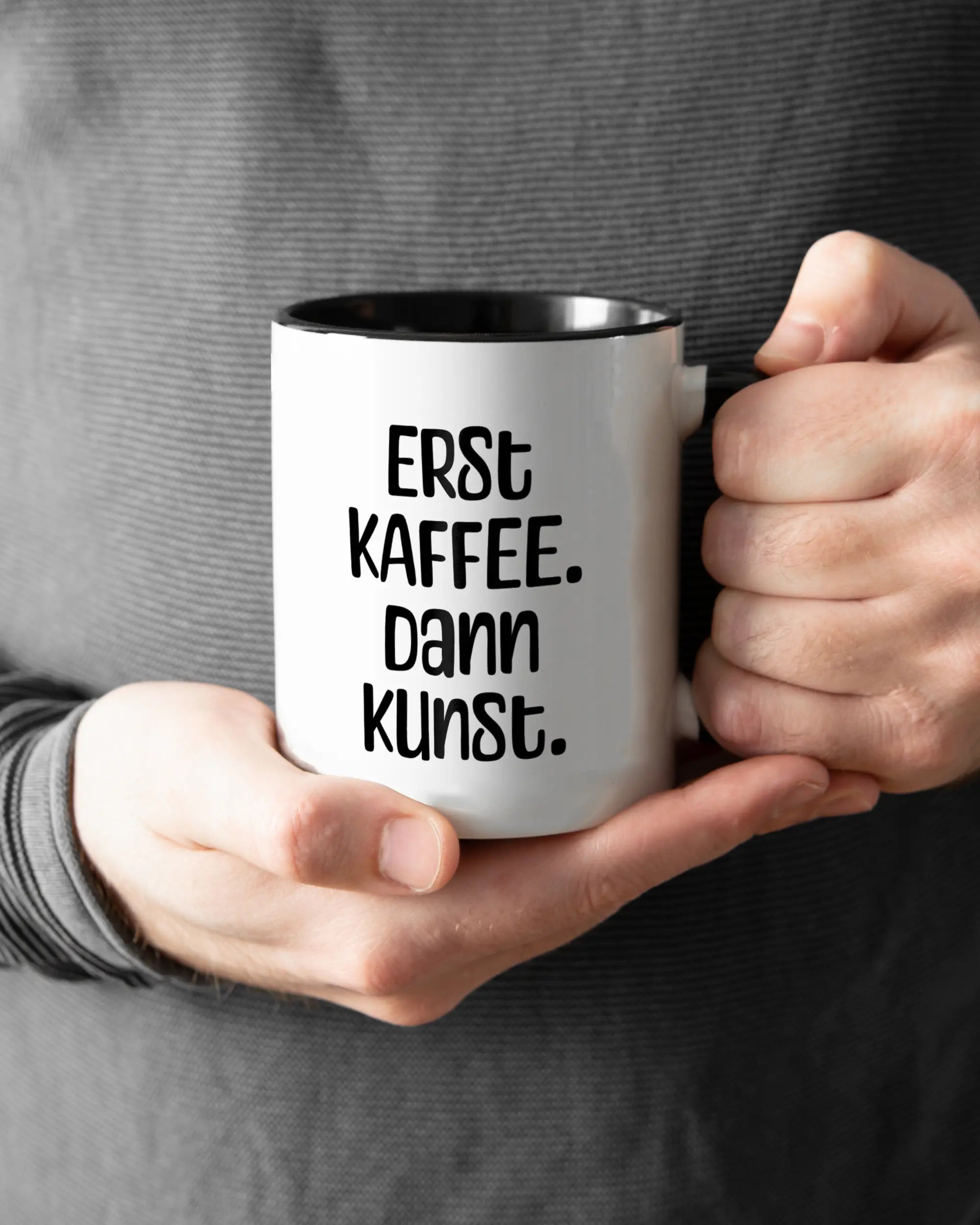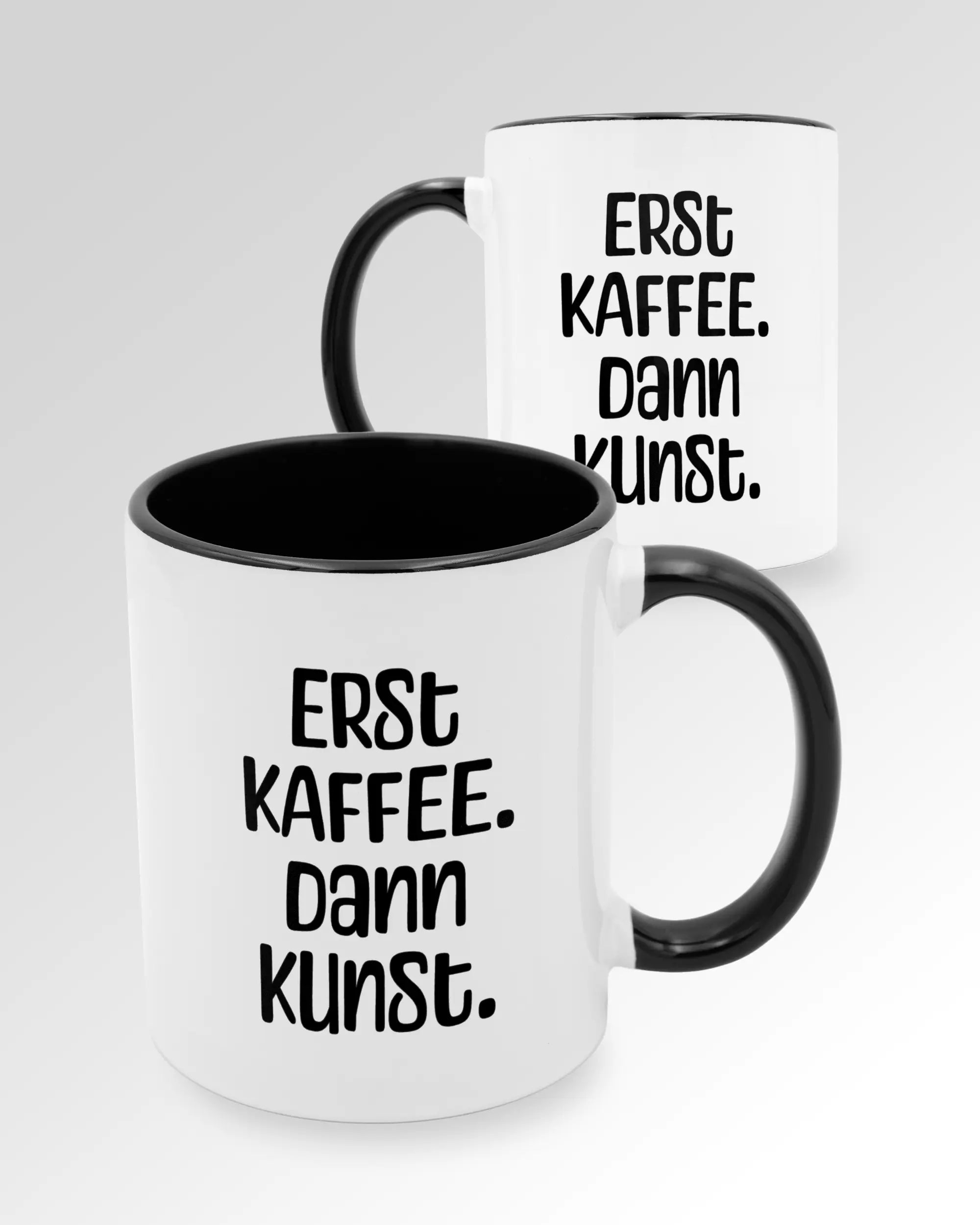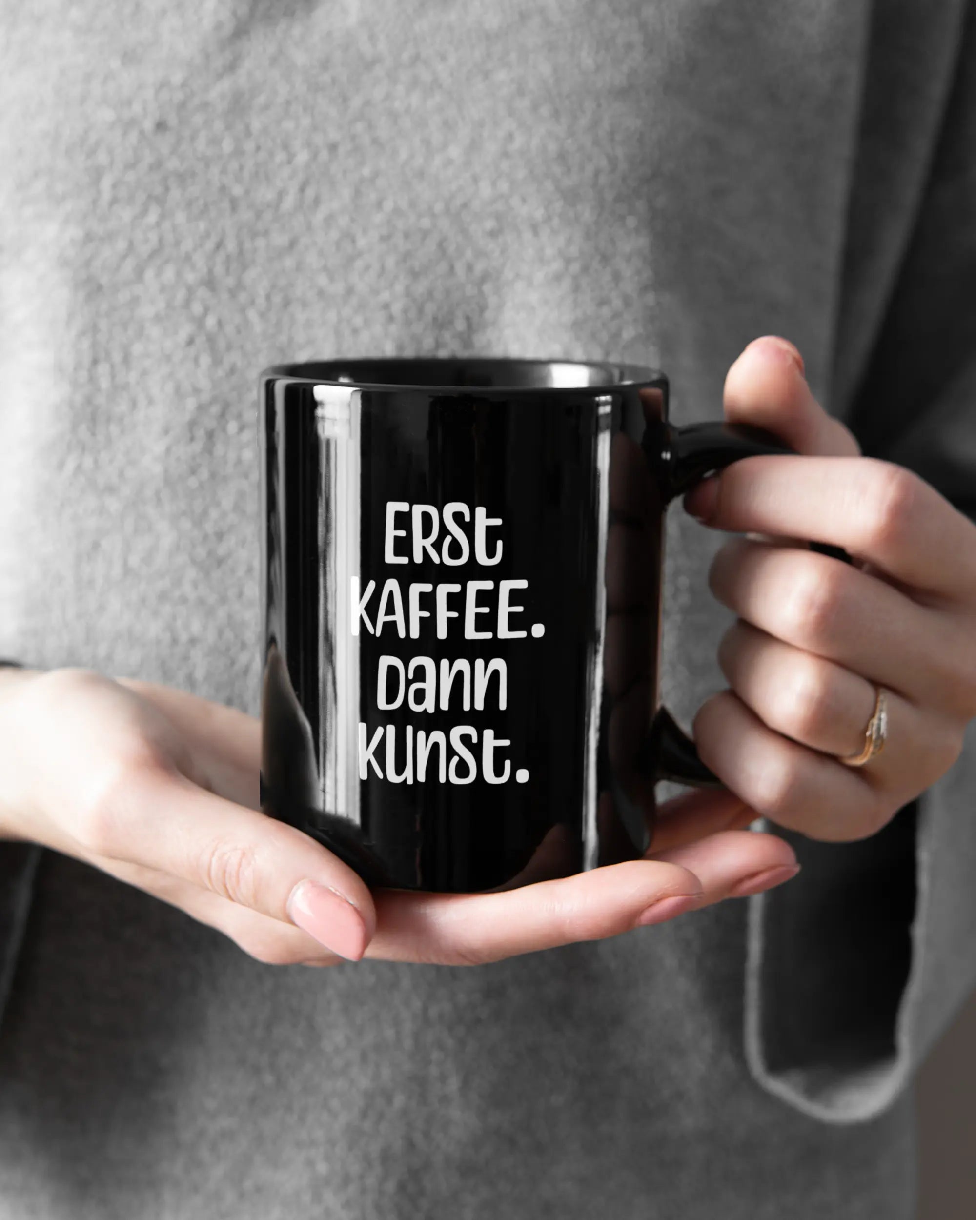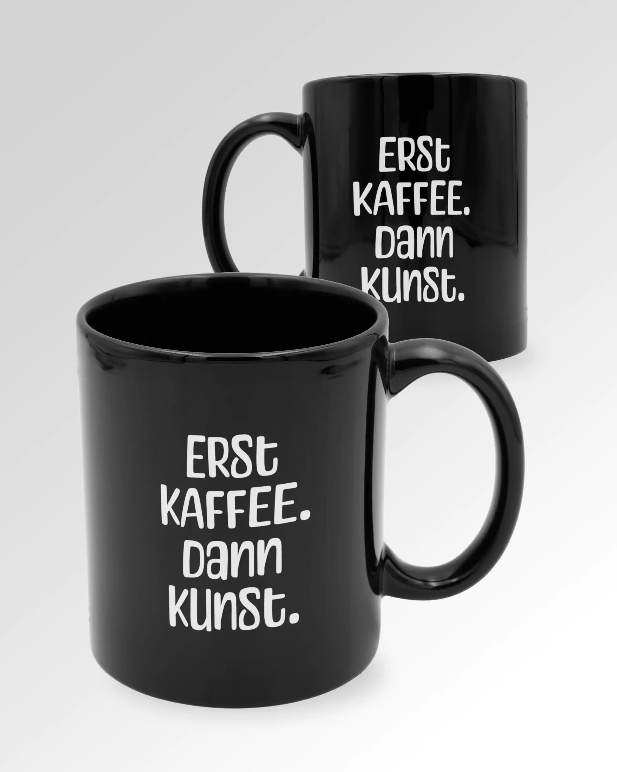 Unser Tassen Design „Kaffee vor Kunst“ ist in drei verschiedenen Farben erhältlich. Bereit für eine echt stilvolle Tasse, für die dich jeder vergöttert? Dann empfehlen wir dir die Tasse Schwarz-Weiß. Du suchst eine schlichte weiße Tasse ohne Schnick-Schnack? Dann ist unsere weiße Tasse genau richtig für dich. Wenn du gerne aus der Masse herausstichst und eher der dunklen Seite angehörst, solltest du ein Auge auf die schwarze Tasse werfen. Deine Farbe, deine Wahl.