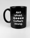 „Ain’t afraid. Coffee’s strong.“ – Ein minimalistisches Design mit Kaffeebohnen, das Mut und Koffein-Power perfekt verbindet.