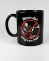 Unser Tassen Design „Nimm das weg“ ist in drei verschiedenen Farben erhältlich. Bereit für eine echt stilvolle Tasse, für die dich jeder vergöttert? Dann empfehlen wir dir die Tasse Schwarz-Weiß. Du suchst eine schlichte weiße Tasse ohne Schnick-Schnack? Dann ist unsere weiße Tasse genau richtig für dich. Wenn du gerne aus der Masse herausstichst und eher der dunklen Seite angehörst, solltest du ein Auge auf die schwarze Tasse werfen. Deine Farbe, deine Wahl.