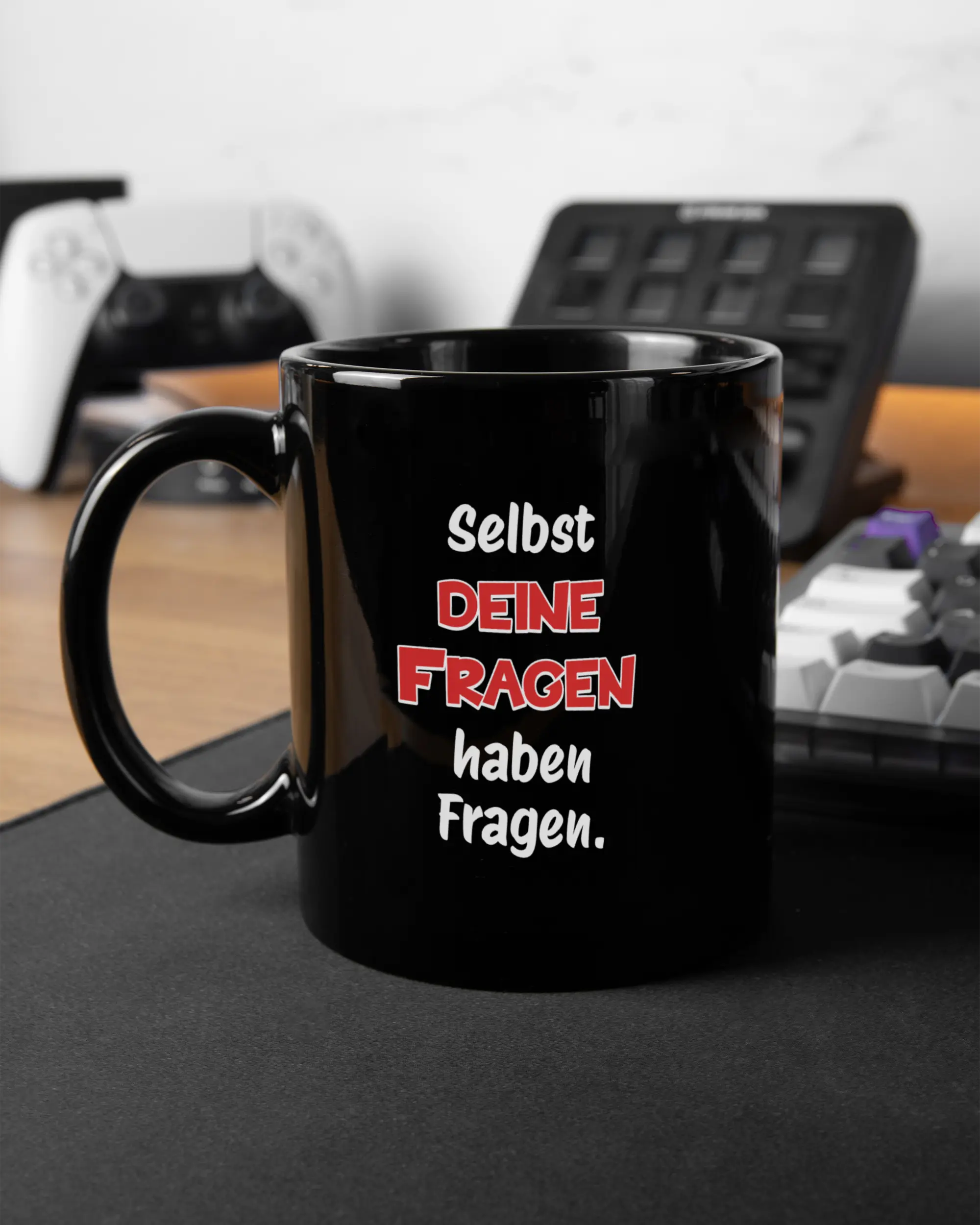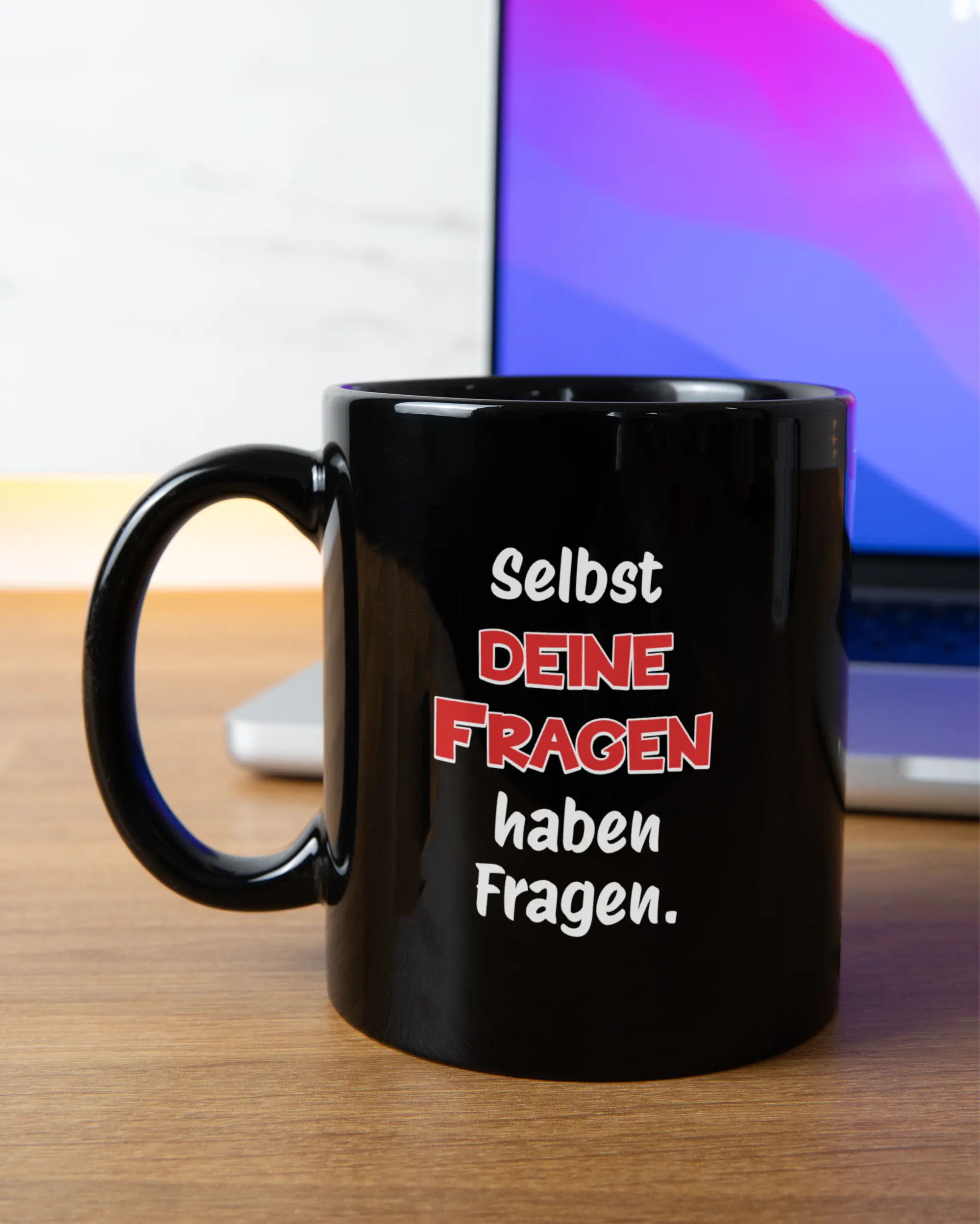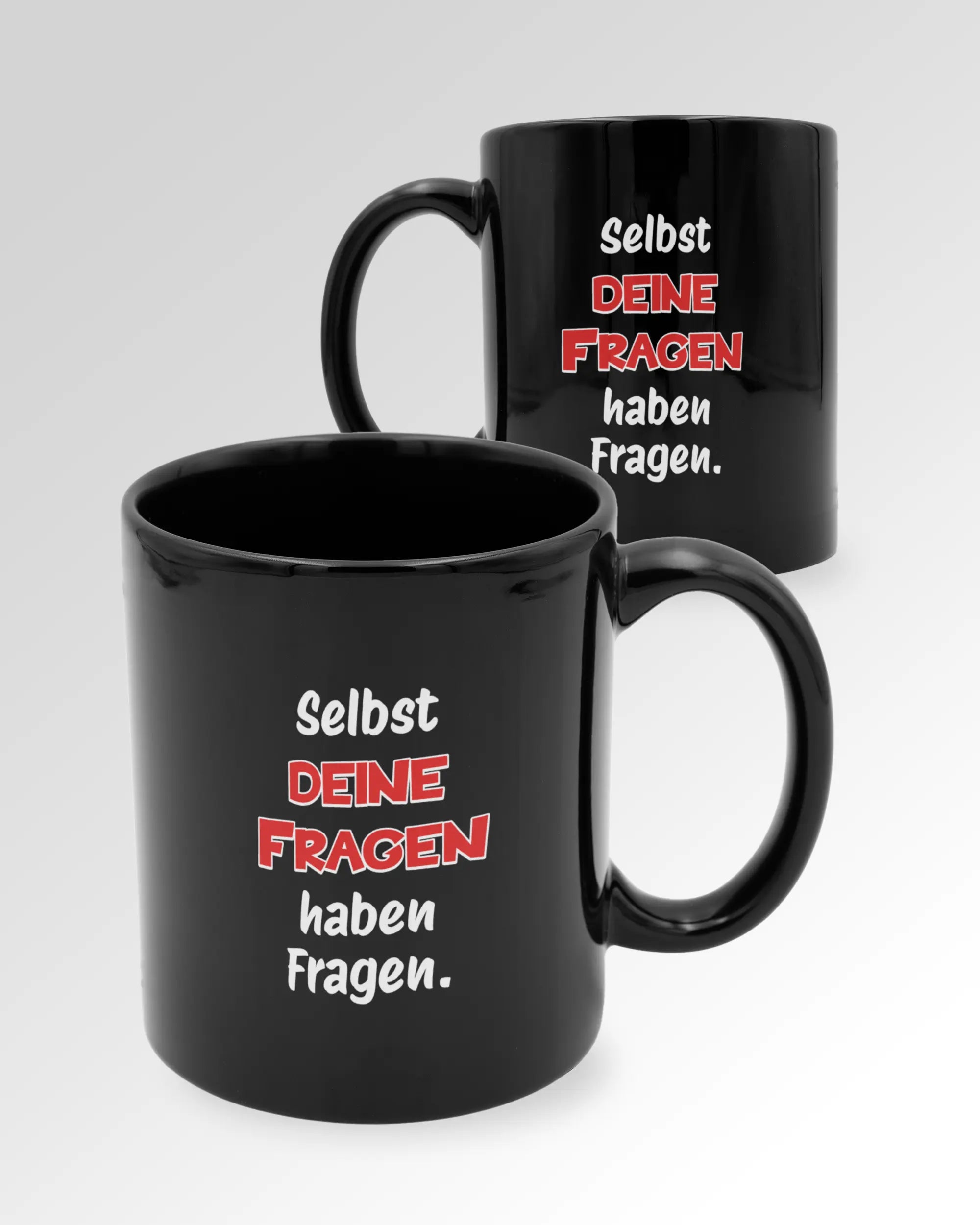 Genieße dein starkes Heißgetränk in der (besorgnis)erregenden Tasse in Schwarz.