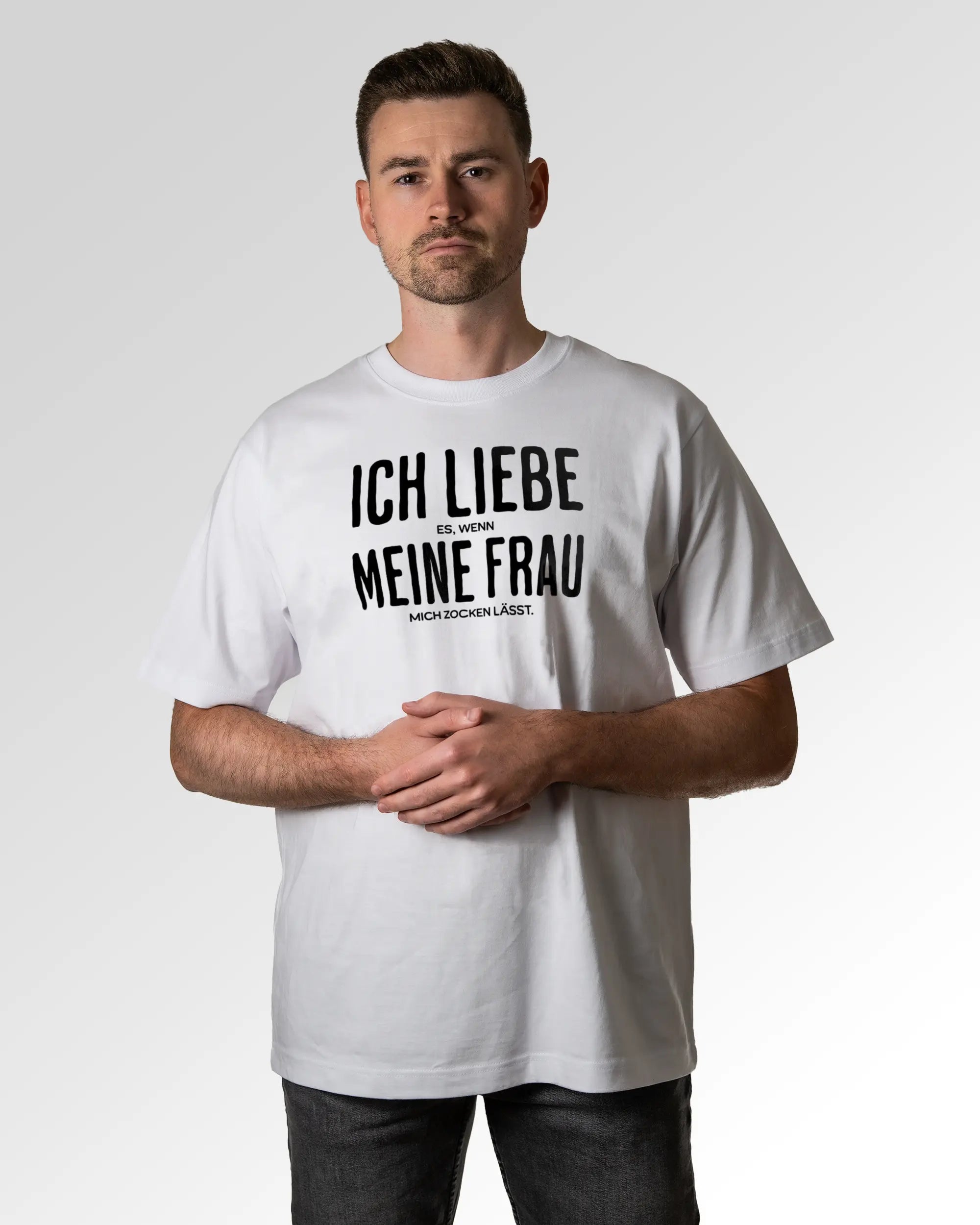 Unser T-Shirt Design „Ich liebe meine Frau“ ist in drei verschiedenen Fits erhältlich. Du suchst ein schlichtes farbiges, weißes oder schwarzes Basic T-Shirt? Dann ist unser Casual T-Shirt genau richtig für dich. Wenn du gerne ein weites T-Shirt trägst, solltest du ein Auge auf das Relaxed T-Shirt werfen. Freunde des Streetwear-Looks bzw. weiten und schweren T-Shirts können wir das Oversized T-Shirt ans Herz legen. Dein Fit, dein Style.