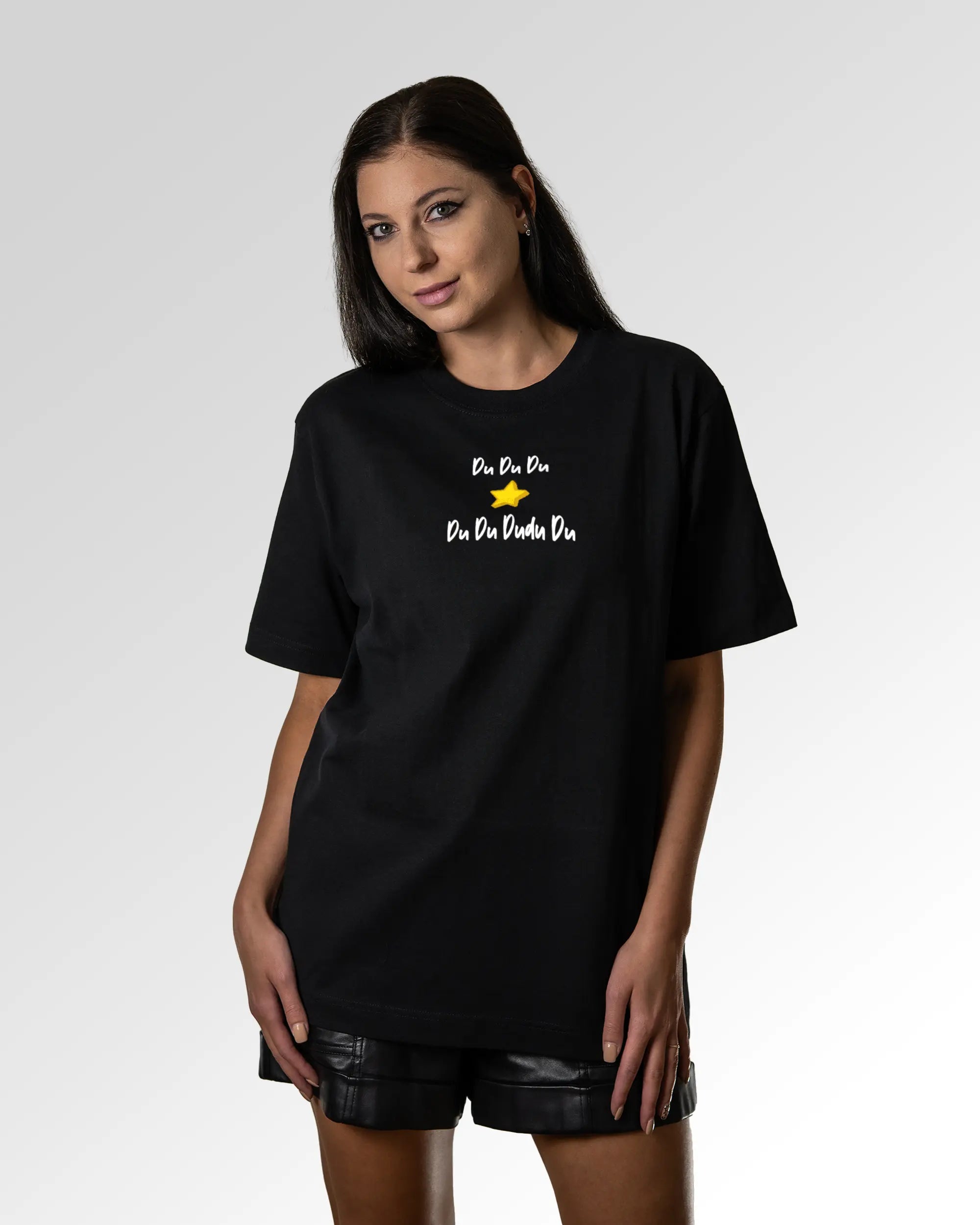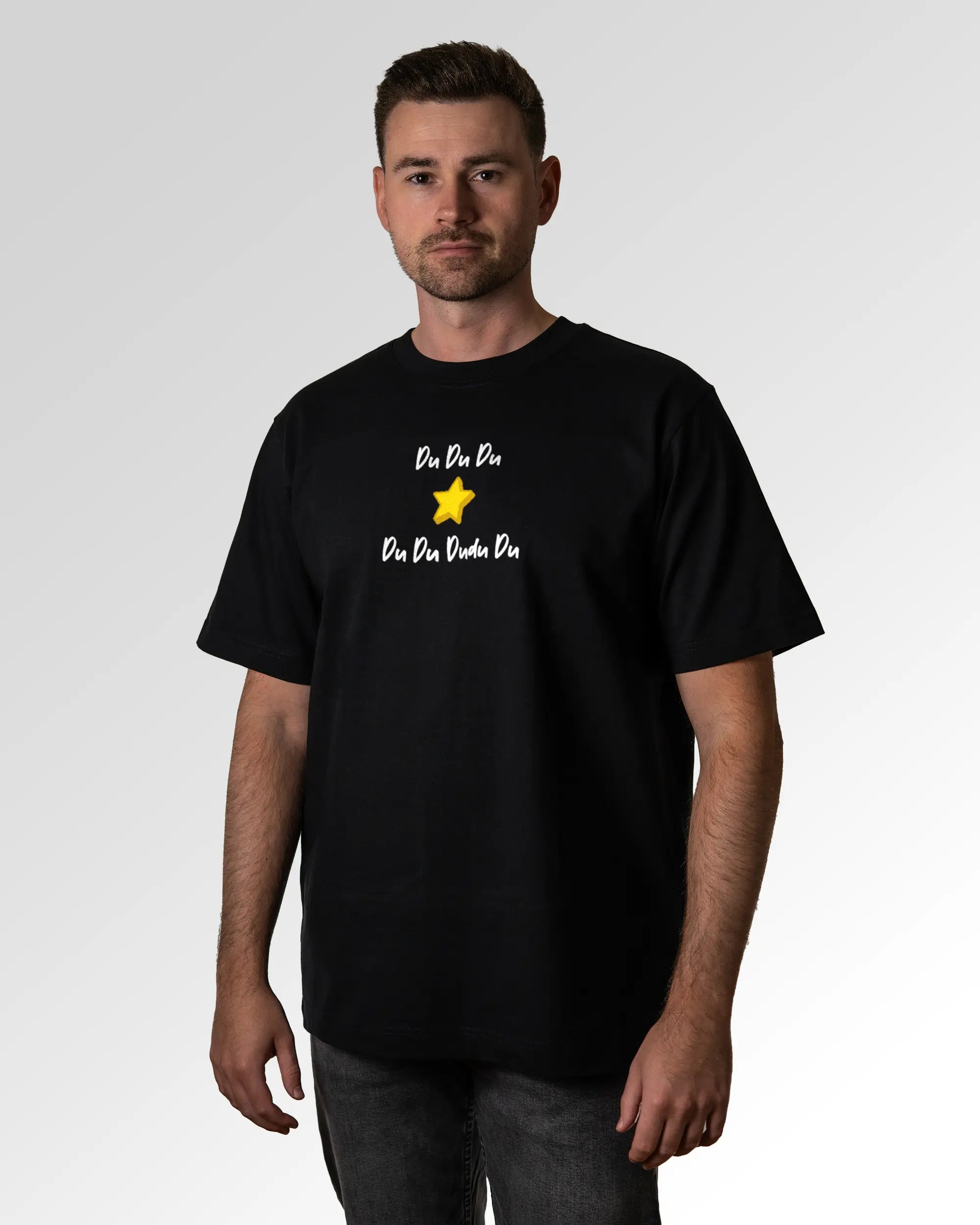 Unser T-Shirt Design „Stern Du Du Du“ ist in drei verschiedenen Fits erhältlich. Du suchst ein schlichtes farbiges, weißes oder schwarzes Basic T-Shirt? Dann ist unser Casual T-Shirt genau richtig für dich. Wenn du gerne ein weites T-Shirt trägst, solltest du ein Auge auf das Relaxed T-Shirt werfen. Freunde des Streetwear-Looks bzw. weiten und schweren T-Shirts können wir das Oversized T-Shirt ans Herz legen. Dein Fit, dein Style.