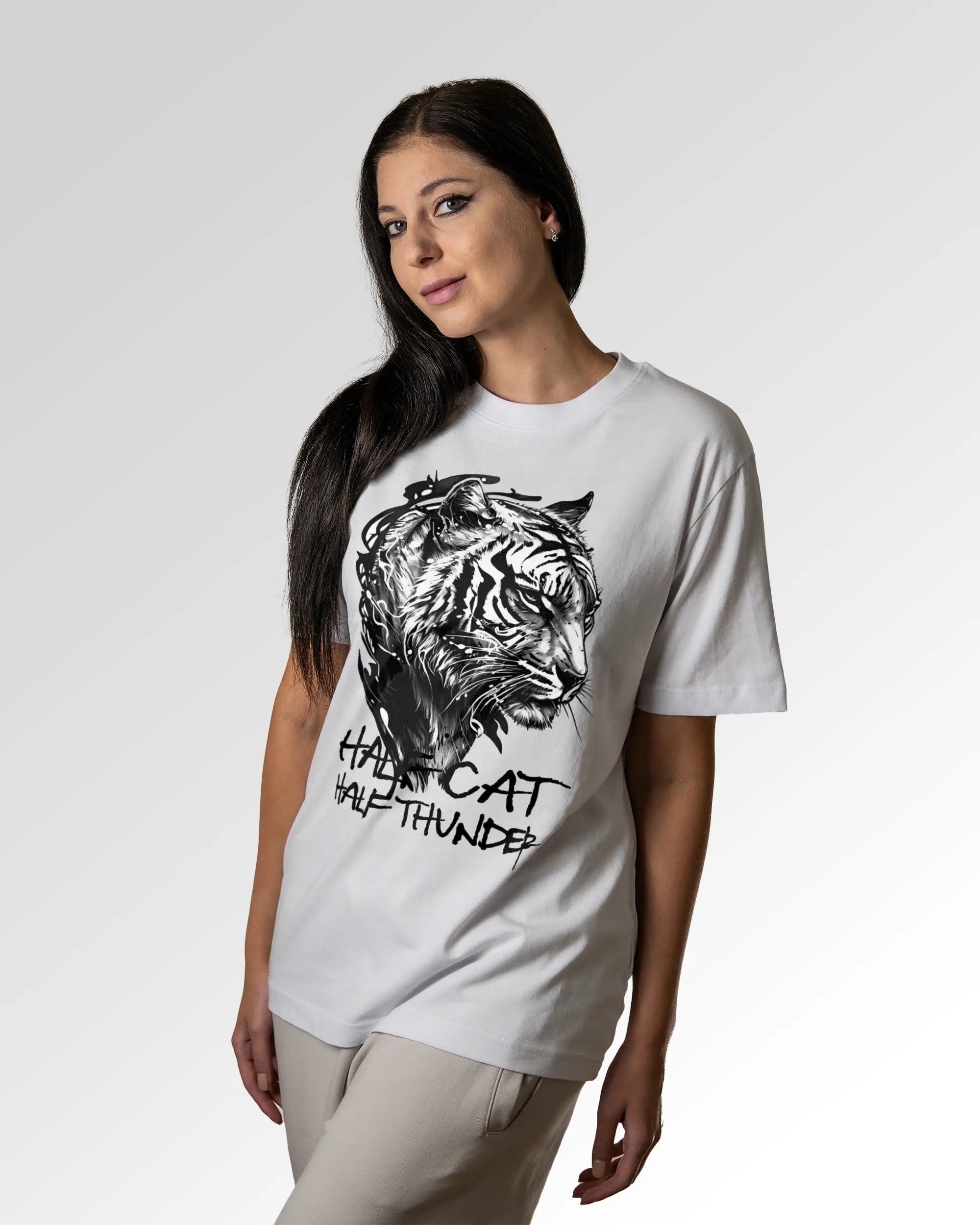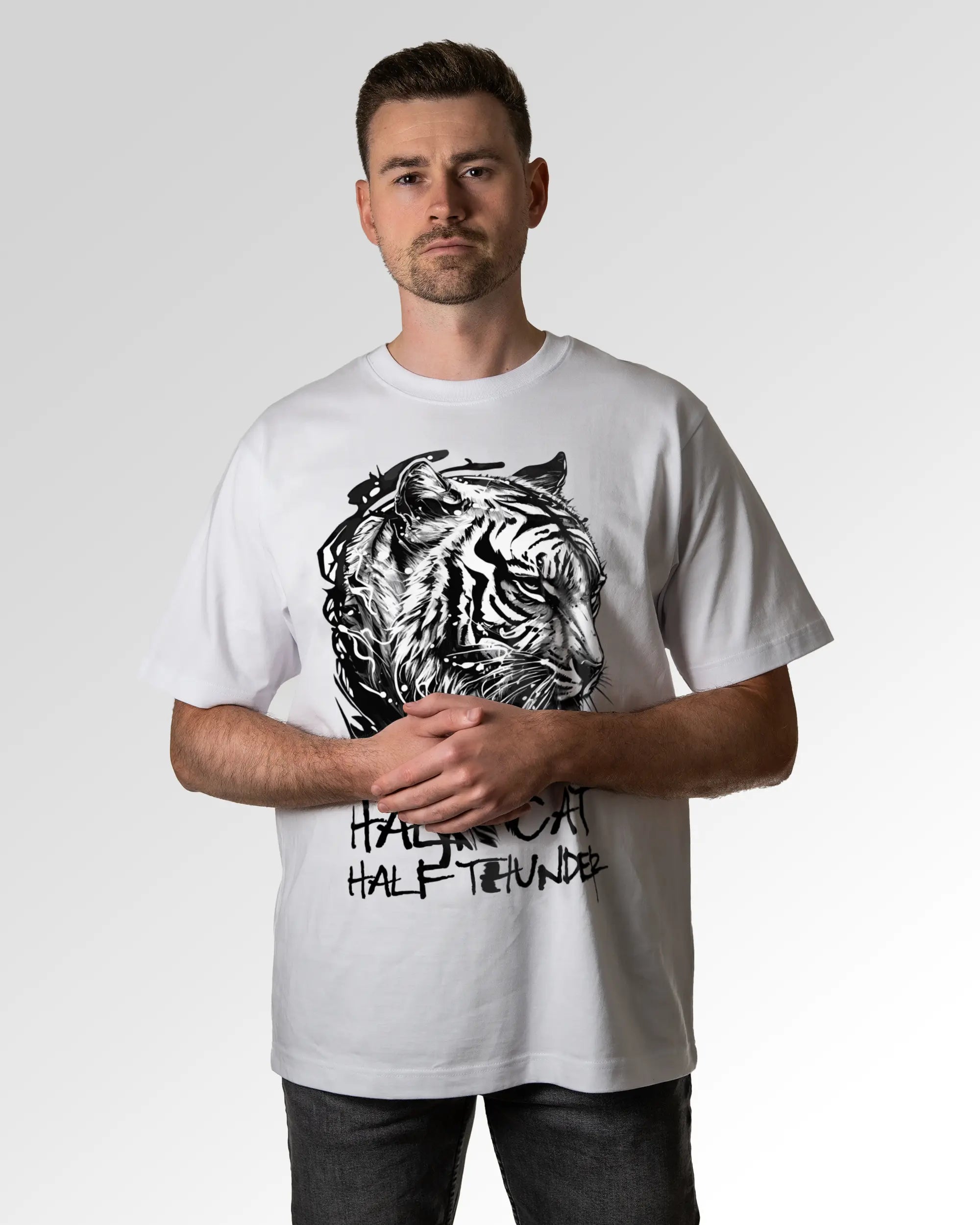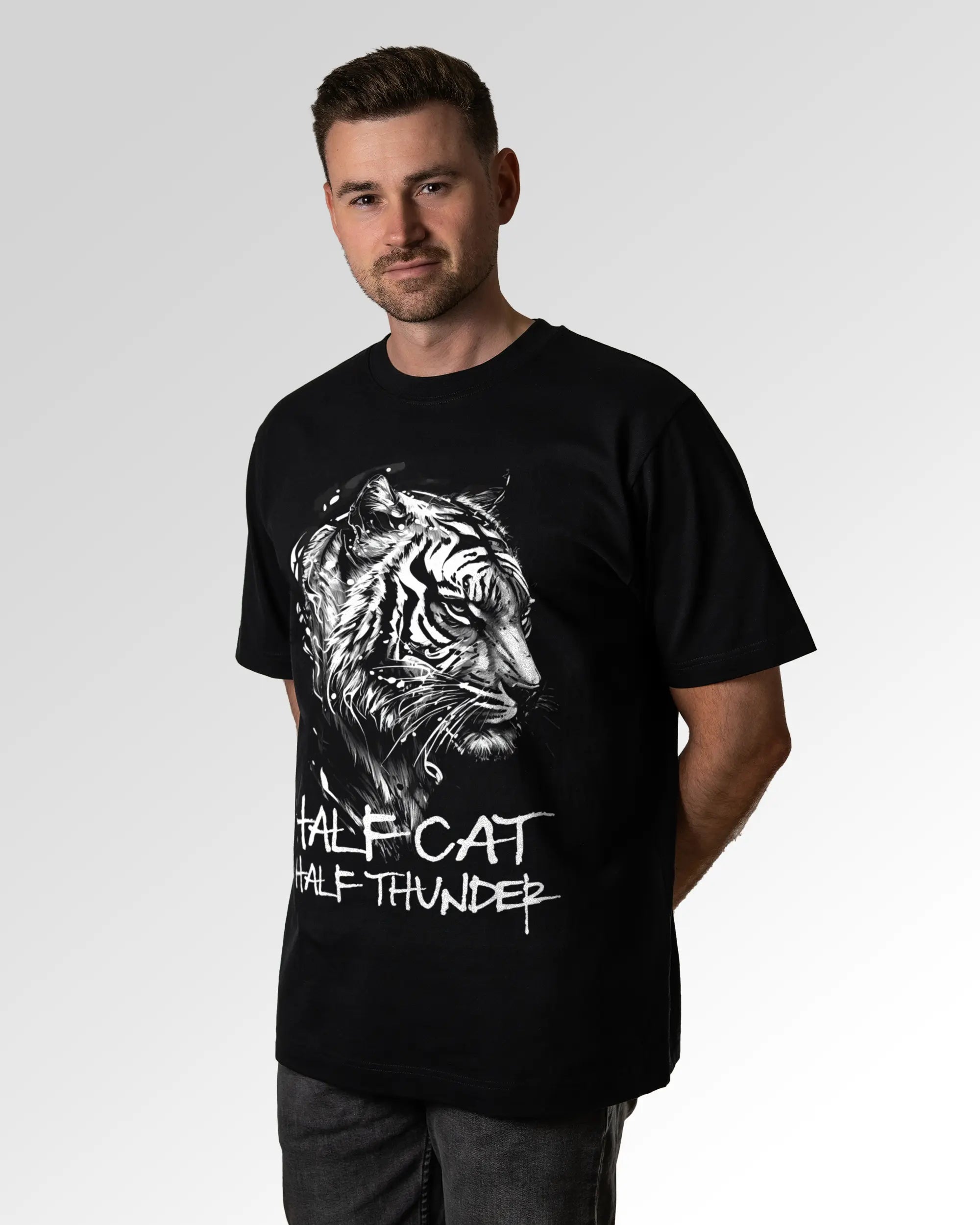 Unser T-Shirt Design „Tiger Fighter“ ist in drei verschiedenen Fits erhältlich. Du suchst ein schlichtes farbiges, weißes oder schwarzes Basic T-Shirt? Dann ist unser Casual T-Shirt genau richtig für dich. Wenn du gerne ein weites T-Shirt trägst, solltest du ein Auge auf das Relaxed T-Shirt werfen. Freunde des Streetwear-Looks bzw. weiten und schweren T-Shirts können wir das Oversized T-Shirt ans Herz legen. Dein Fit, dein Style.