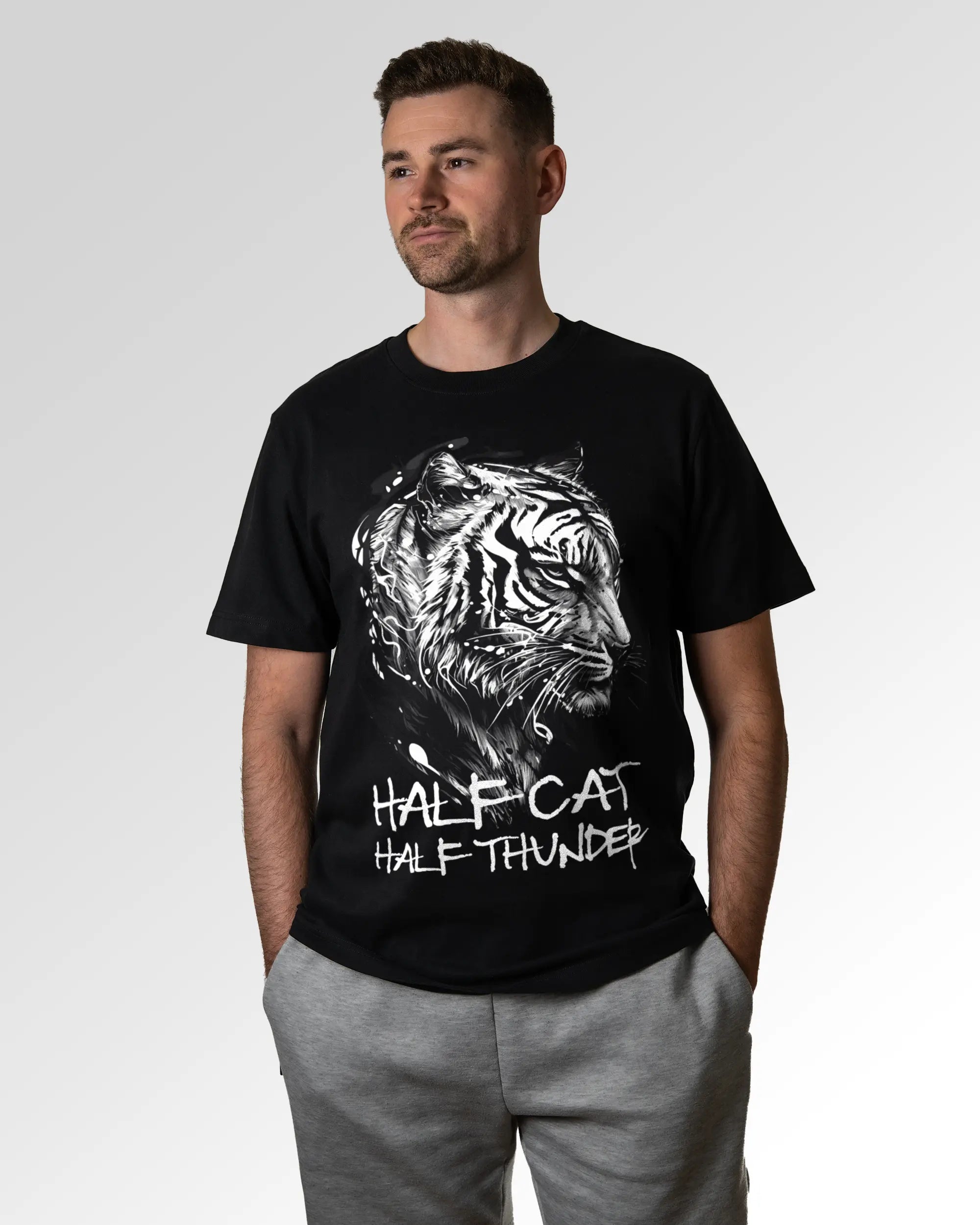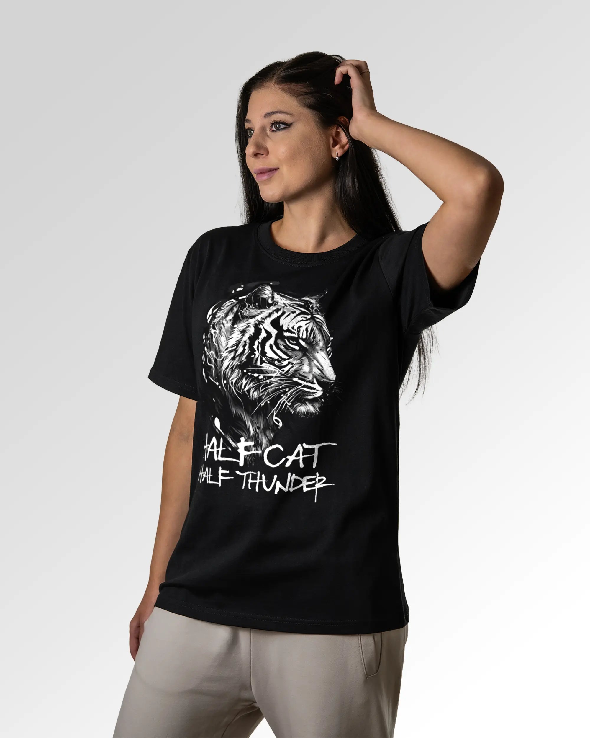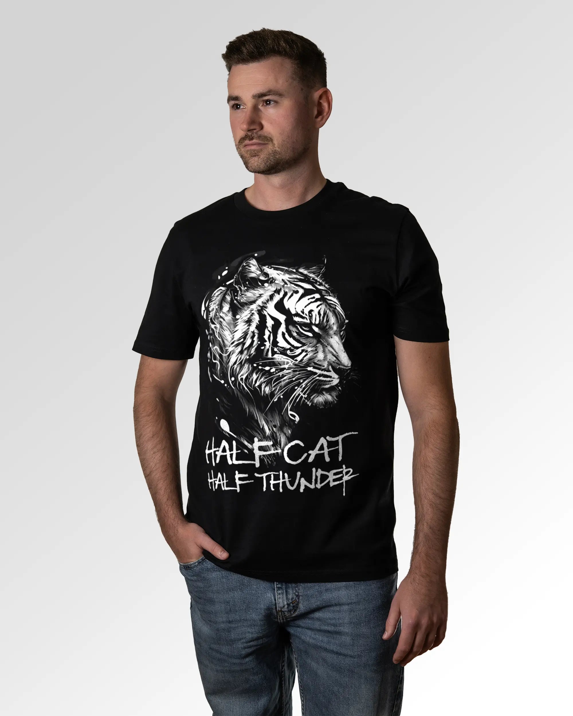Unser T-Shirt Design „Tiger Fighter“ ist in drei verschiedenen Fits erhältlich. Du suchst ein schlichtes farbiges, weißes oder schwarzes Basic T-Shirt? Dann ist unser Casual T-Shirt genau richtig für dich. Wenn du gerne ein weites T-Shirt trägst, solltest du ein Auge auf das Relaxed T-Shirt werfen. Freunde des Streetwear-Looks bzw. weiten und schweren T-Shirts können wir das Oversized T-Shirt ans Herz legen. Dein Fit, dein Style.