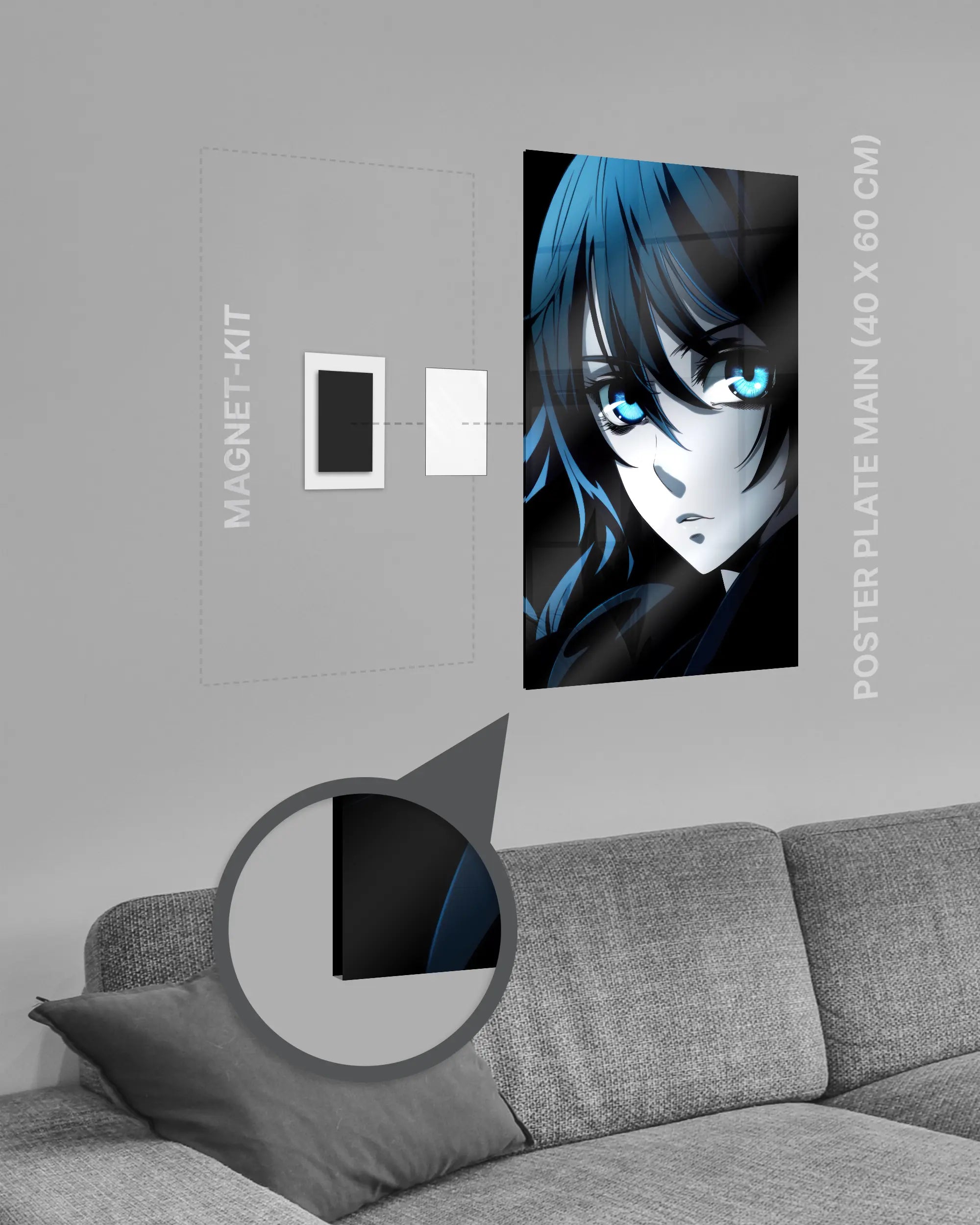 Bei deiner „Ao Chan Mk.1“ Poster Plate ist das Magnet-Kit inklusive. Damit kannst du das Kunststück ganz ohne Bohren, Hämmern oder Rahmen an die Wand hängen und genießt dabei folgende Vorteile: