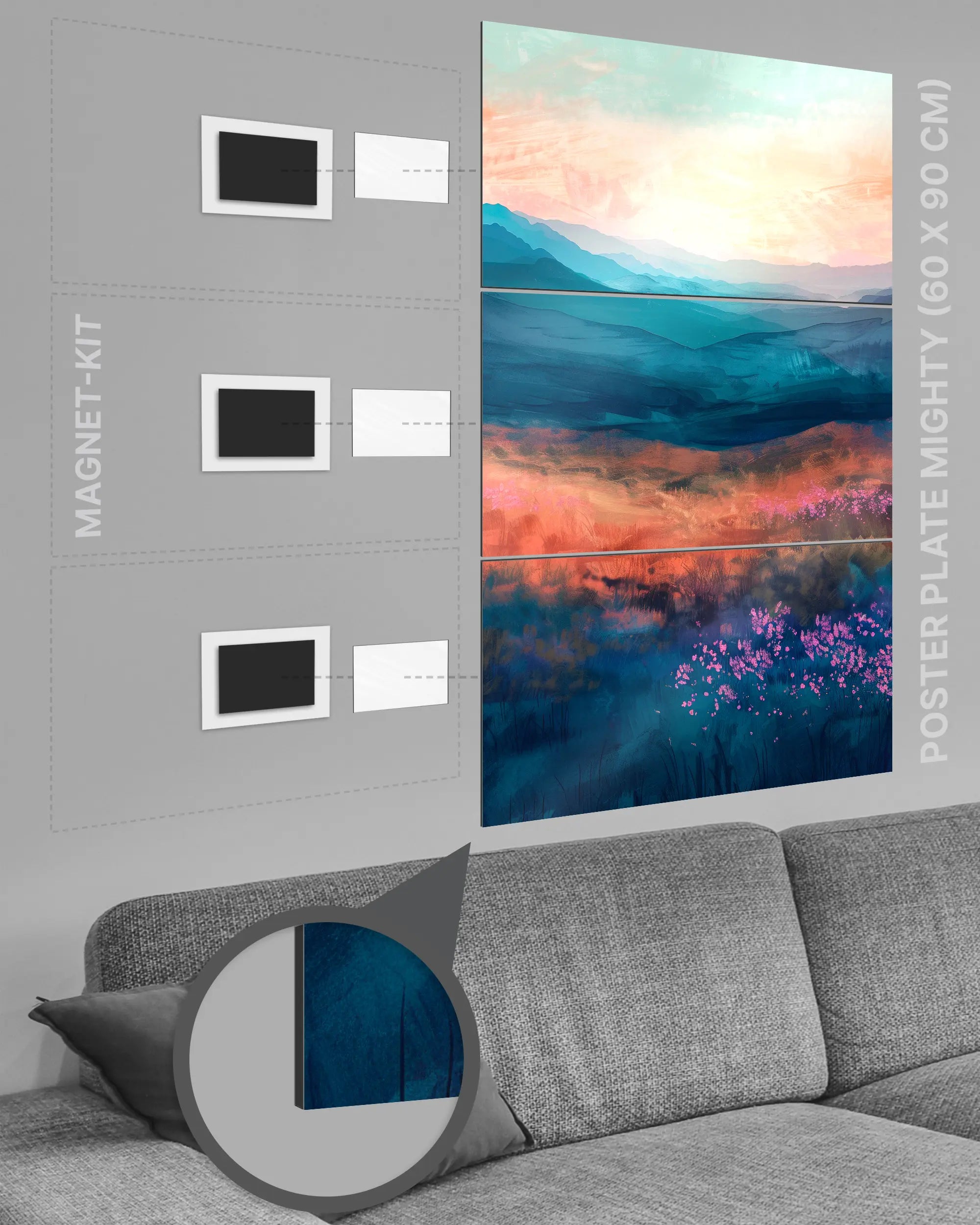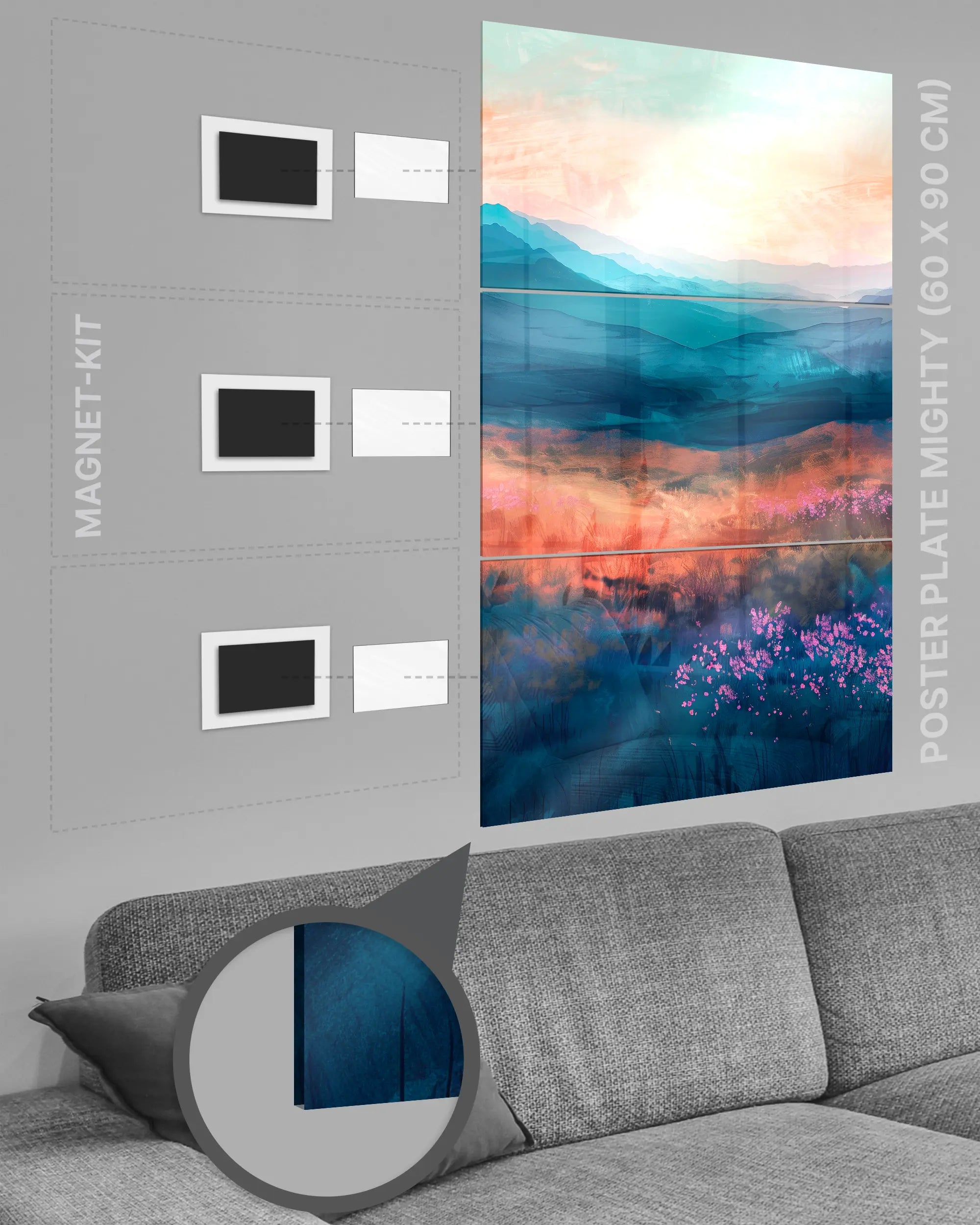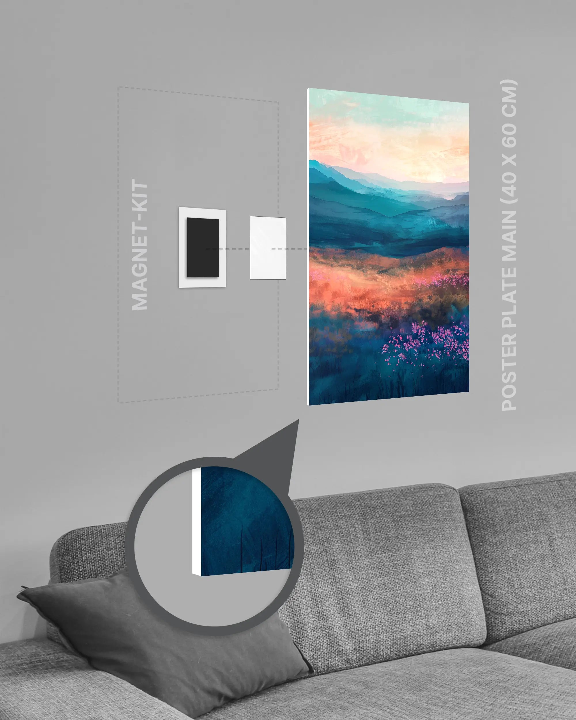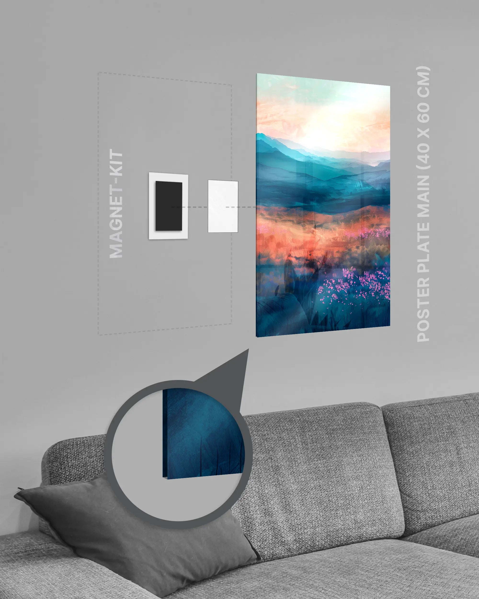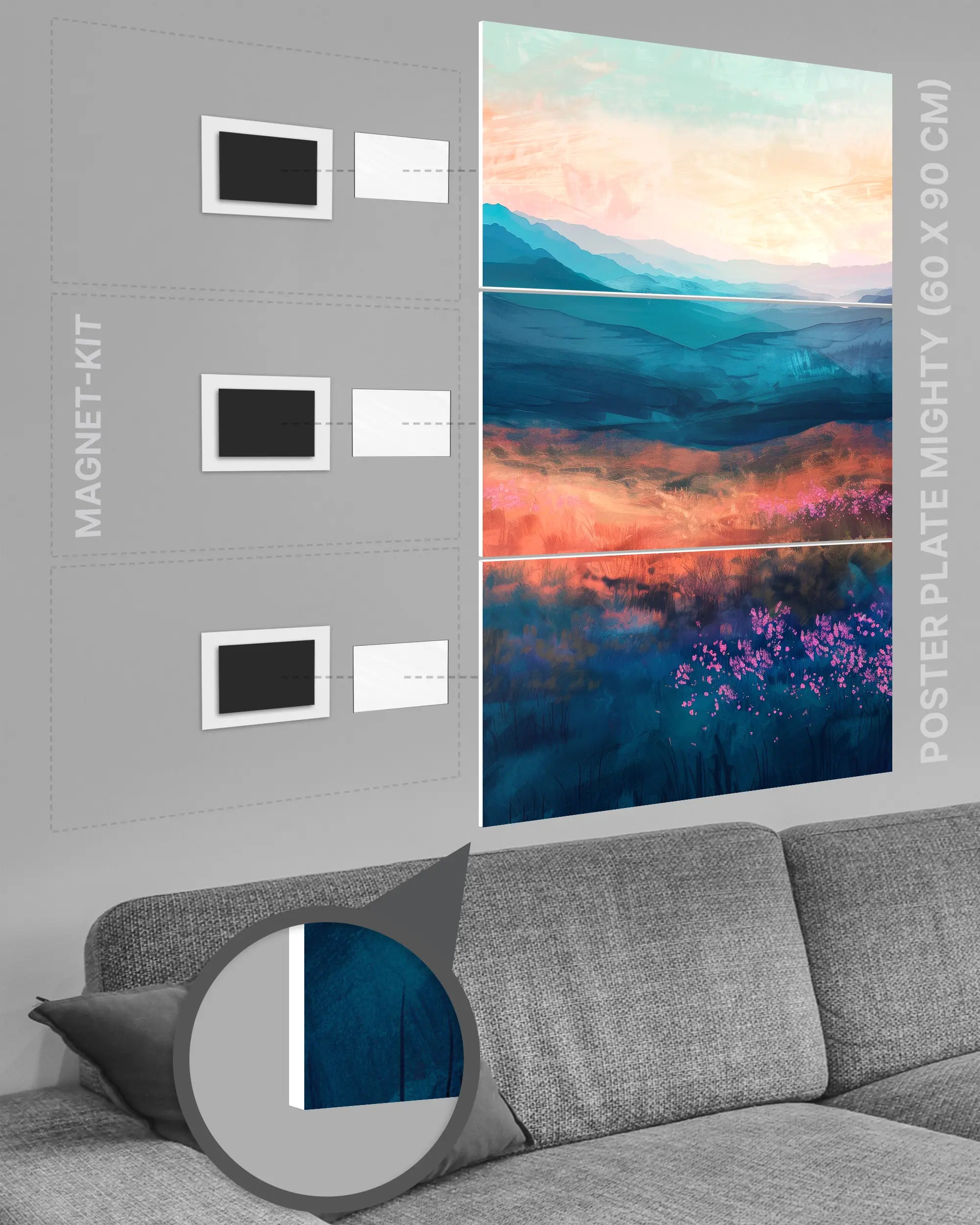 ✅ Kein Rahmen: Die Kombination von Poster Plate und Magnet-Kit macht auch einen zusätzlichen Rahmen überflüssig.