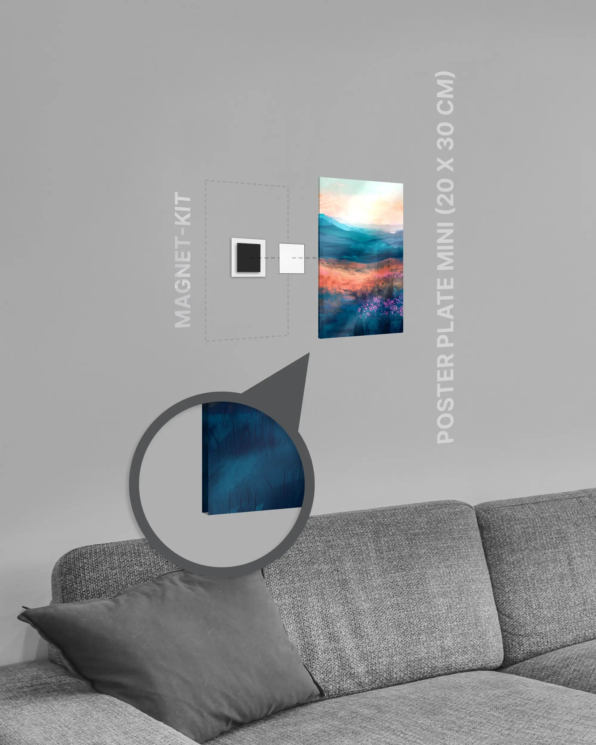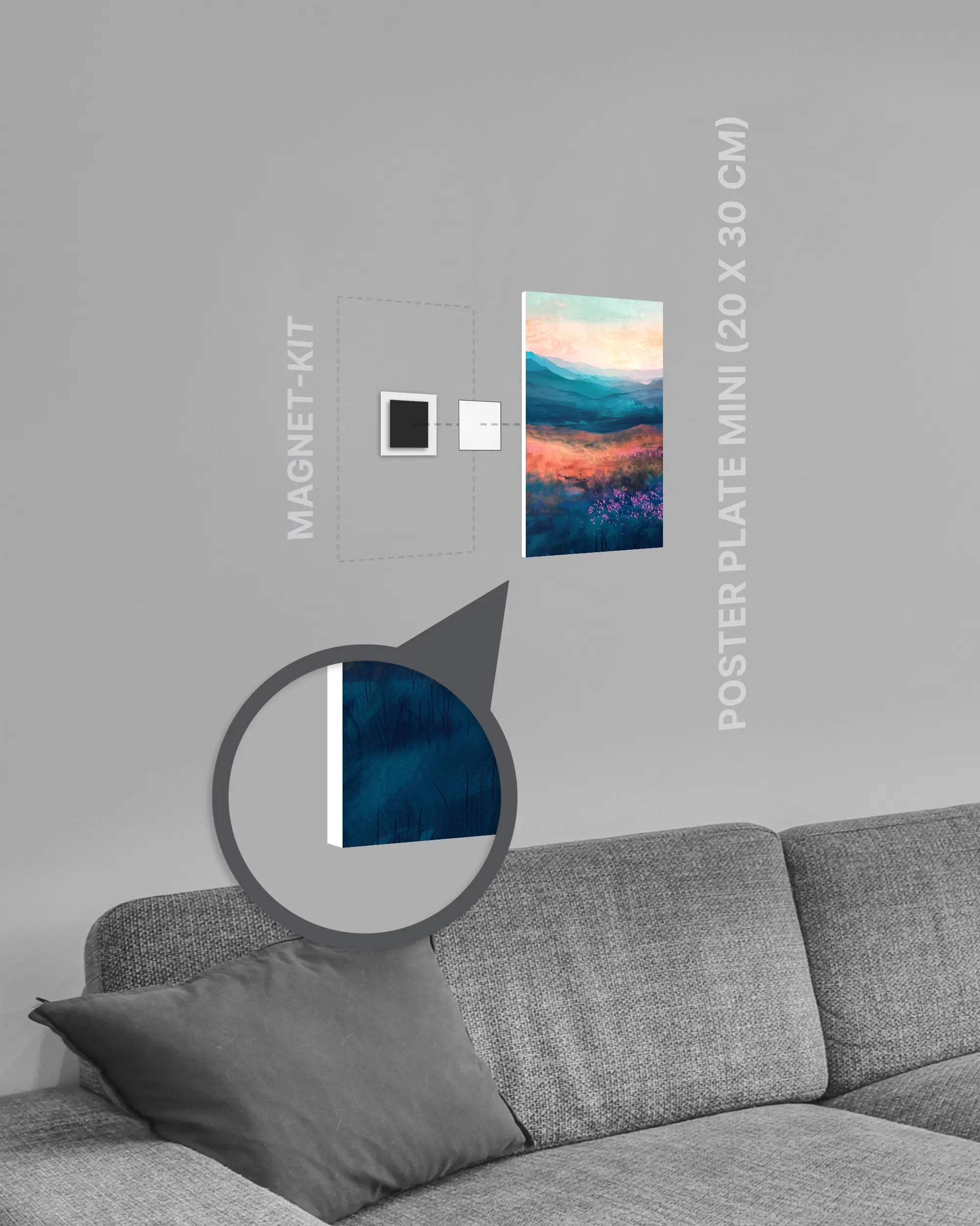 Deine Poster Plate wird mit dem jeweils passenden Magnofix® Magnet-Kit geliefert. Dadurch lässt sie sich an fast allen geraden Flächen aufhängen.