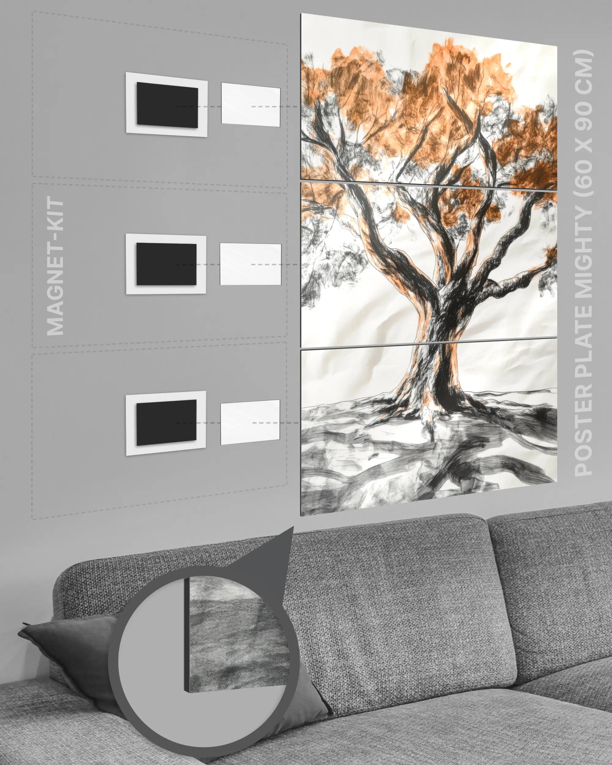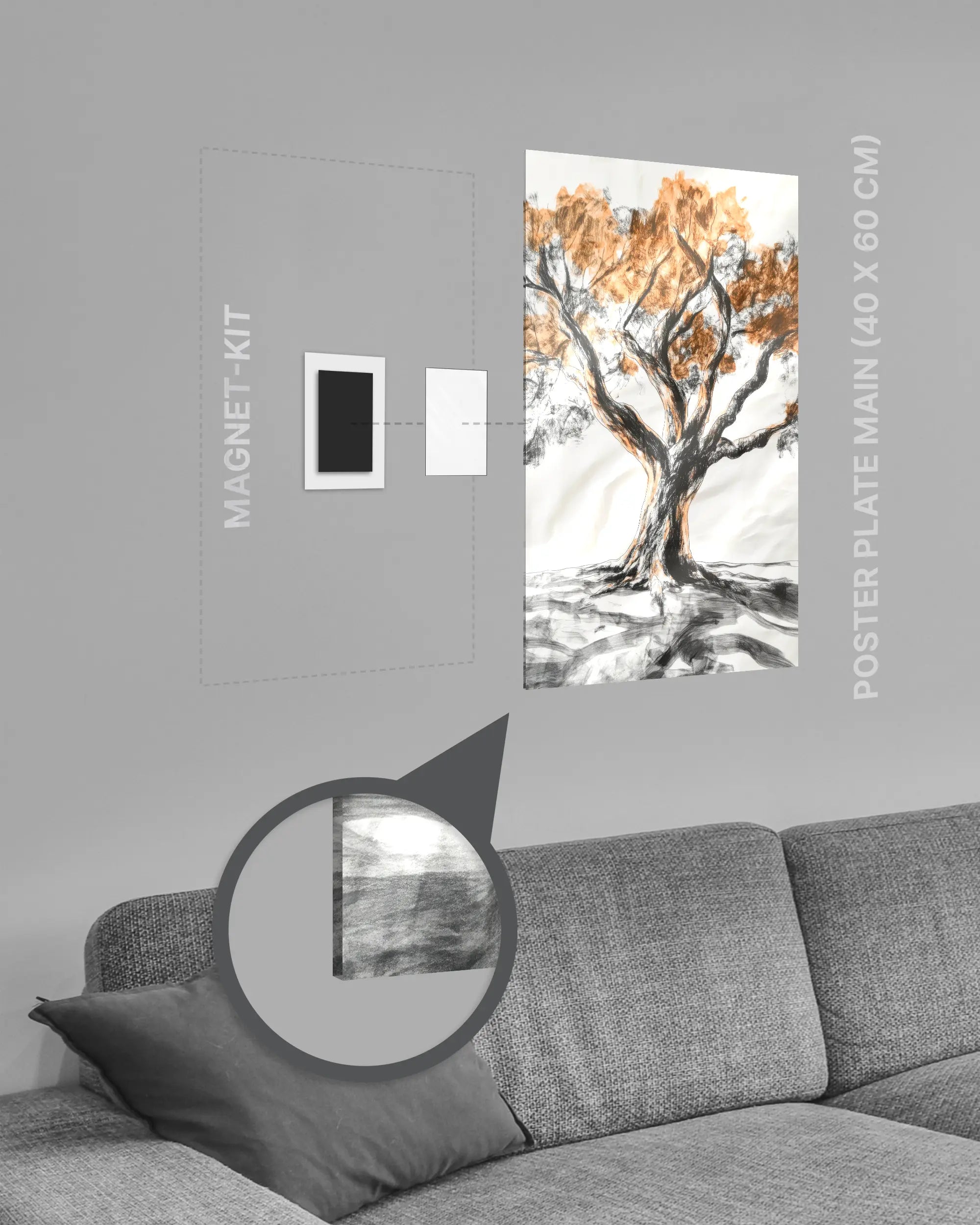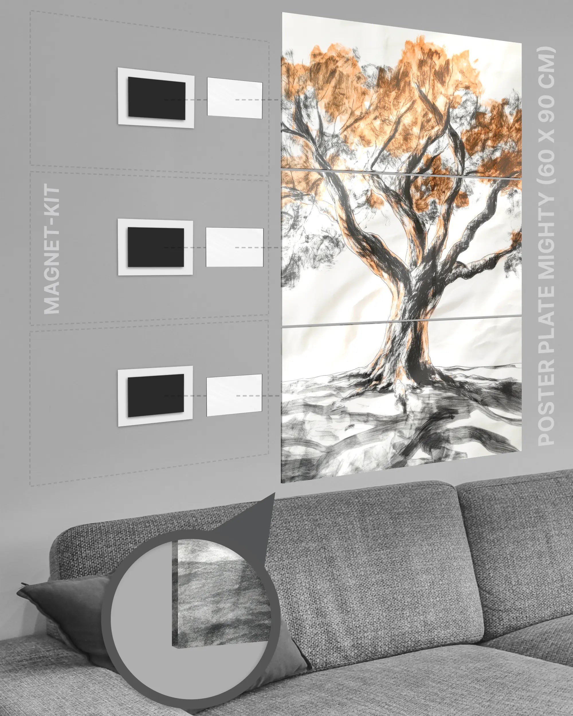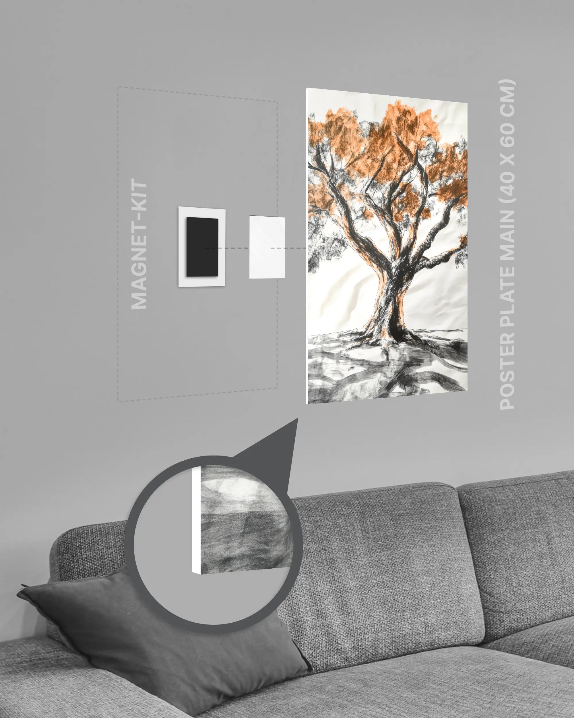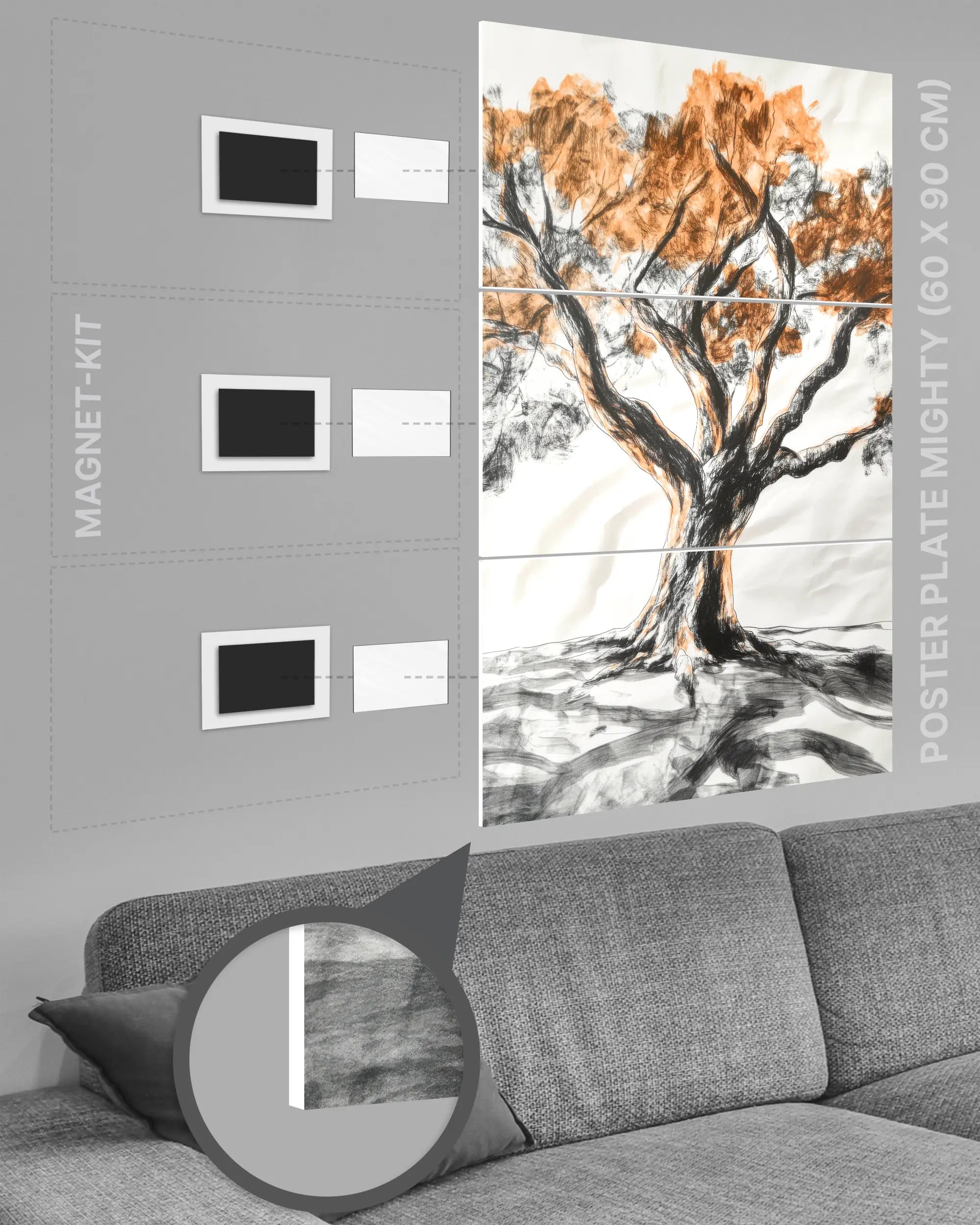 ✅ Kein Rahmen: Die Kombination von Poster Plate und Magnet-Kit macht auch einen zusätzlichen Rahmen überflüssig.