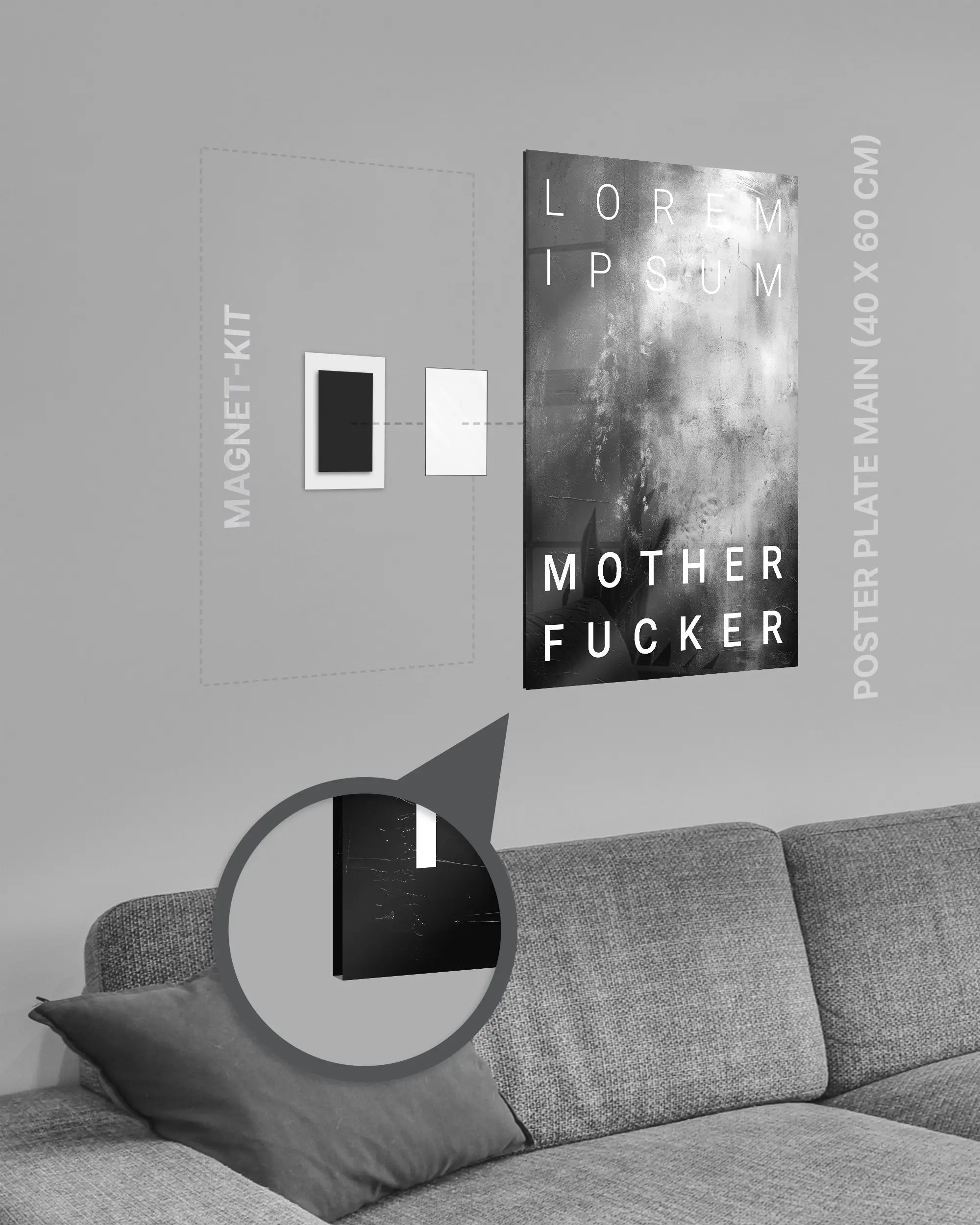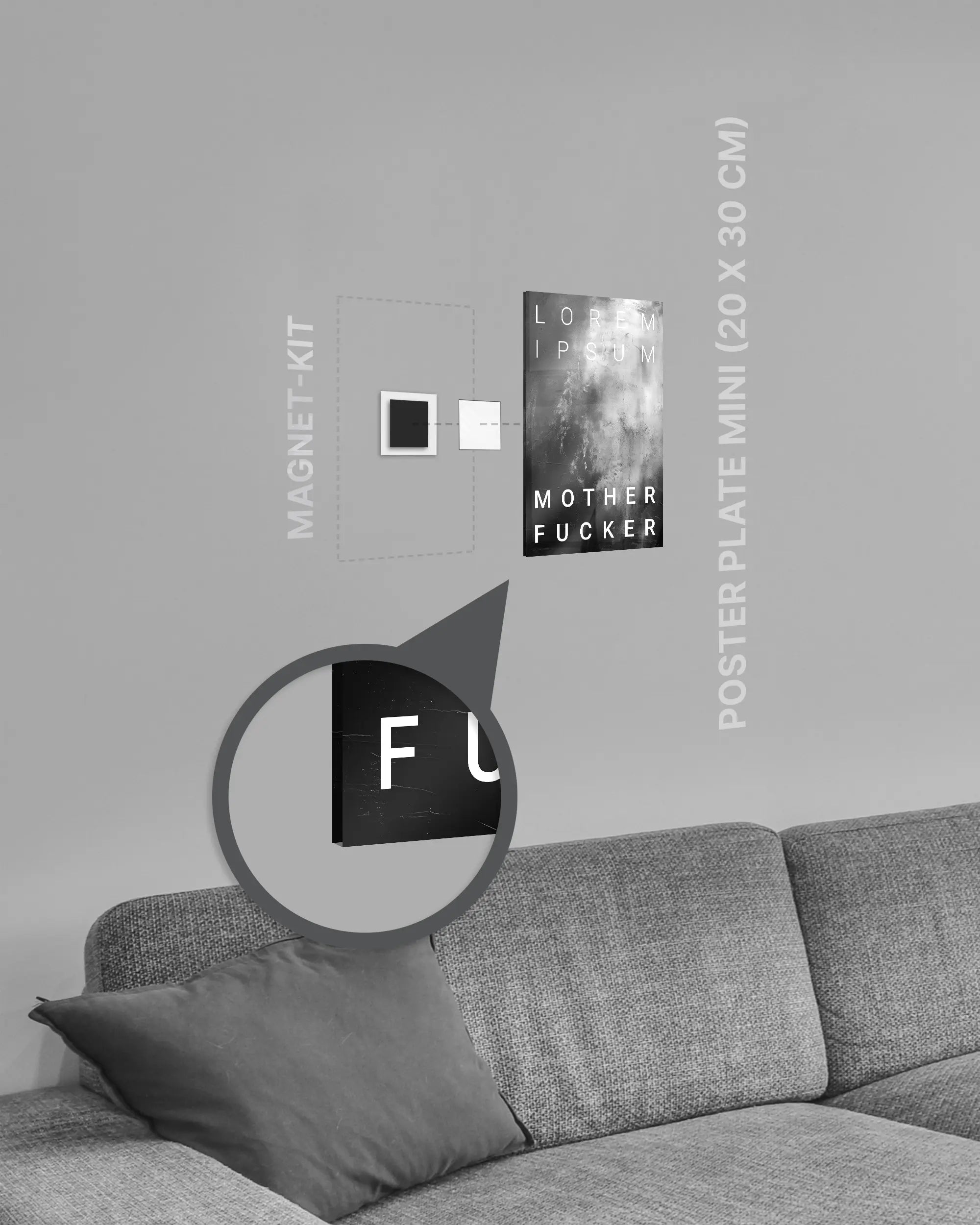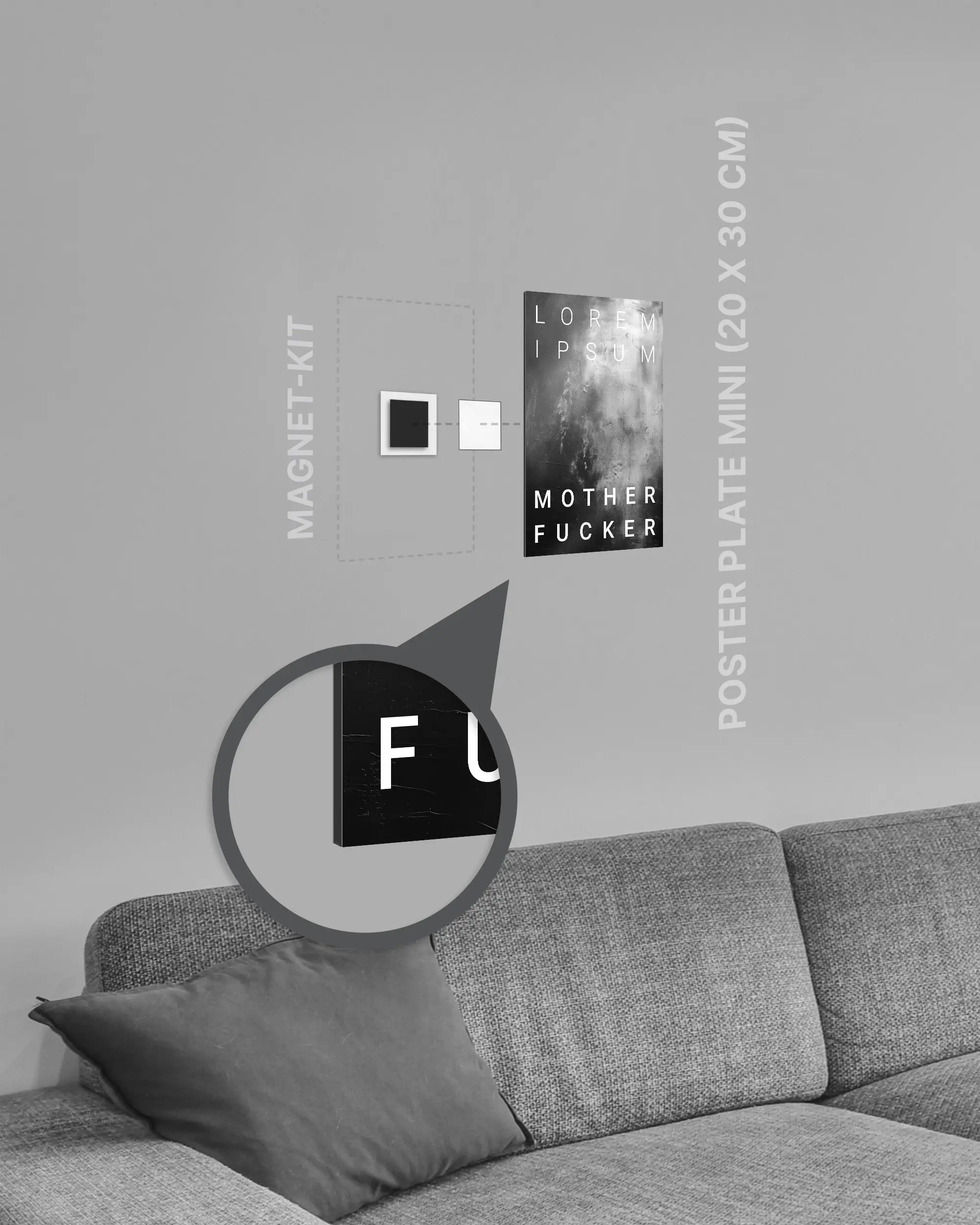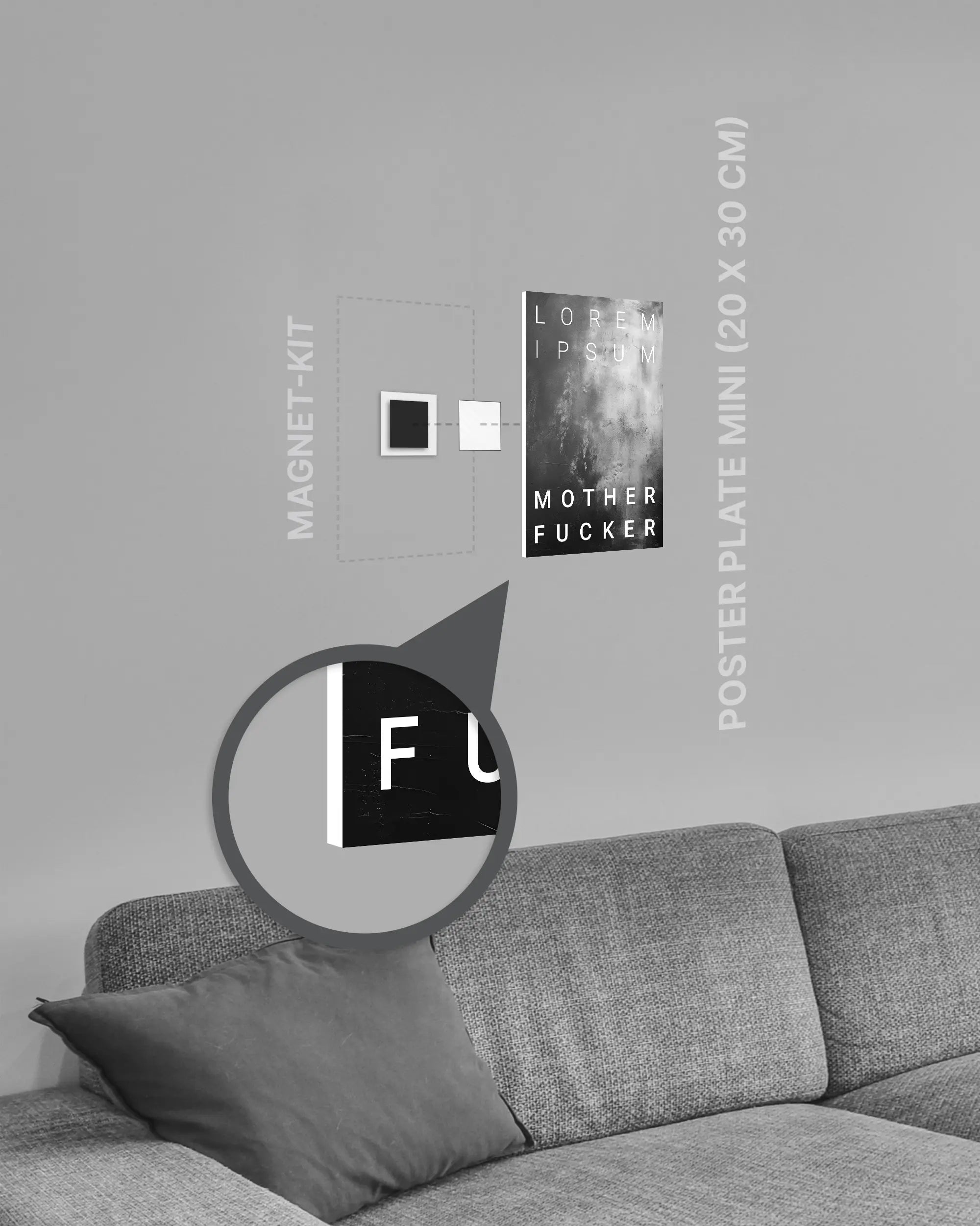 Deine Poster Plate wird mit dem jeweils passenden Magnofix® Magnet-Kit geliefert. Dadurch lässt sie sich an fast allen geraden Flächen aufhängen.