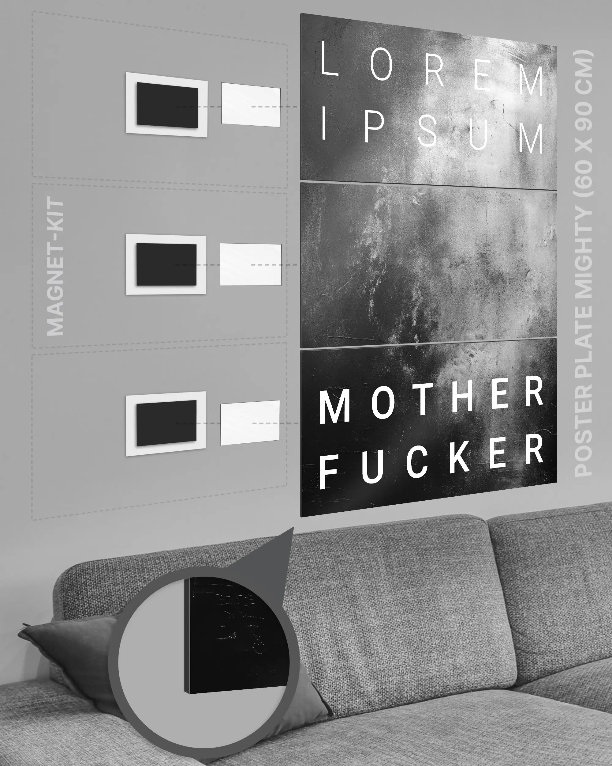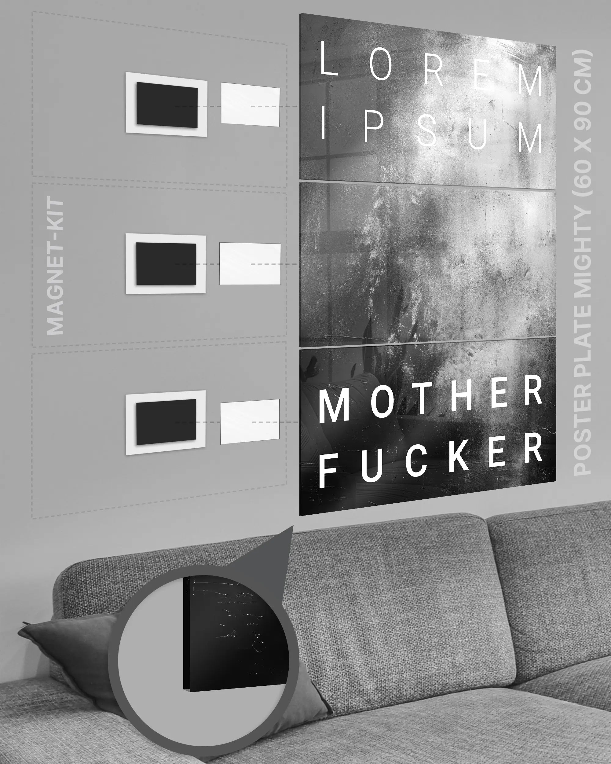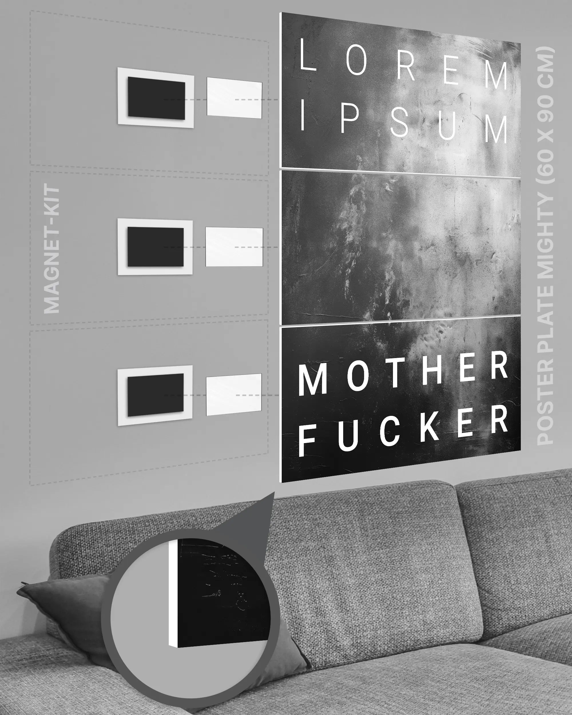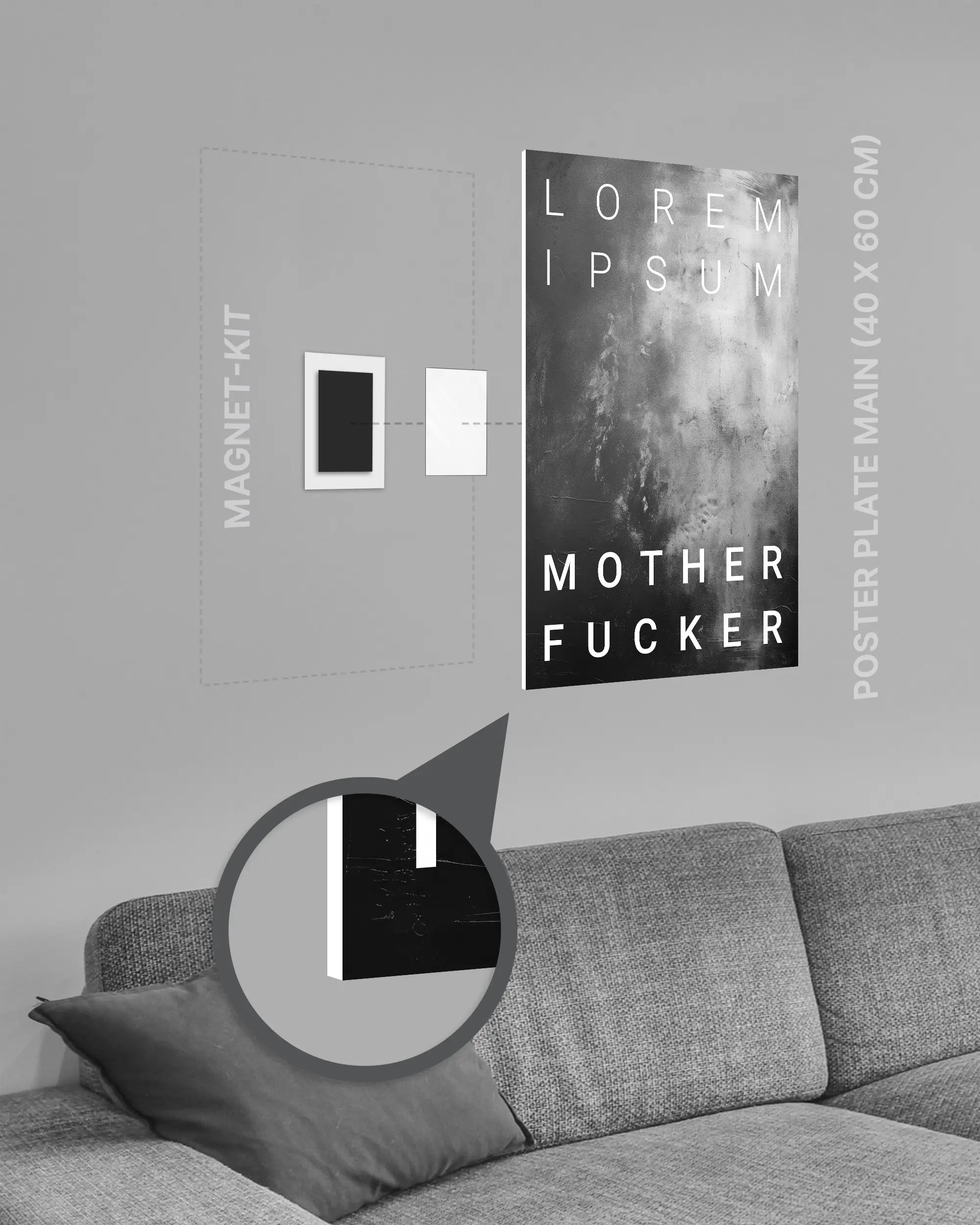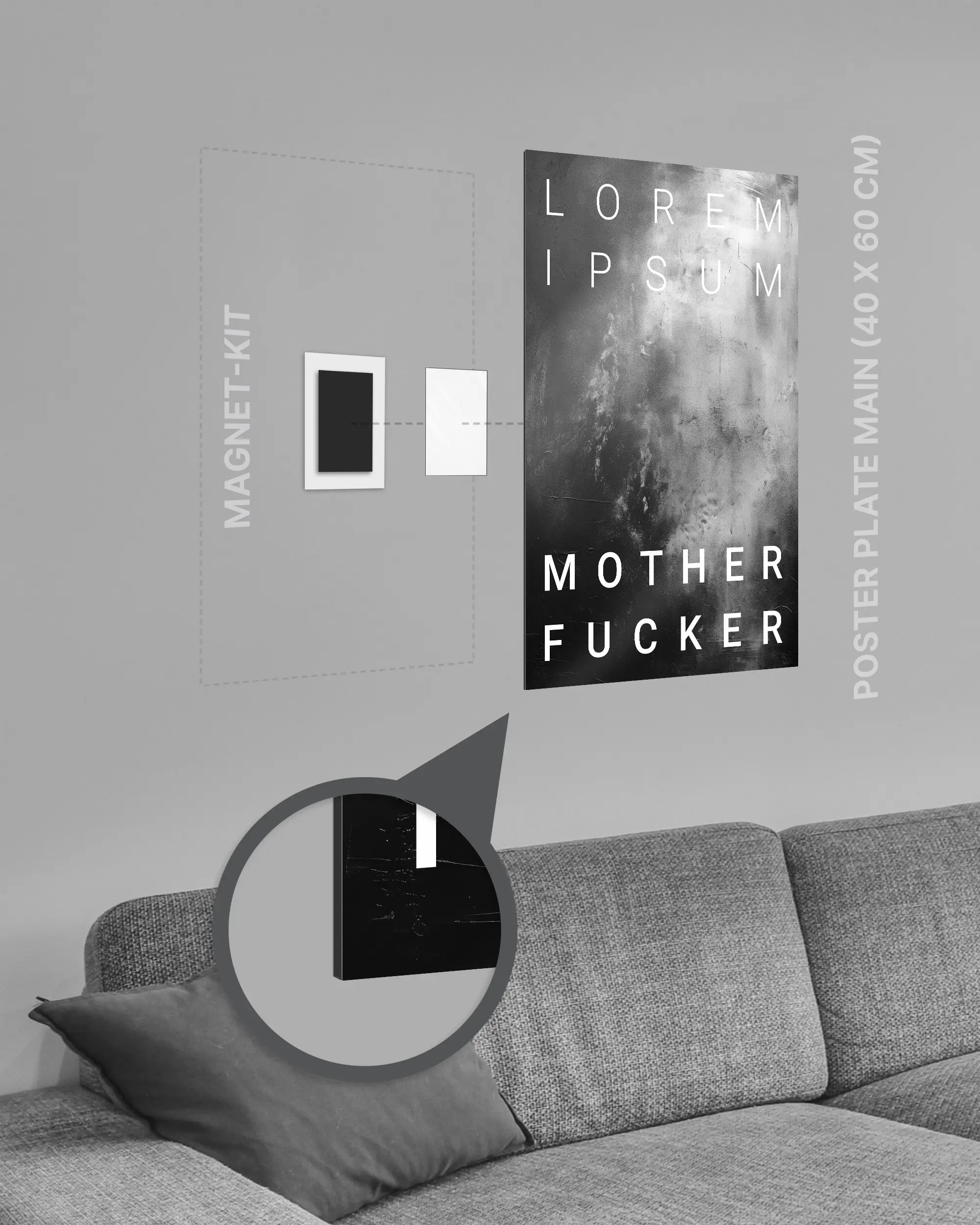 Deine Poster Plate wird mit dem jeweils passenden Magnofix® Magnet-Kit geliefert. Dadurch lässt sie sich an fast allen geraden Flächen aufhängen.
