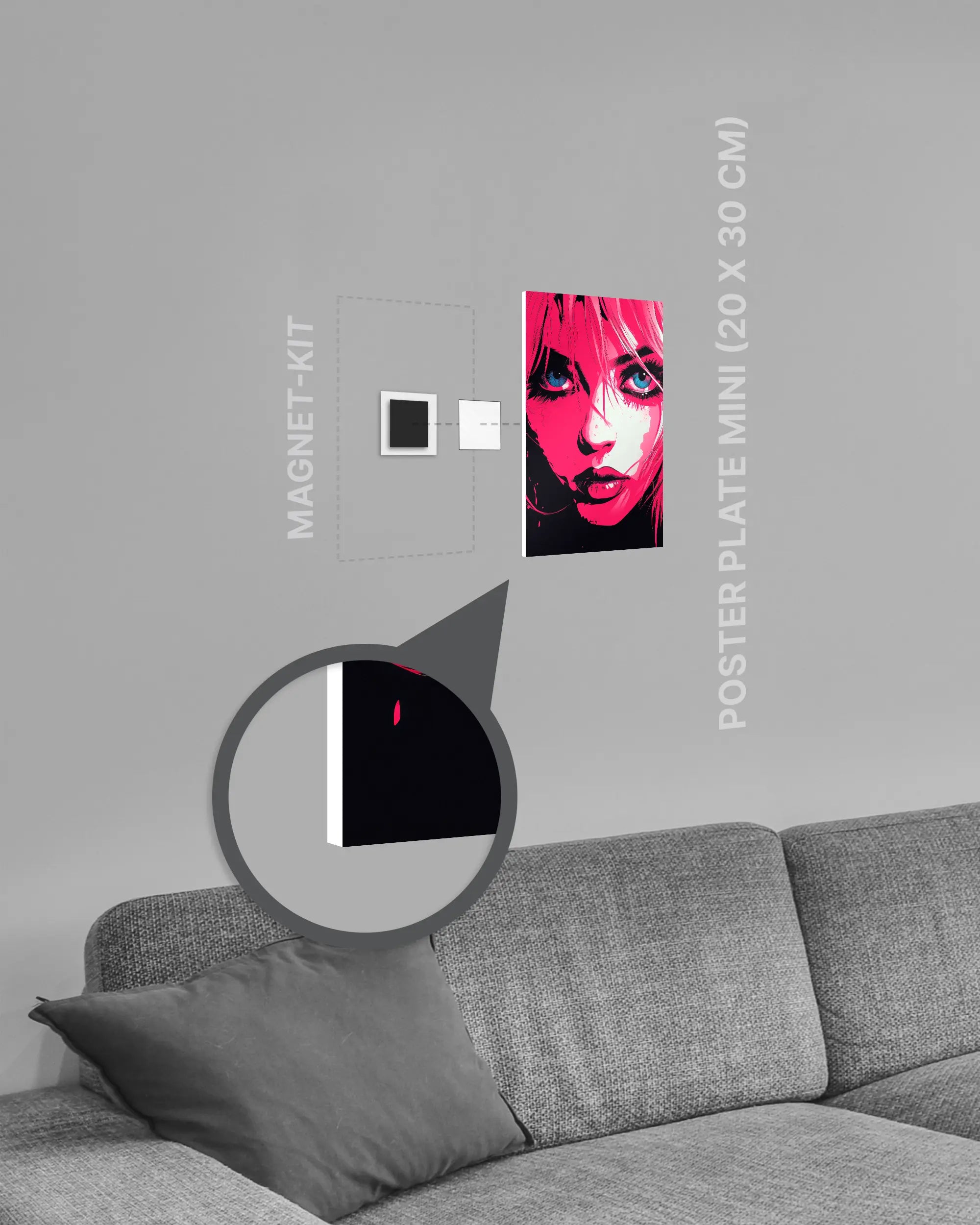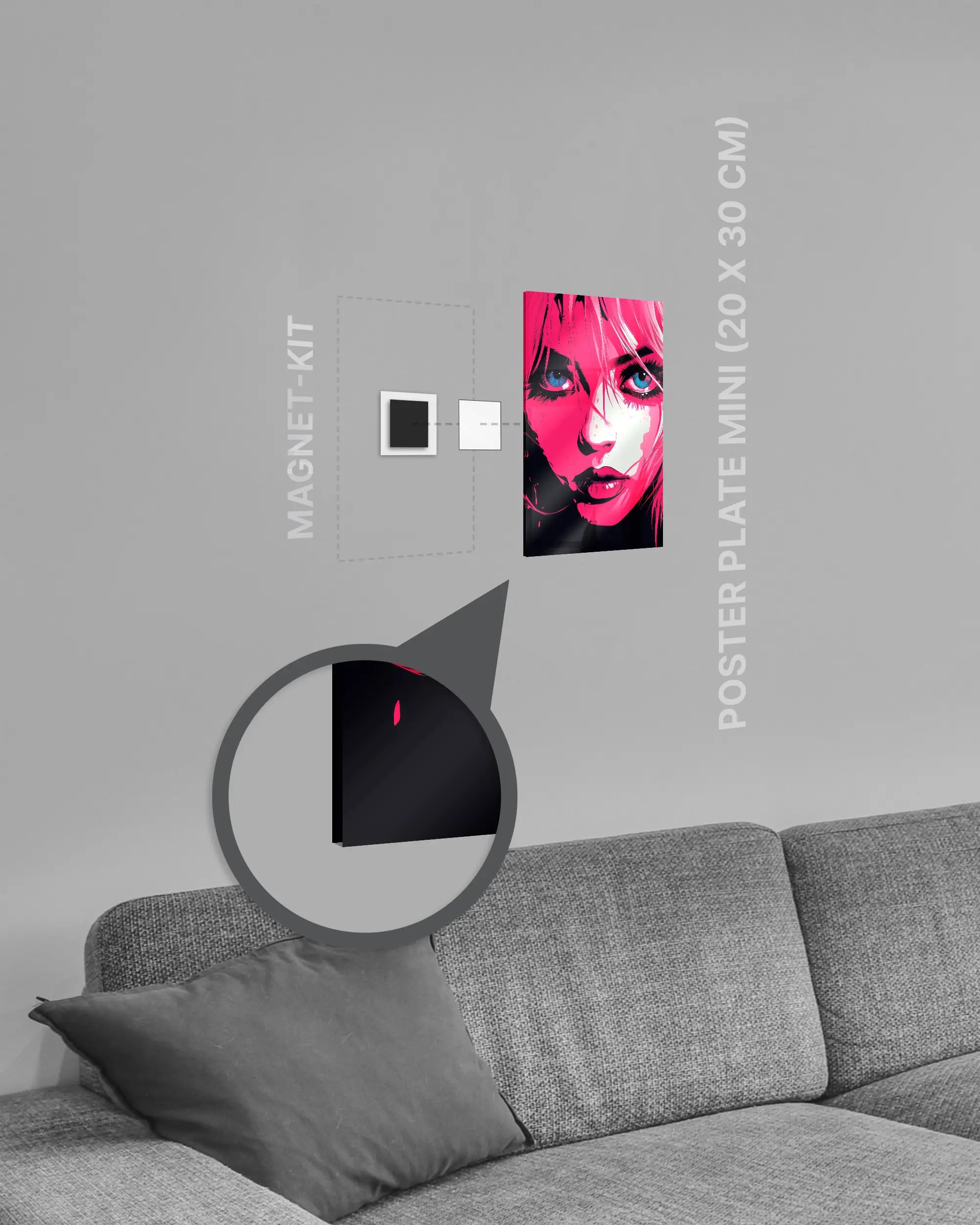 Deine Poster Plate wird mit dem jeweils passenden Magnofix® Magnet-Kit geliefert. Dadurch lässt sie sich an fast allen geraden Flächen aufhängen.