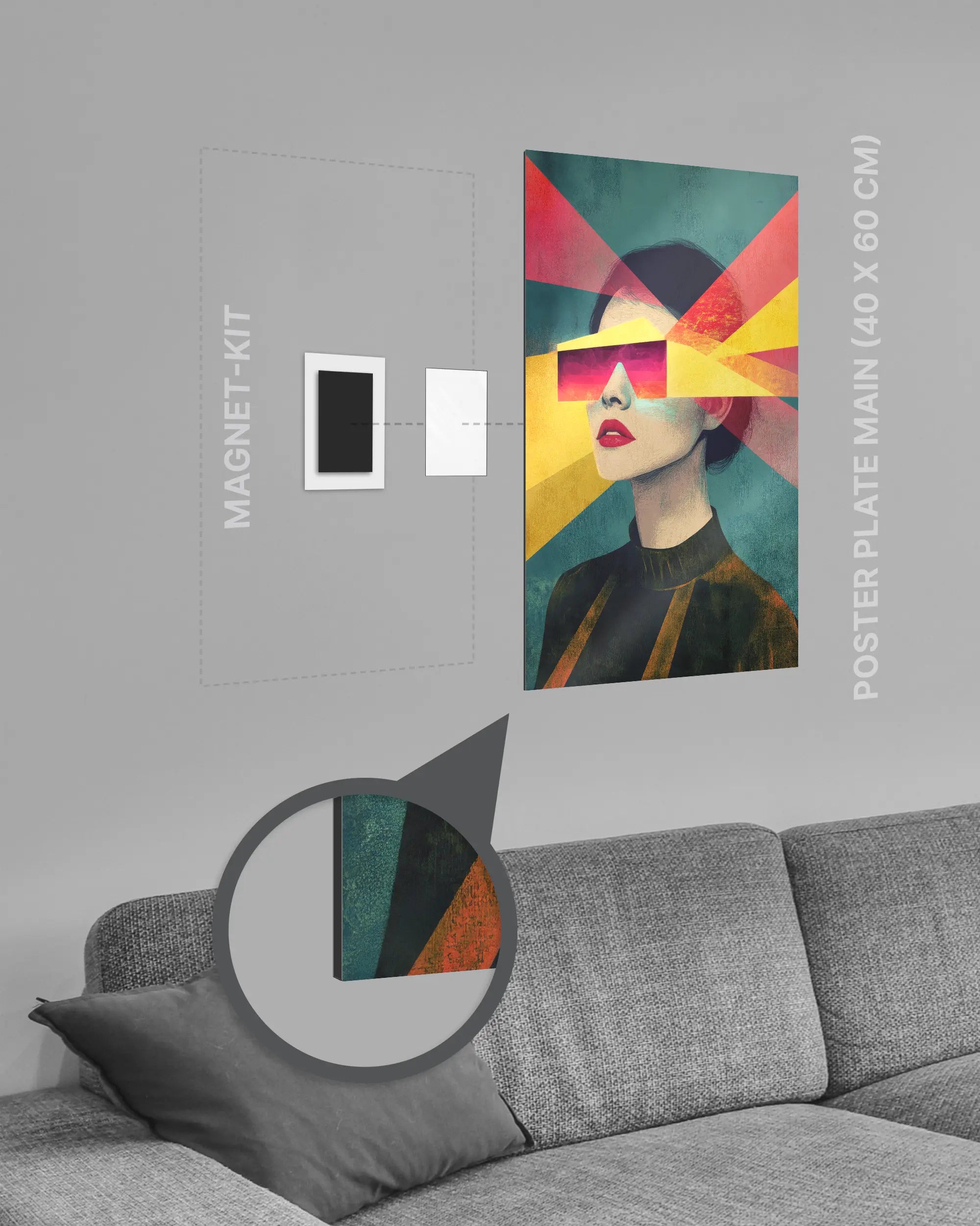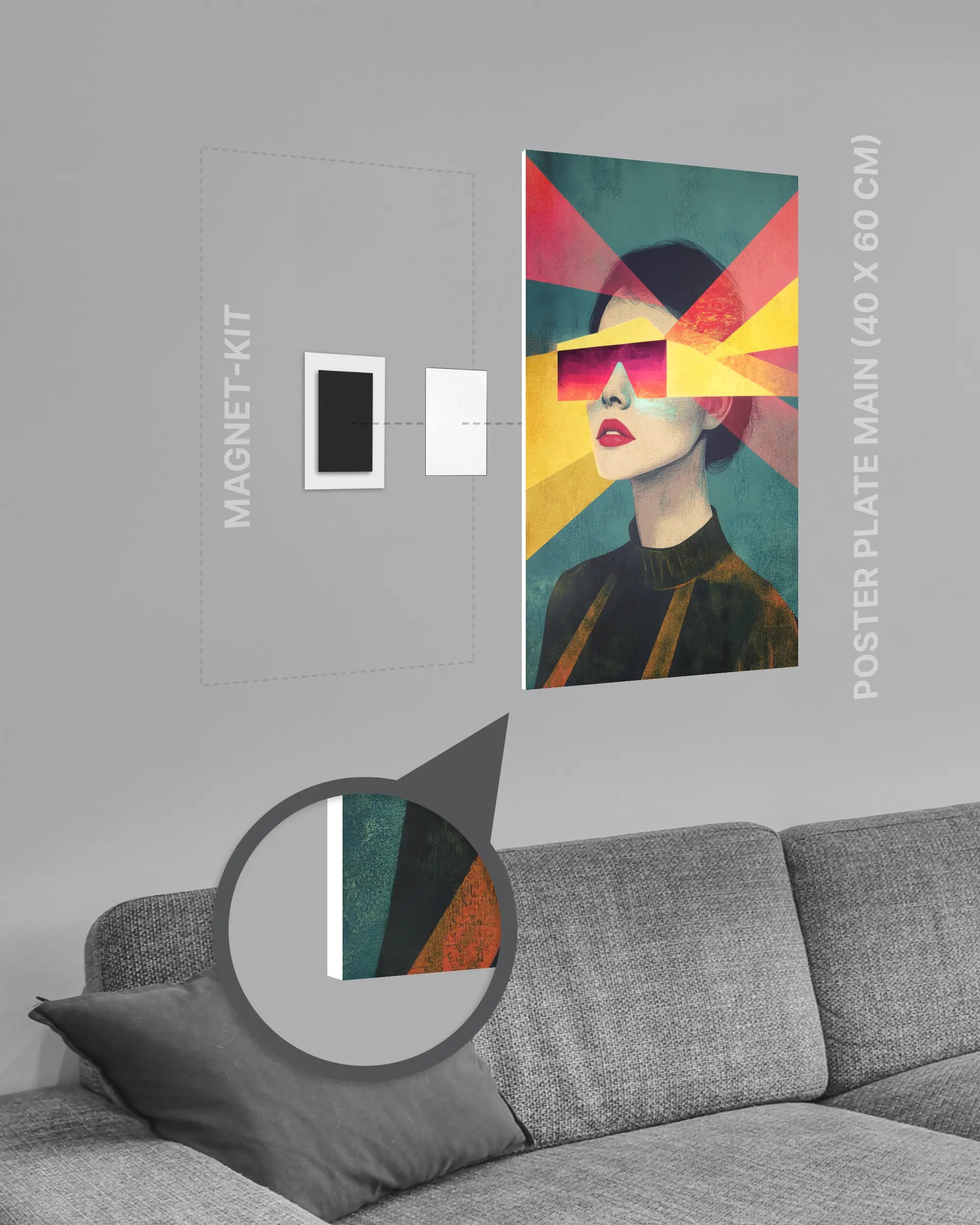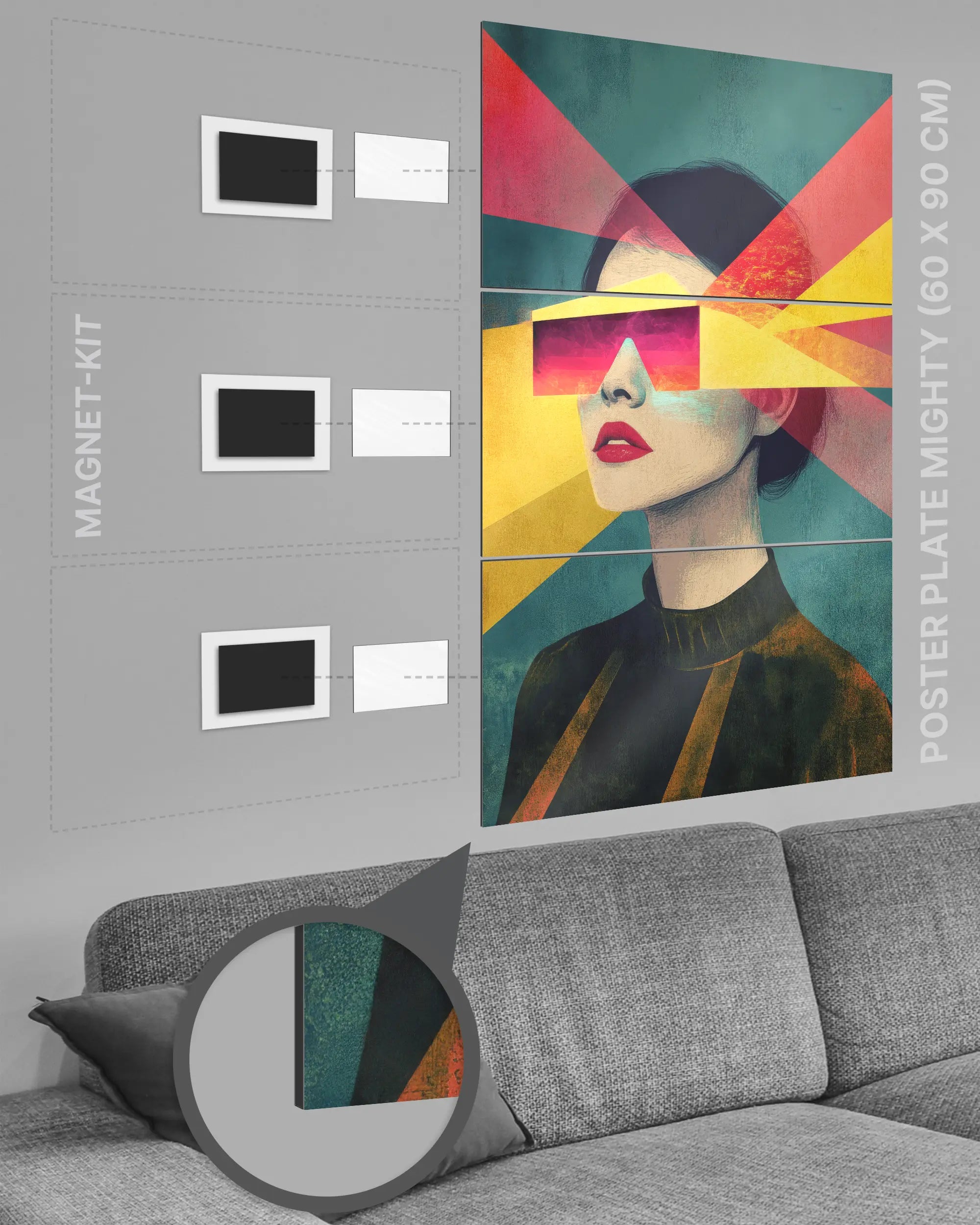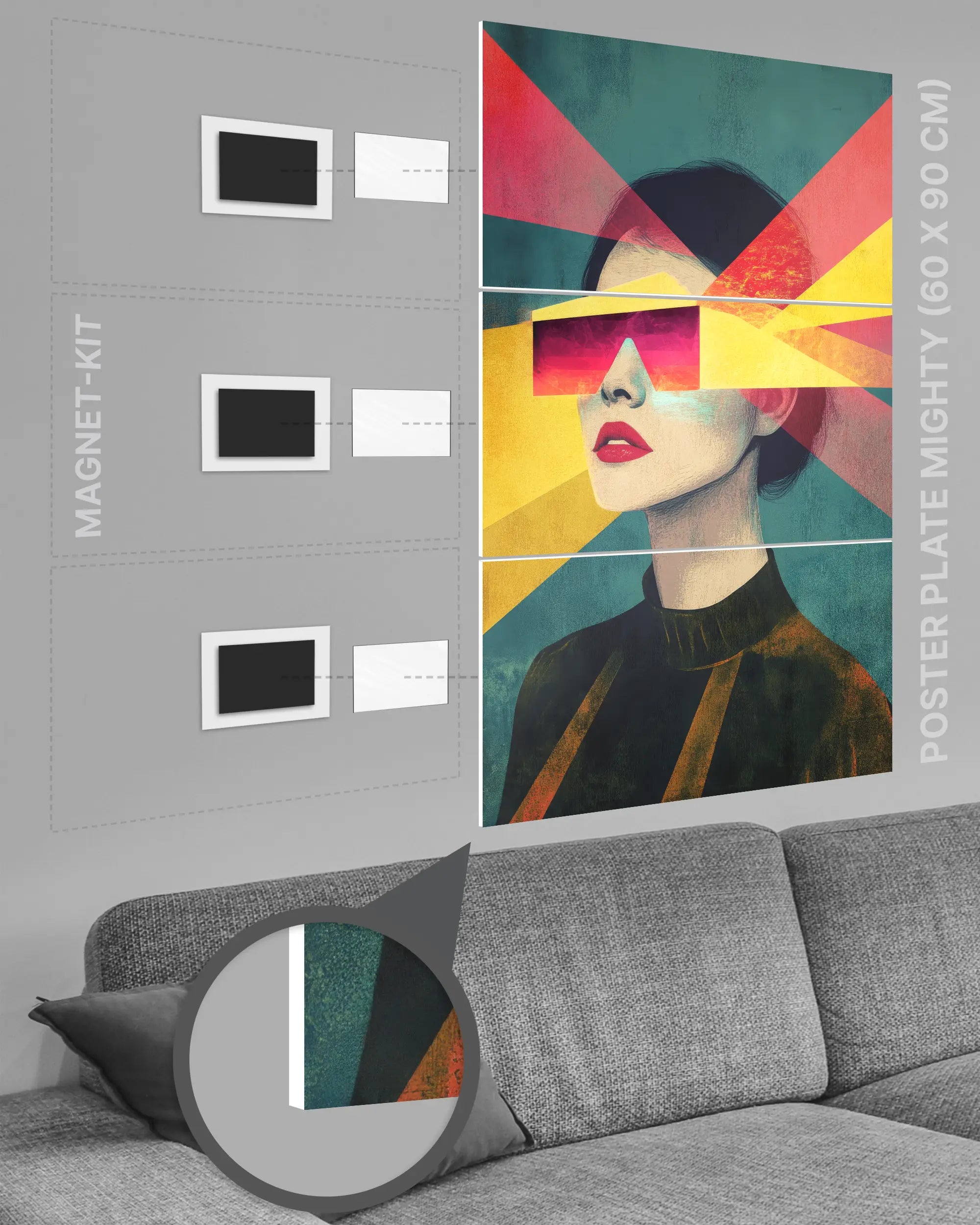 ✅ Kein Rahmen: Die Kombination von Poster Plate und Magnet-Kit macht auch einen zusätzlichen Rahmen überflüssig.