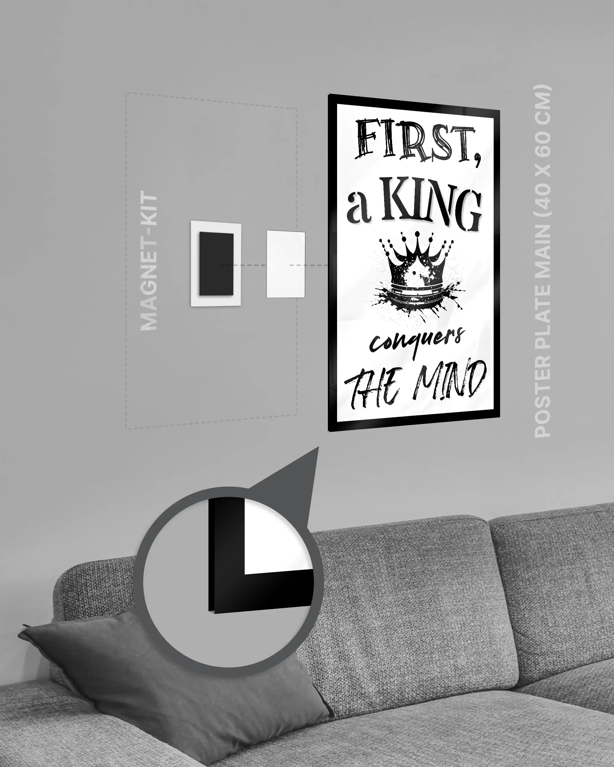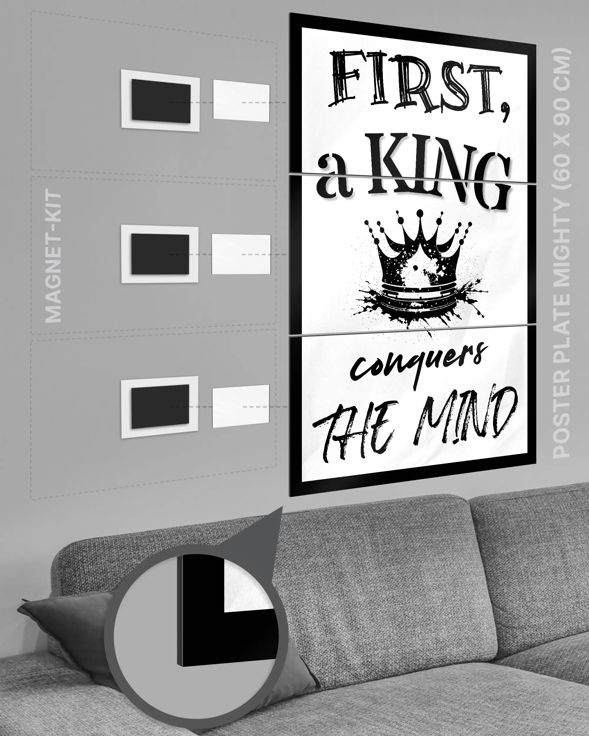 Bei deiner „Frame of Kings“ Poster Plate ist das Magnet-Kit inklusive. Damit kannst du das Kunststück ganz ohne Bohren, Hämmern oder Rahmen an die Wand hängen und genießt dabei folgende Vorteile: