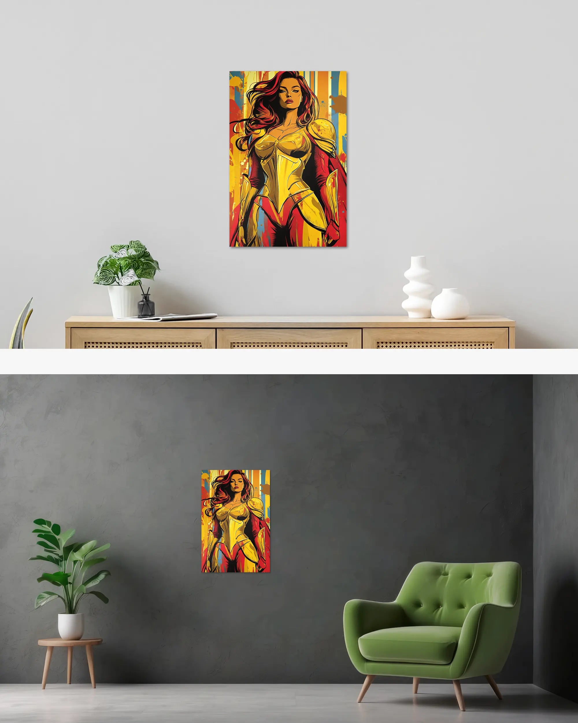 Ganz egal ob du zur Miete wohnst oder dein Eigenheim aufwerten möchtest. Diese Poster Plate von Maondo passt in fast jedes Zimmer, solange es relativ flache Wände hat. Über unsere Zimmersuche, kannst du direkt ein Design für ein bestimmtes Zimmer finden. Das Design „Frau Streitkraft“ passt fast überall, eignet sich aber besonders gut für folgende(s) Zimmer: