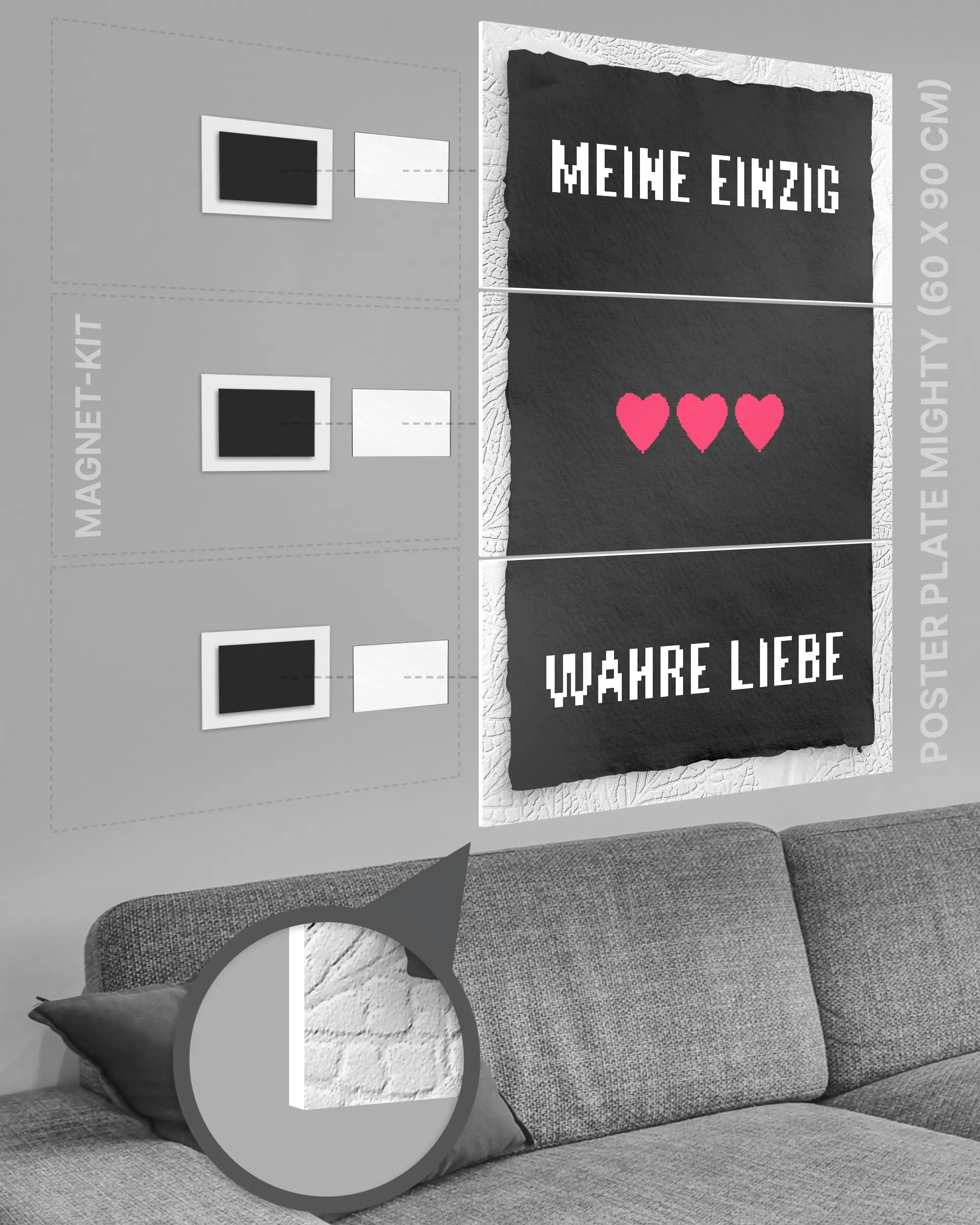 ✅ Kein Rahmen: Die Kombination von Poster Plate und Magnet-Kit macht auch einen zusätzlichen Rahmen überflüssig.