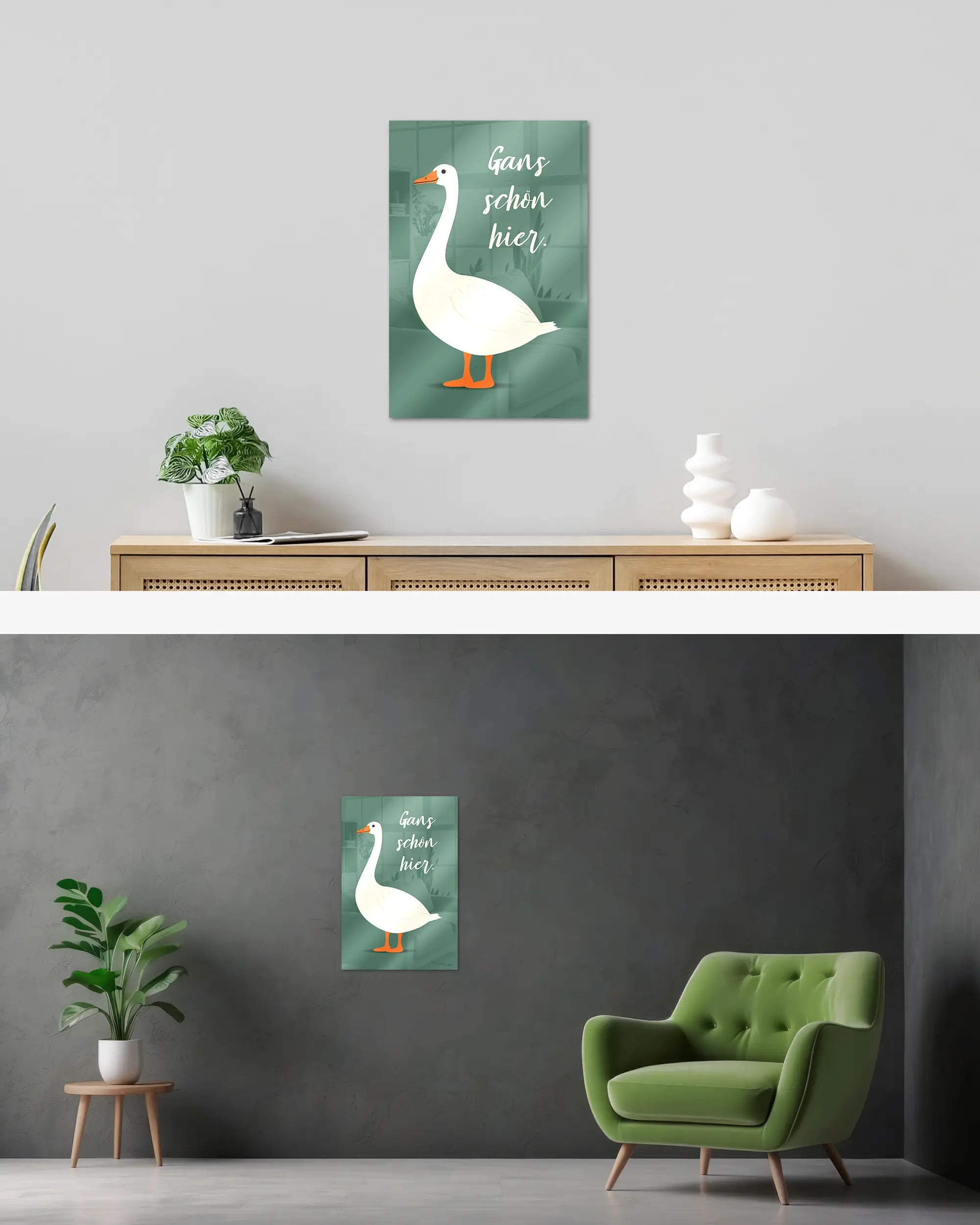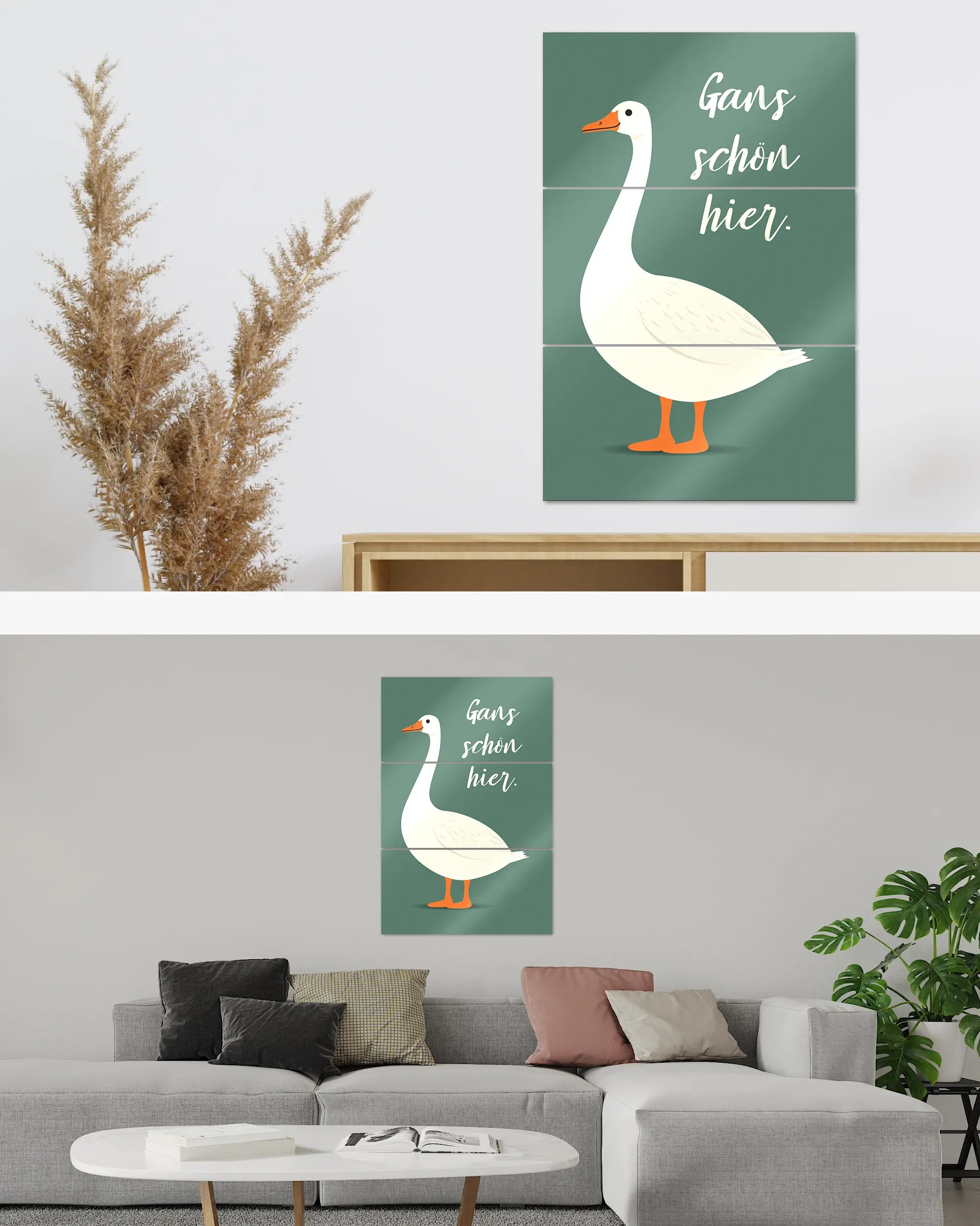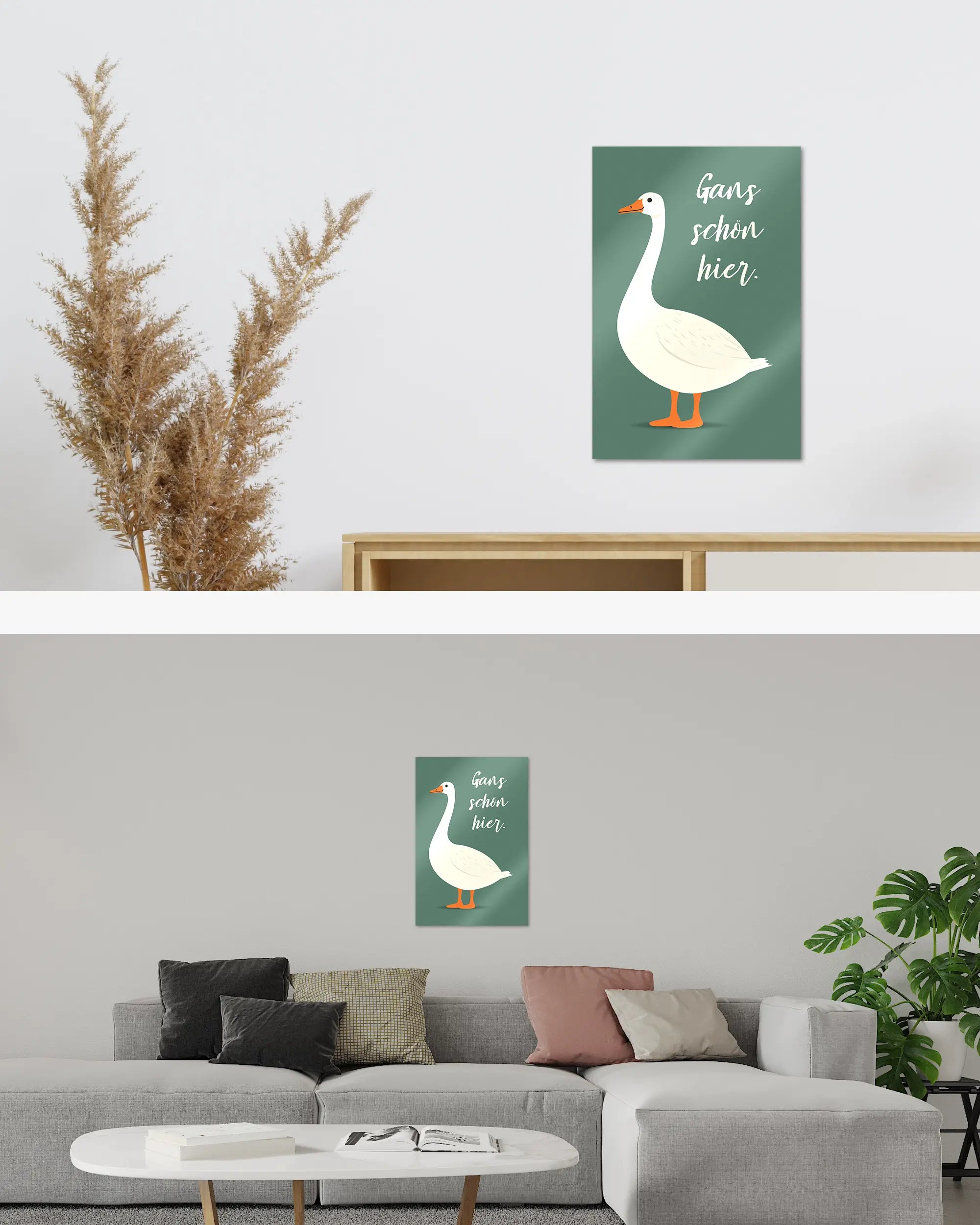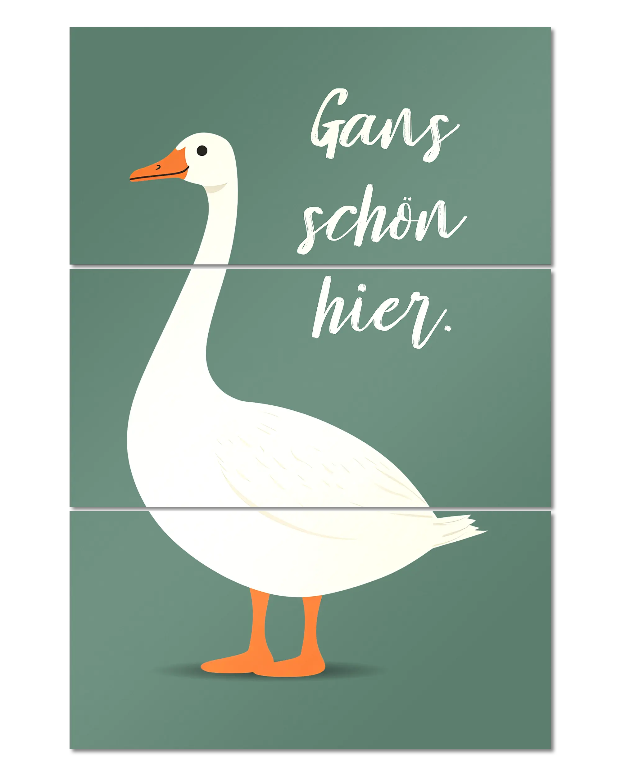Was die Poster Plate „Gans schön hier“ von Maondo so besonders macht, erfährst du in den folgenden Abschnitten, aber zuerst das Wichtigste: Poster Plates sind das Beste aus der Welt von Postern und Leinwänden, vereint in einem Produkt. Sie sind so farbenstark und glatt wie hochwertige Poster und dabei gleichzeitig so robust und langlebig wie Leinwände. Besonders wegen ihrer Robustheit sind sie nicht nur zu ewigem Rumhängen verdammt, sondern eignen sich als echte Sammlerstücke.
