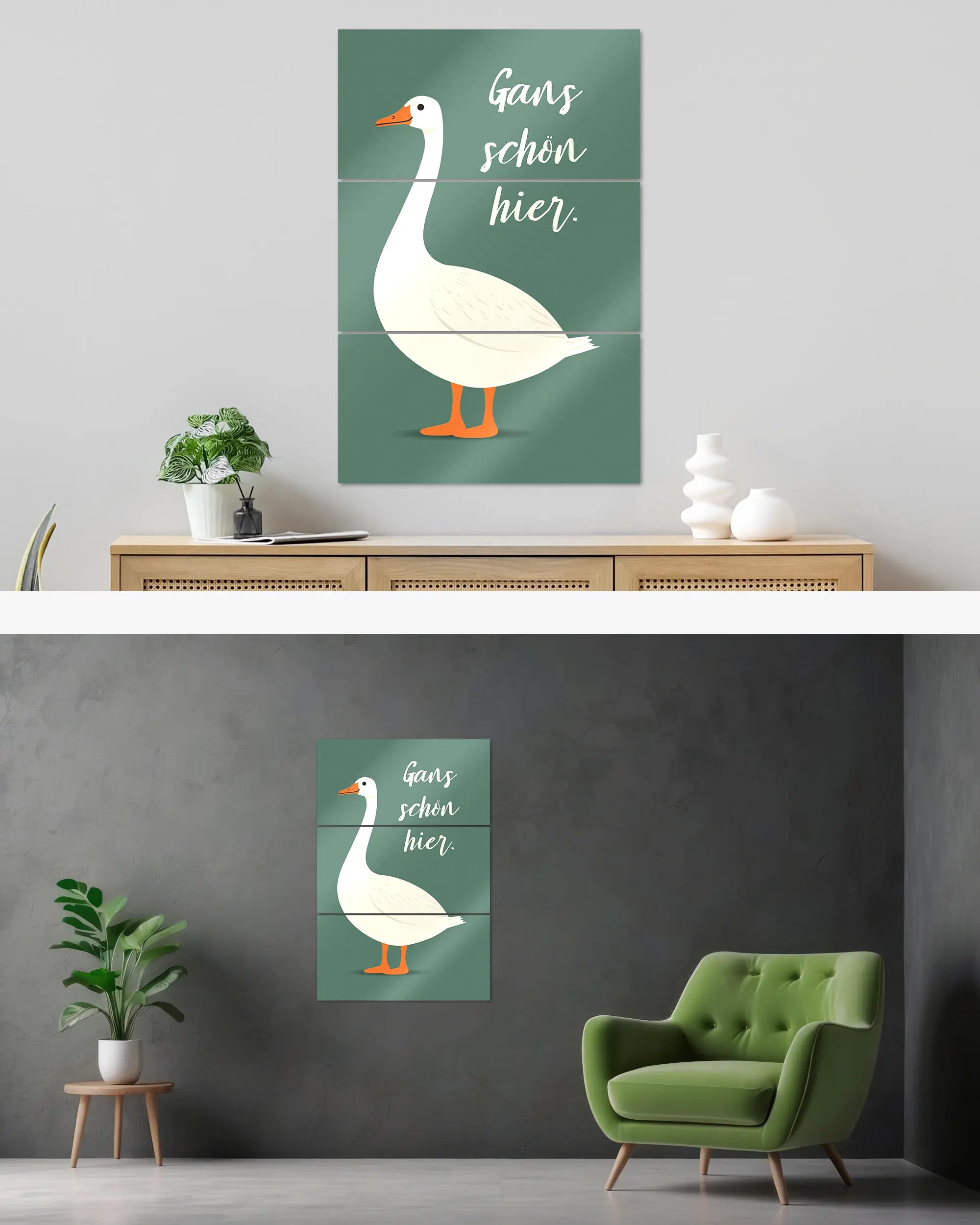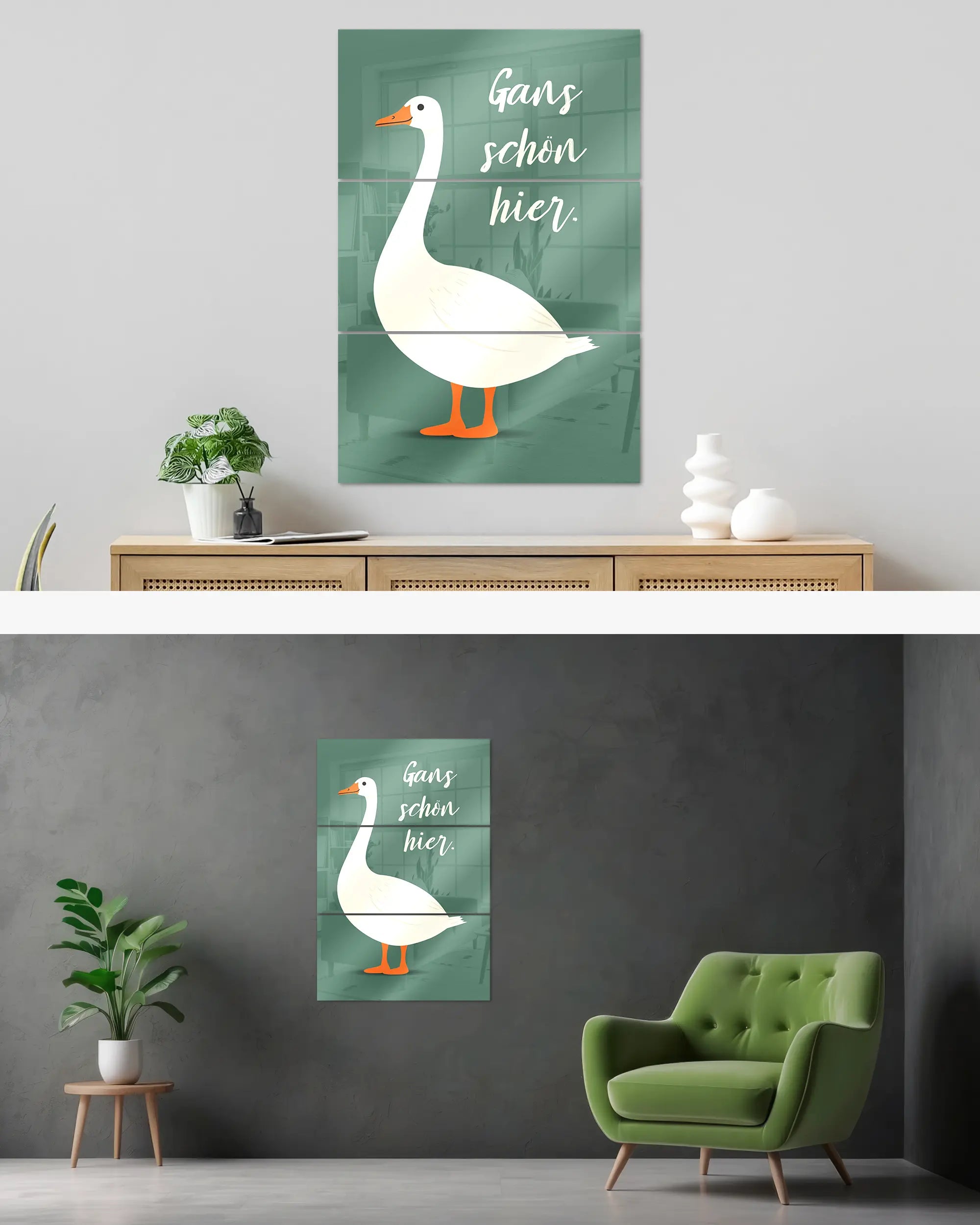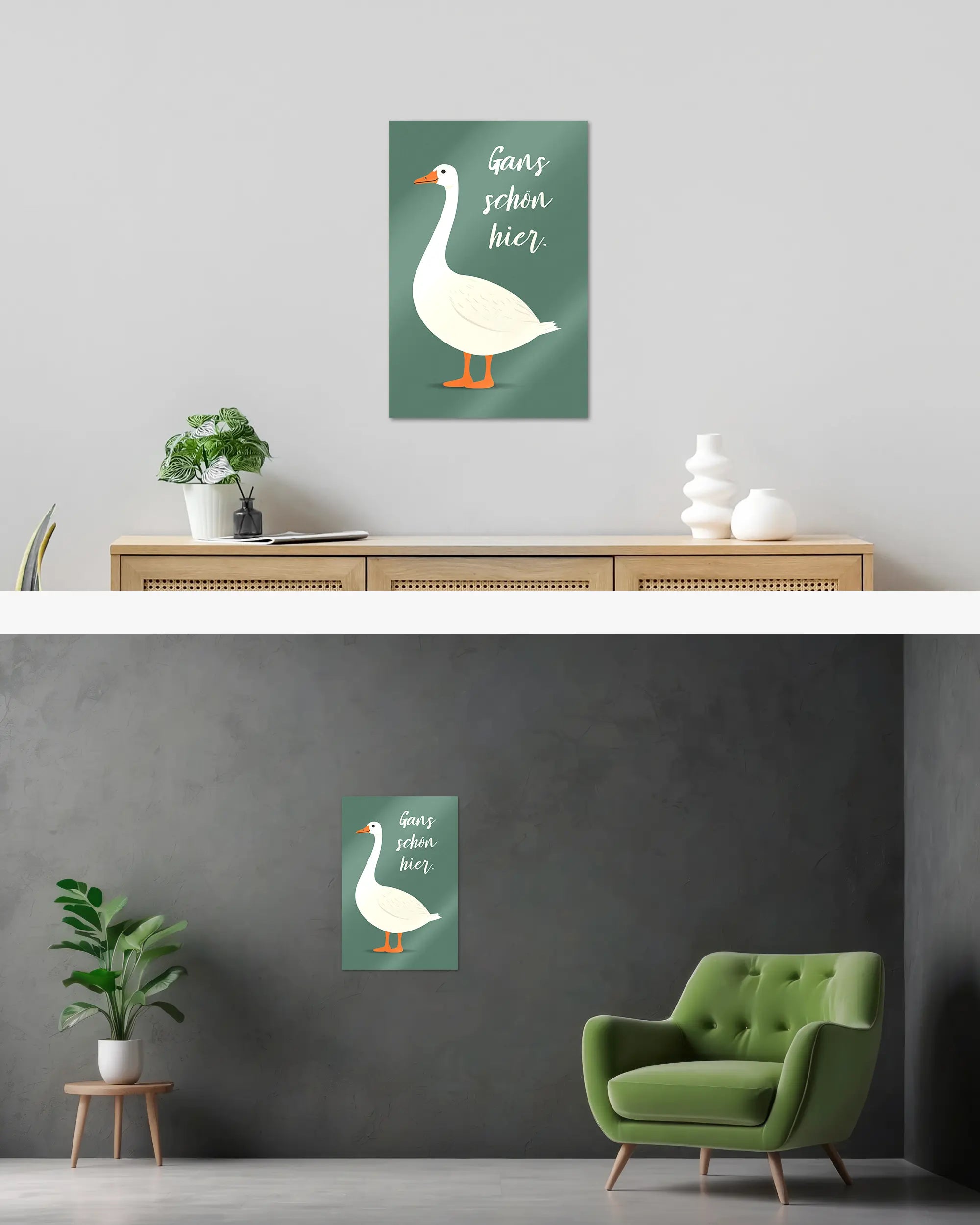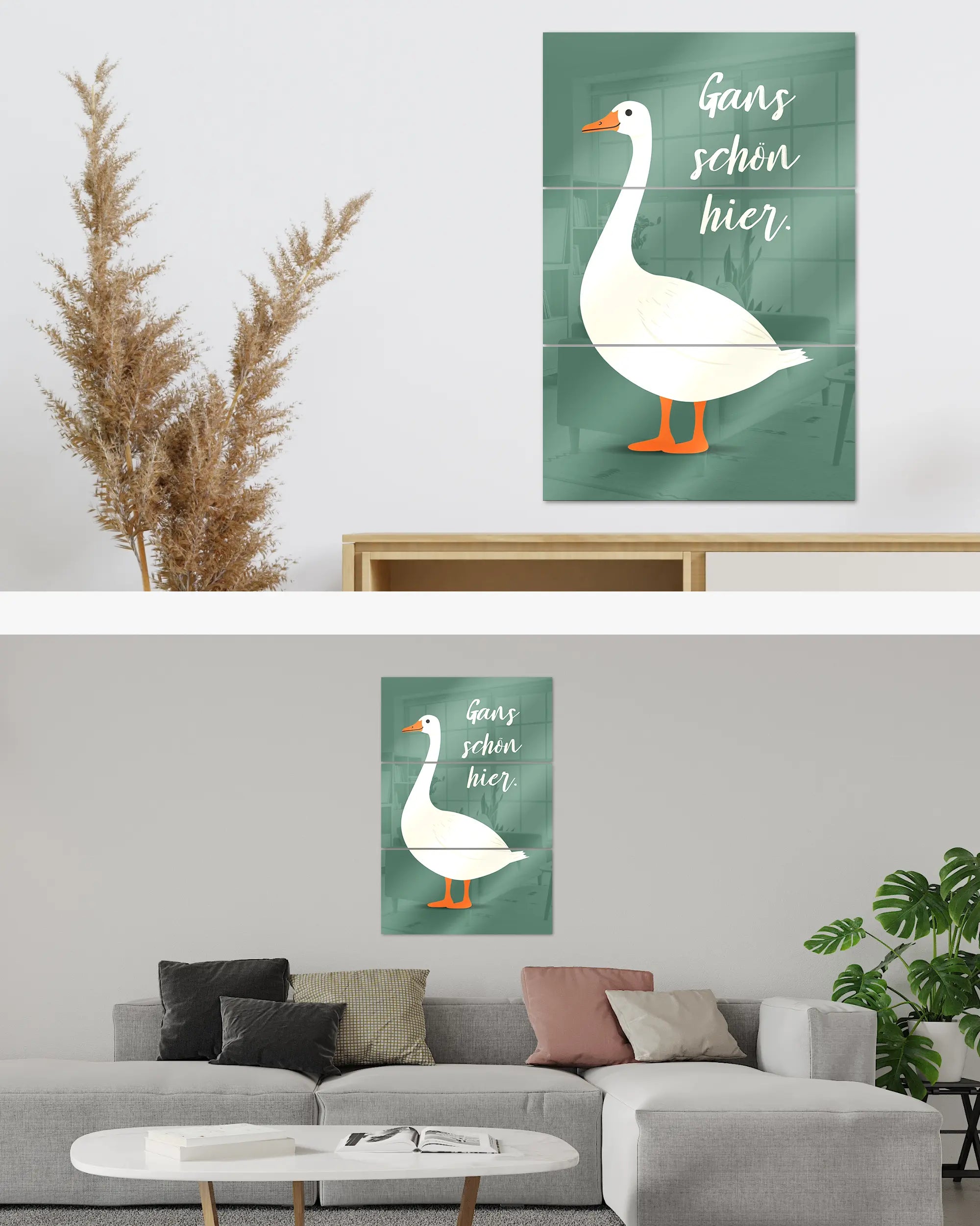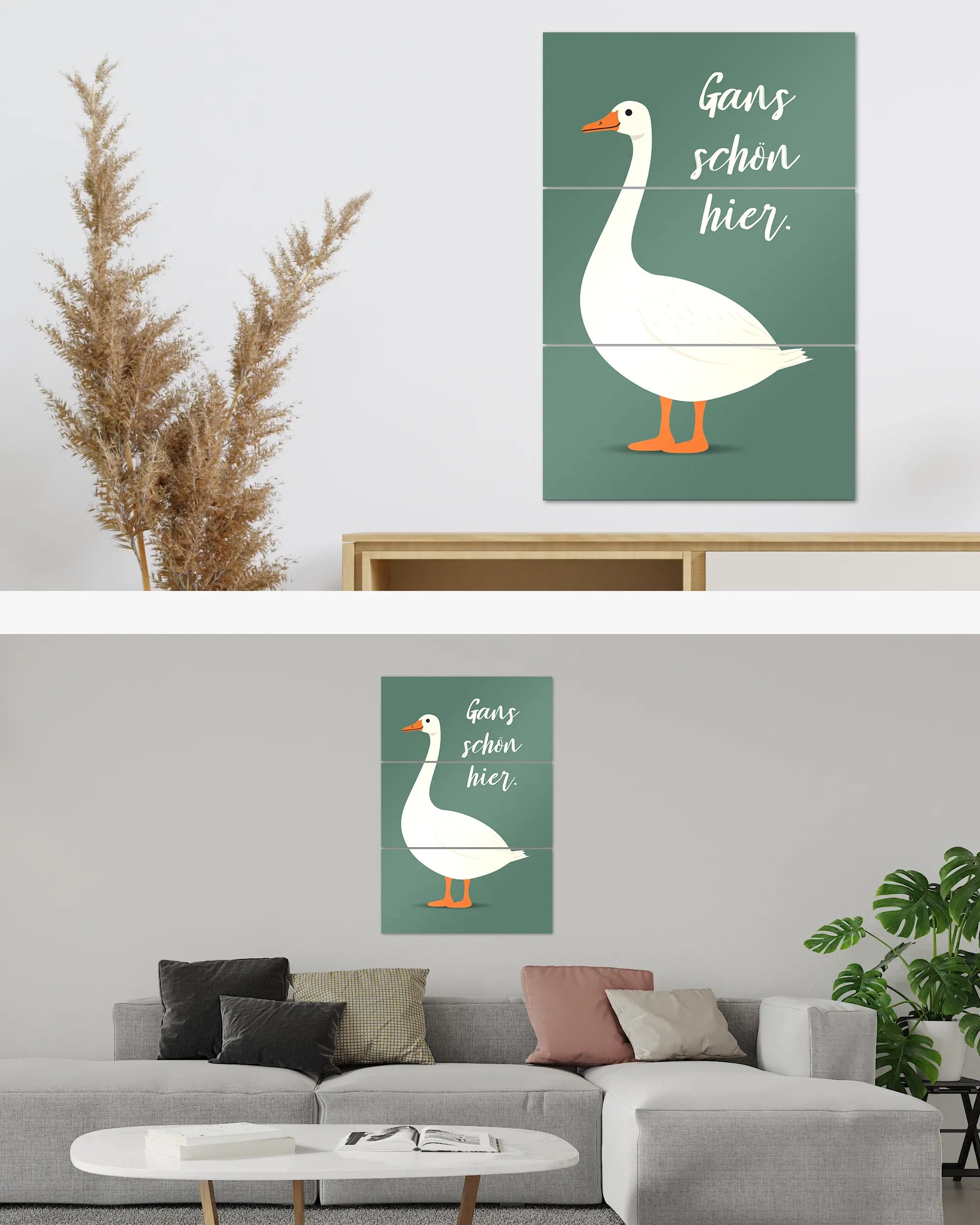 Was die Poster Plate „Gans schön hier“ von Maondo so besonders macht, erfährst du in den folgenden Abschnitten, aber zuerst das Wichtigste: Poster Plates sind das Beste aus der Welt von Postern und Leinwänden, vereint in einem Produkt. Sie sind so farbenstark und glatt wie hochwertige Poster und dabei gleichzeitig so robust und langlebig wie Leinwände. Besonders wegen ihrer Robustheit sind sie nicht nur zu ewigem Rumhängen verdammt, sondern eignen sich als echte Sammlerstücke.