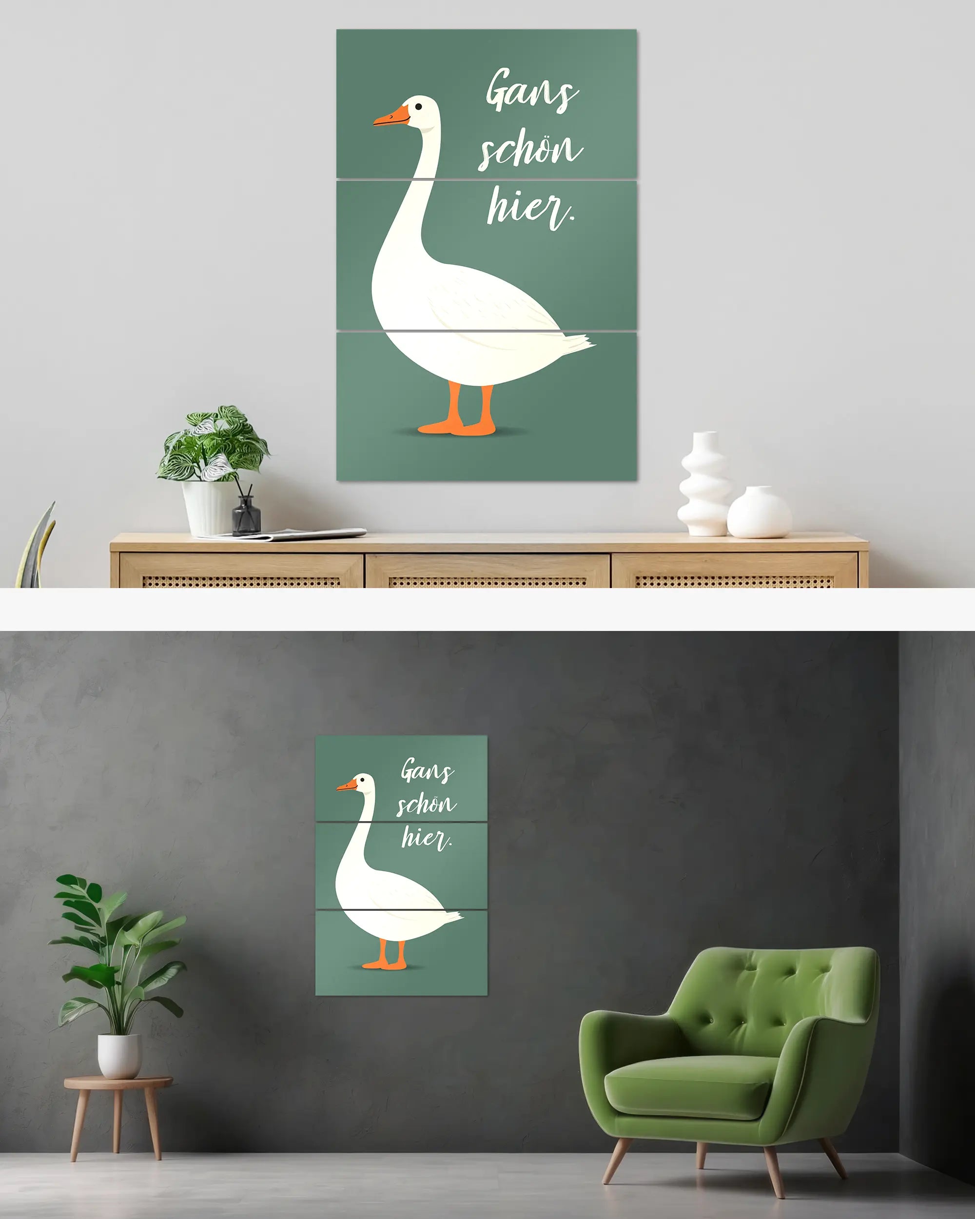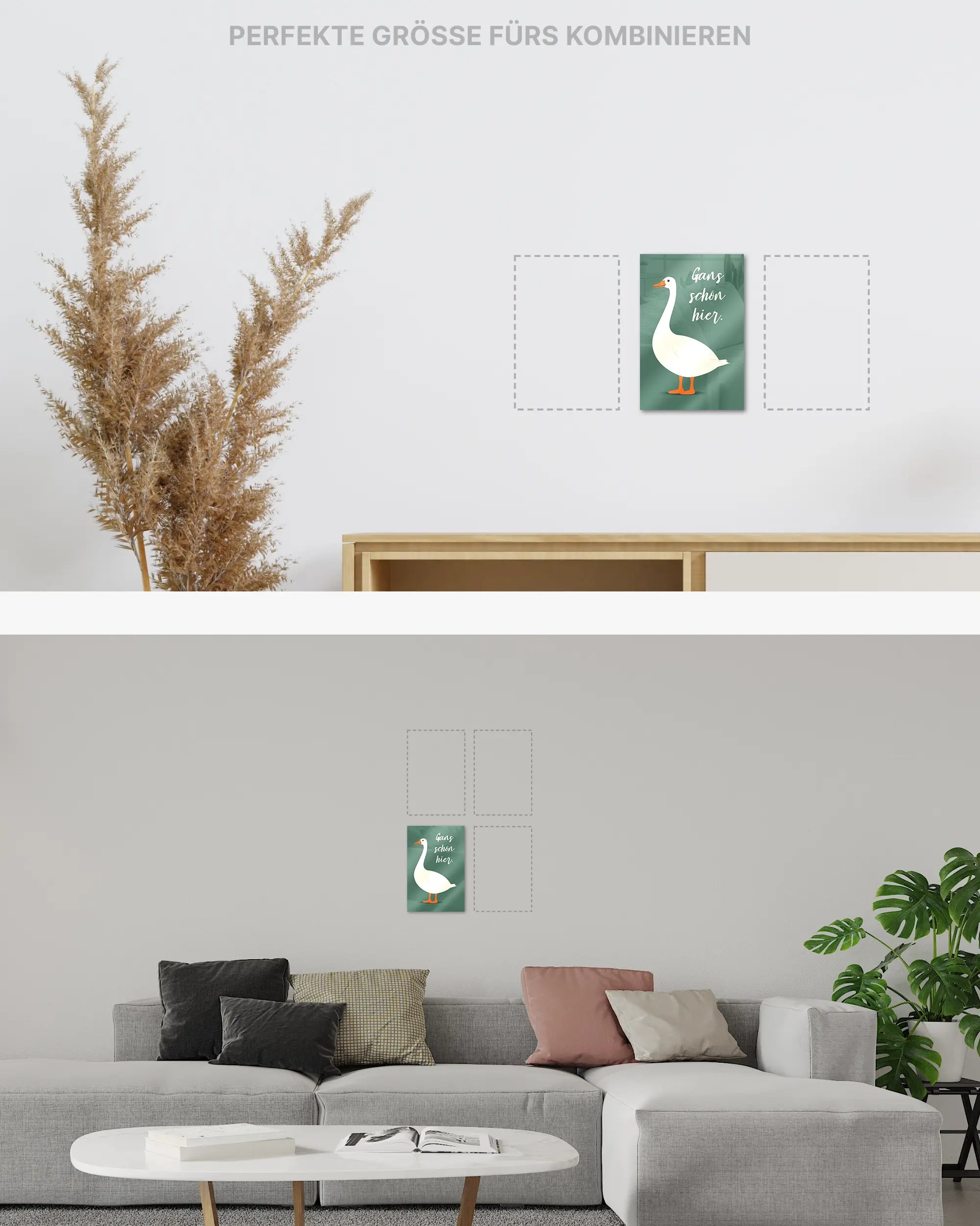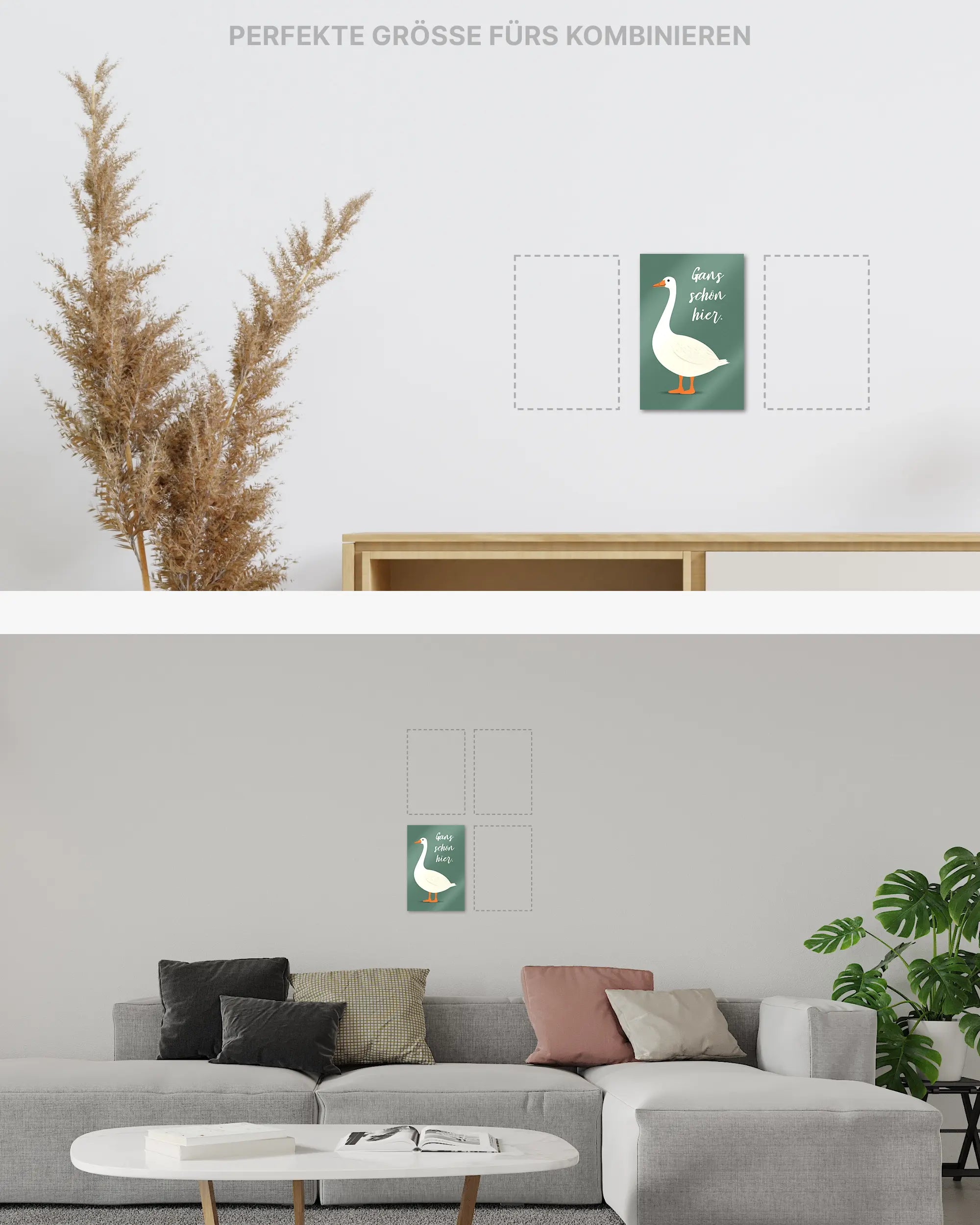 Ganz egal ob du zur Miete wohnst oder dein Eigenheim aufwerten möchtest. Diese Poster Plate von Maondo passt in fast jedes Zimmer, solange es relativ flache Wände hat. Über unsere Zimmersuche, kannst du direkt ein Design für ein bestimmtes Zimmer finden. Das Design „Gans schön hier“ passt fast überall, eignet sich aber besonders gut für folgende(s) Zimmer: