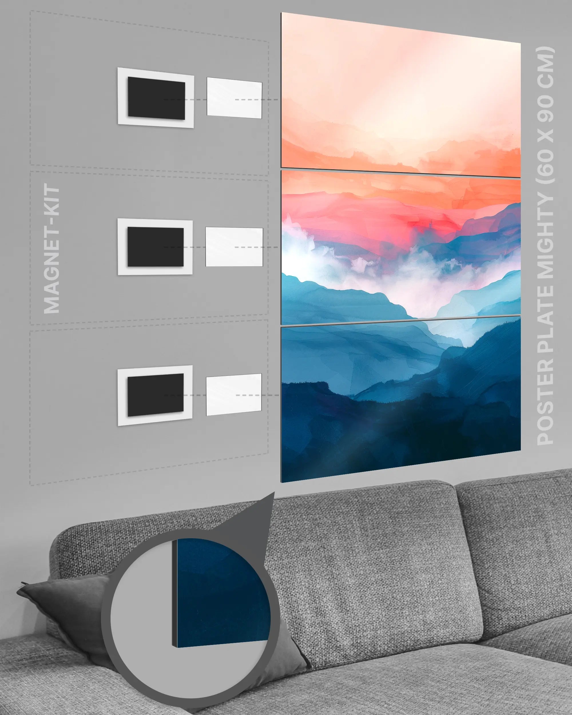✅ Kein Rahmen: Die Kombination von Poster Plate und Magnet-Kit macht auch einen zusätzlichen Rahmen überflüssig.