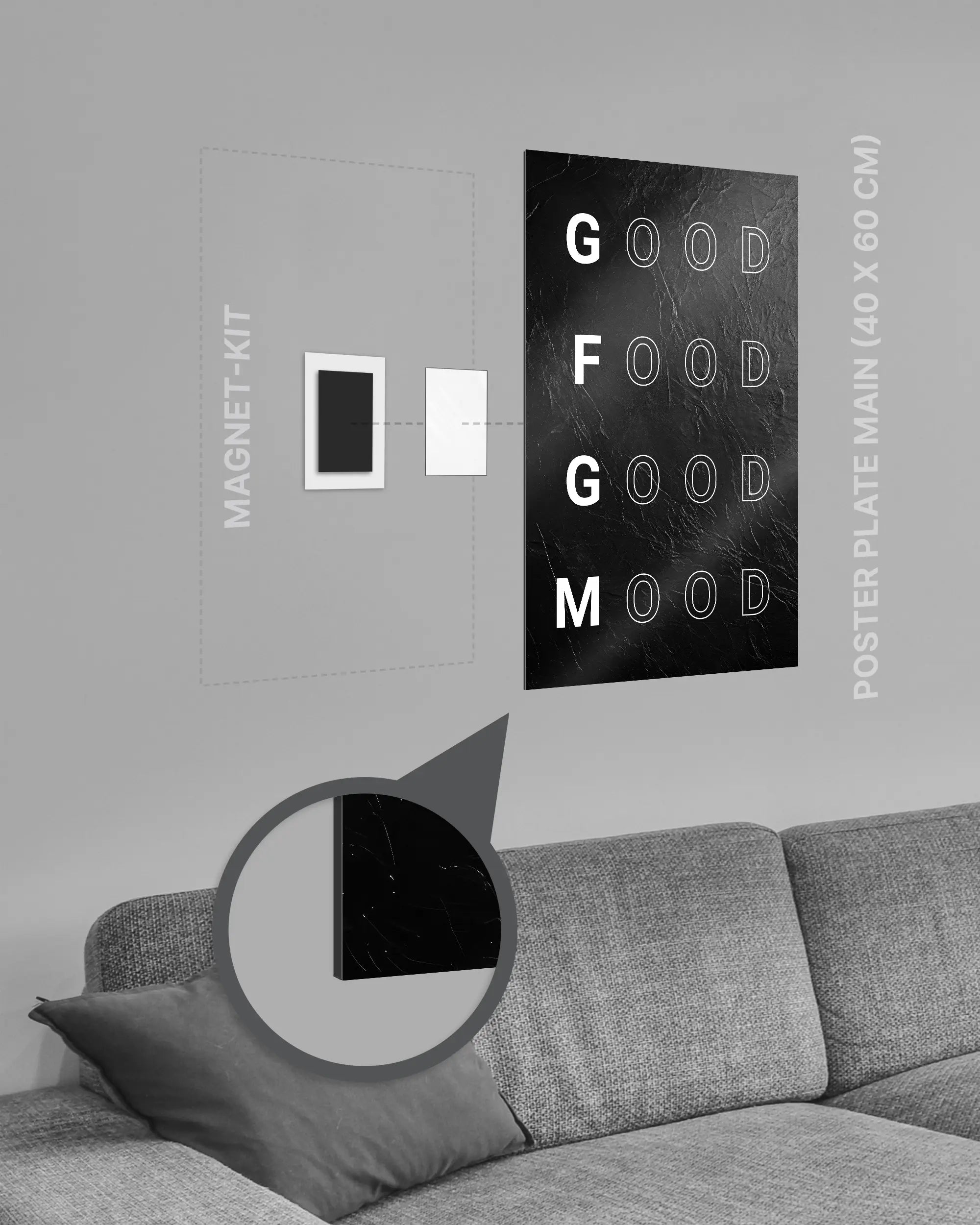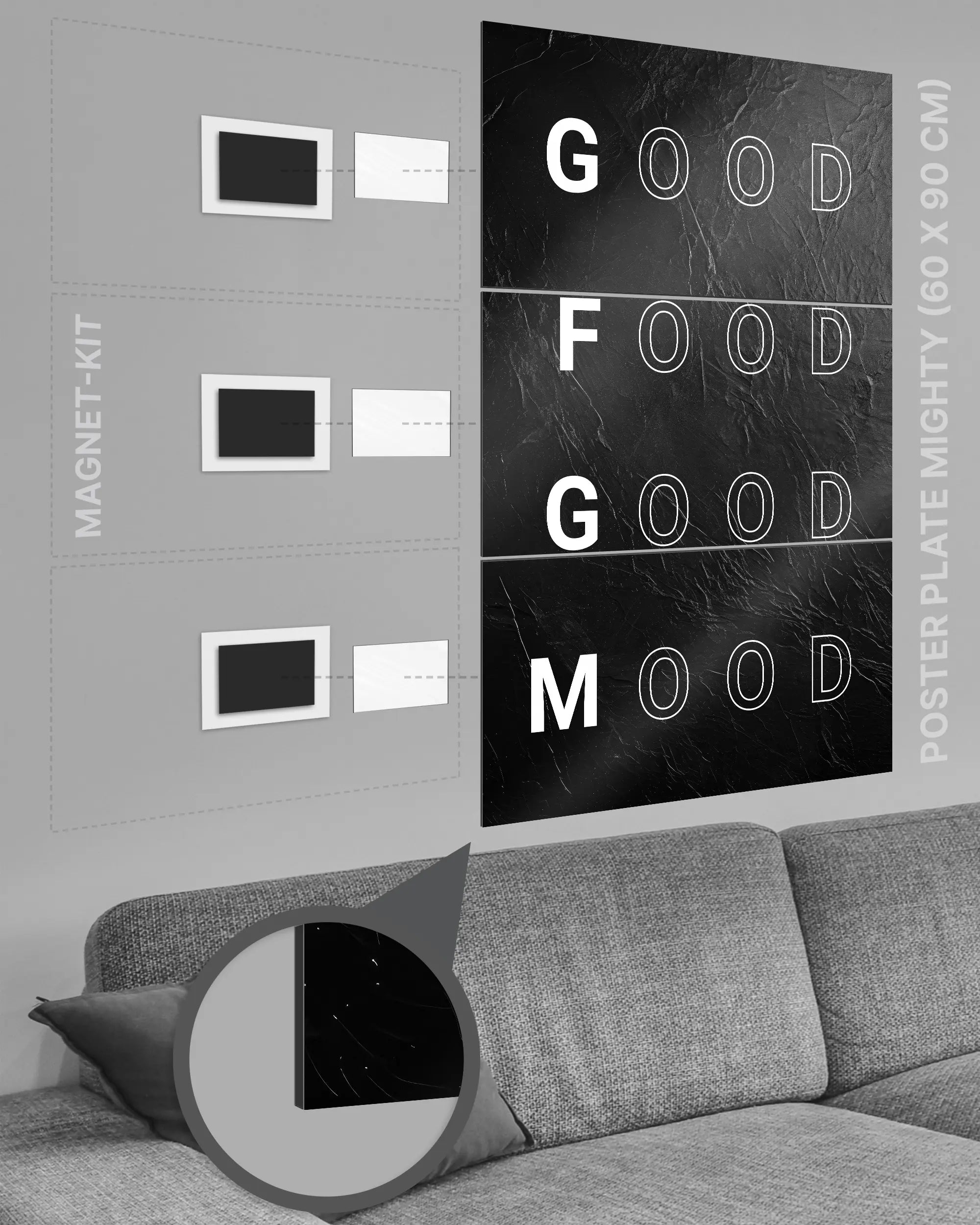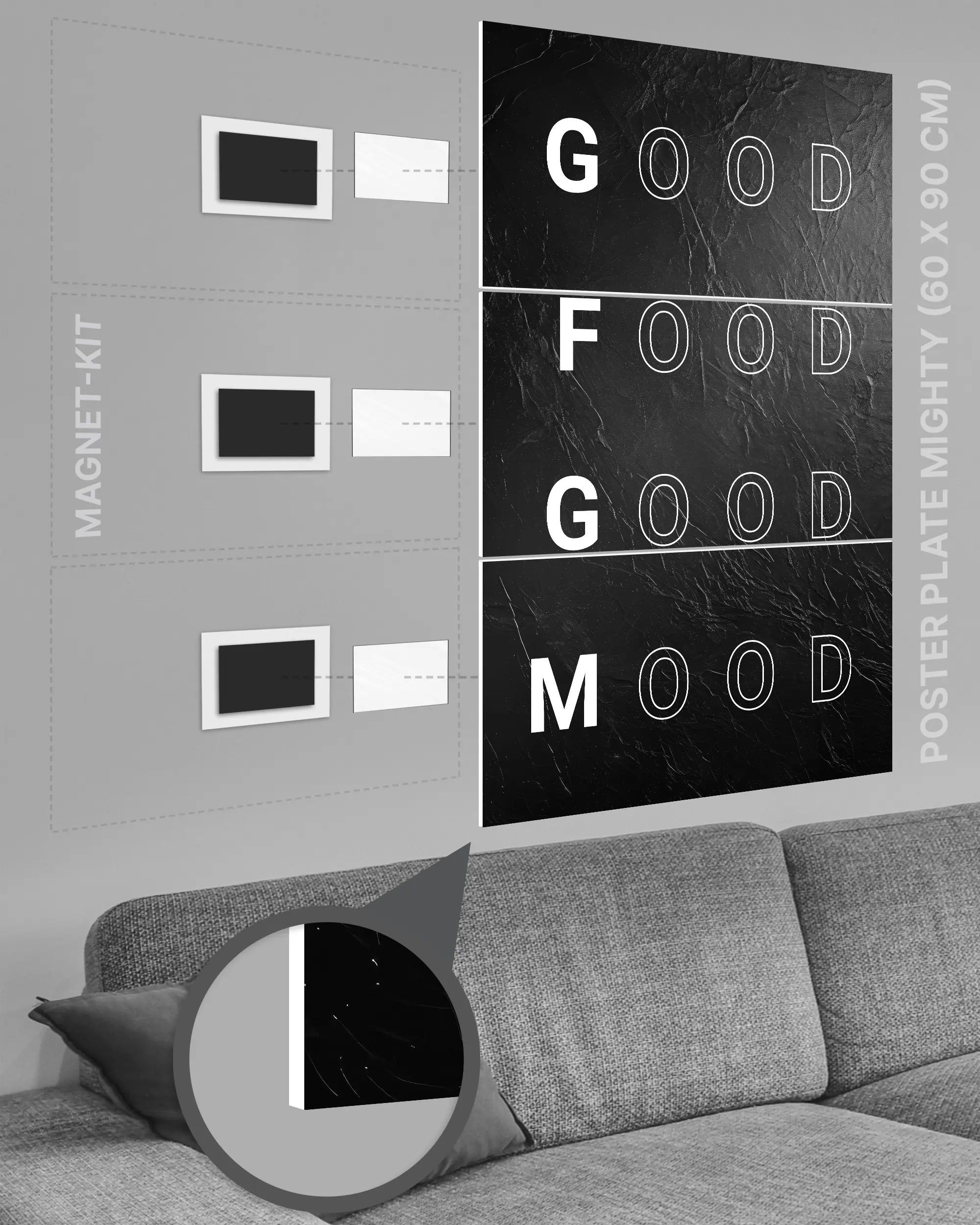 ✅ Kein Rahmen: Die Kombination von Poster Plate und Magnet-Kit macht auch einen zusätzlichen Rahmen überflüssig.