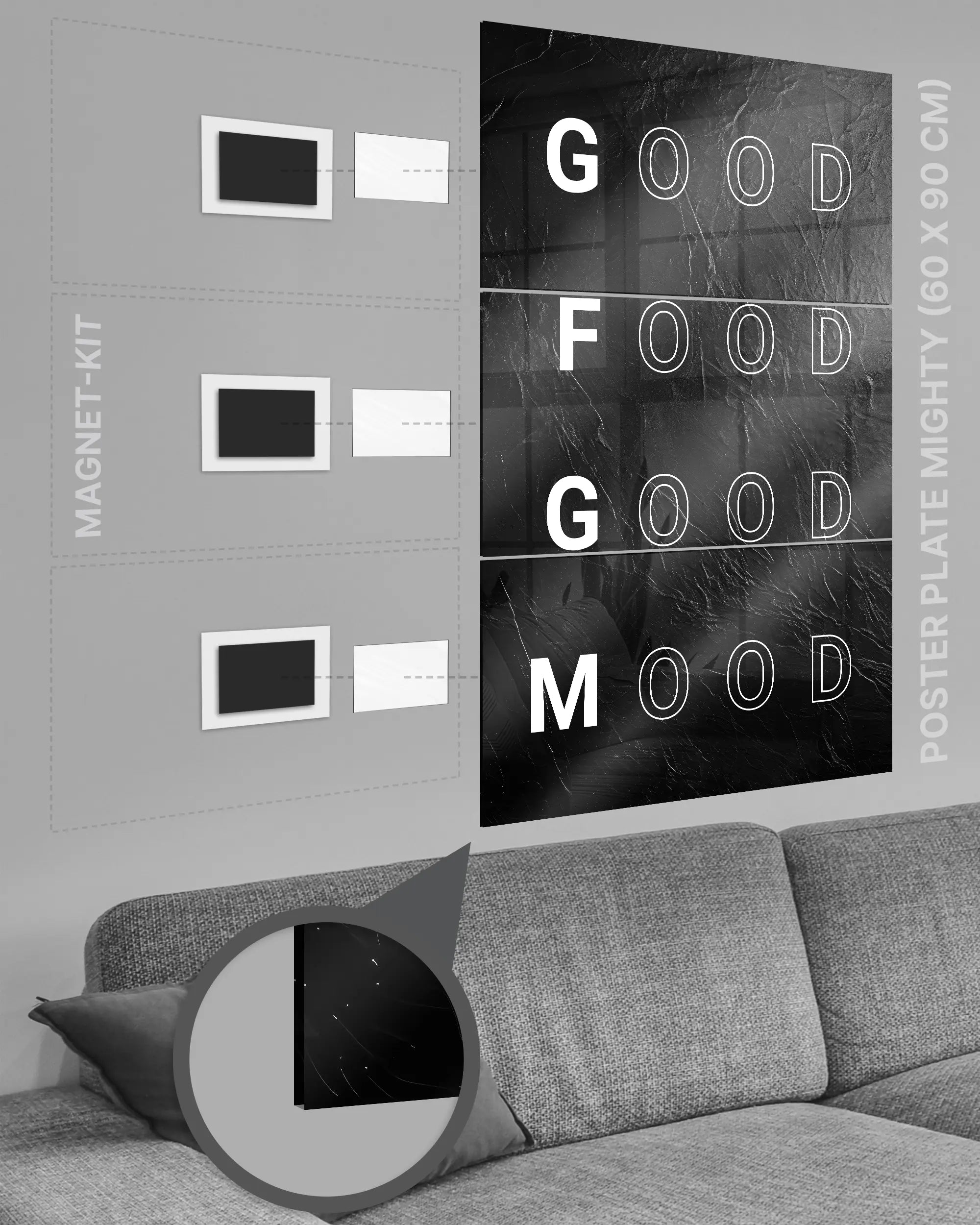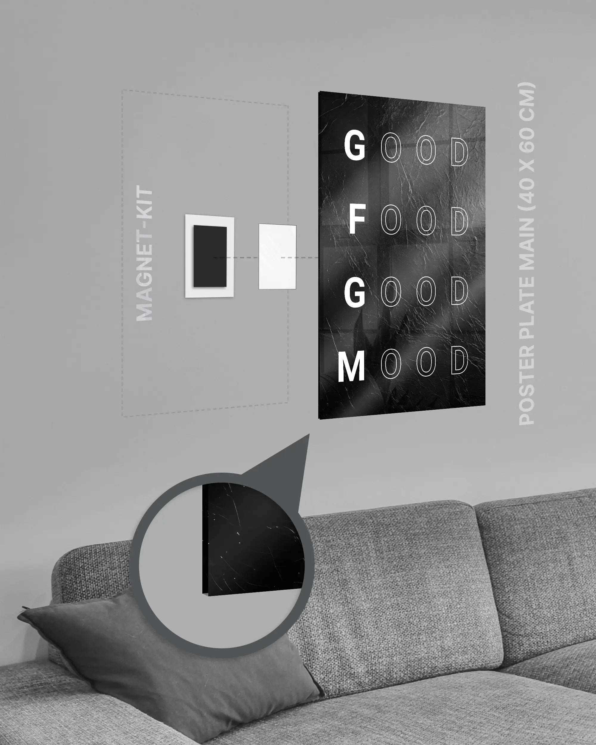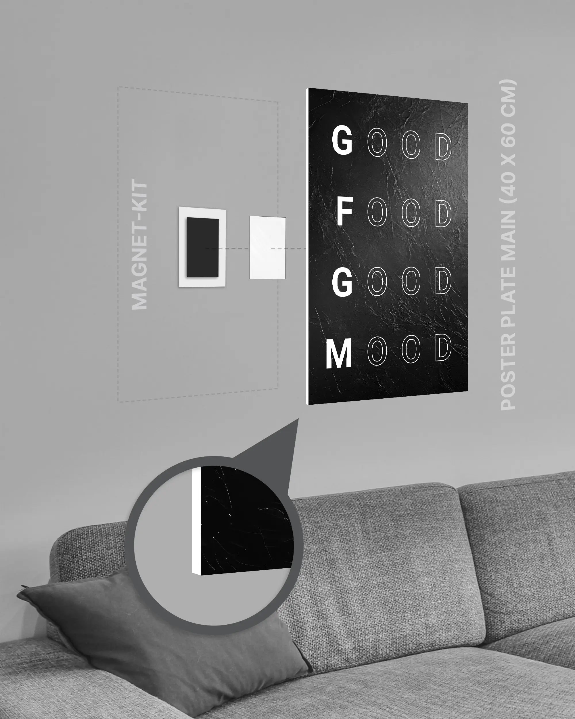 ✅ Kein Rahmen: Die Kombination von Poster Plate und Magnet-Kit macht auch einen zusätzlichen Rahmen überflüssig.