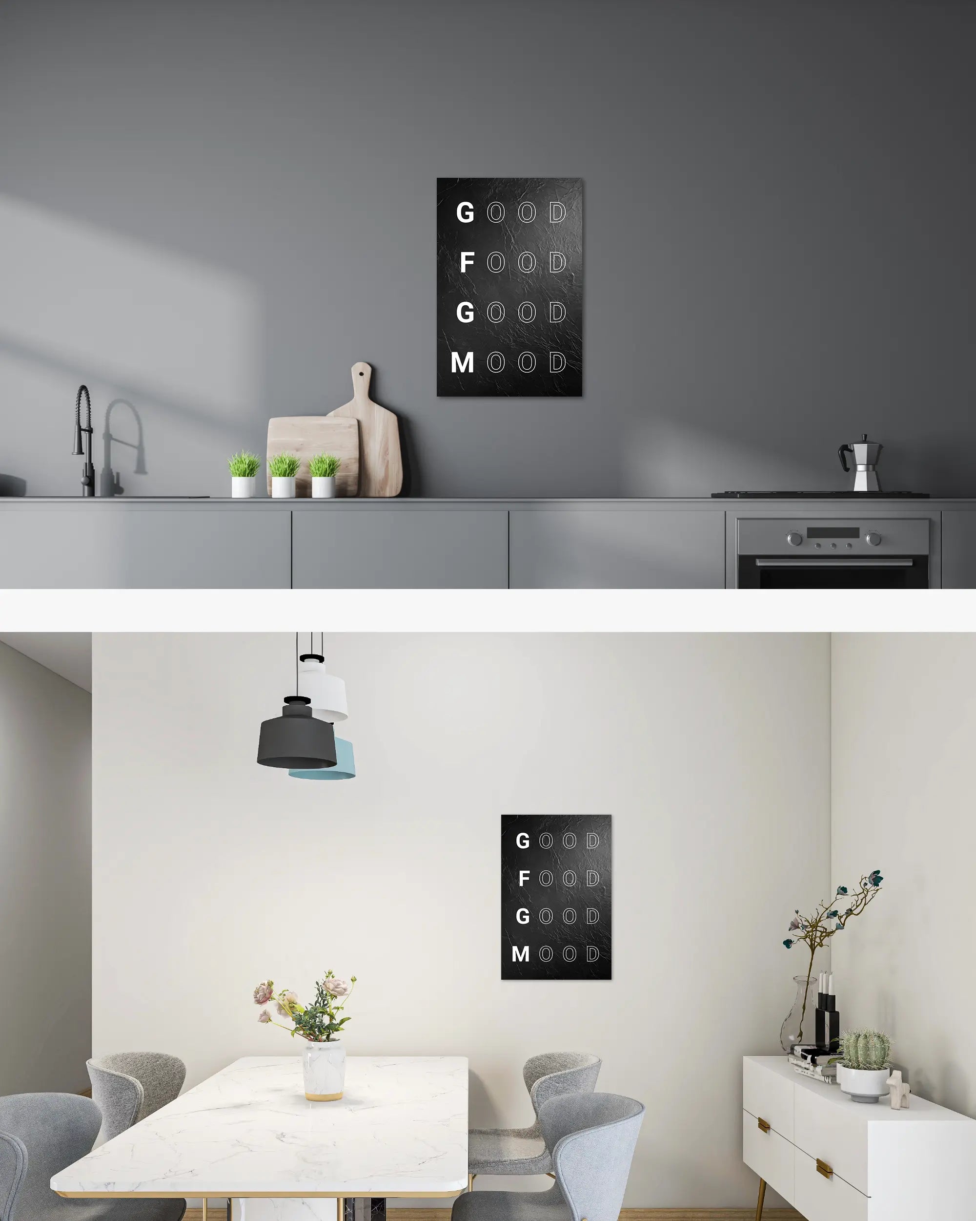 Was die Poster Plate „Good Food Good Mood“ von Maondo so besonders macht, erfährst du in den folgenden Abschnitten, aber zuerst das Wichtigste: Poster Plates sind das Beste aus der Welt von Postern und Leinwänden, vereint in einem Produkt. Sie sind so farbenstark und glatt wie hochwertige Poster und dabei gleichzeitig so robust und langlebig wie Leinwände. Besonders wegen ihrer Robustheit sind sie nicht nur zu ewigem Rumhängen verdammt, sondern eignen sich als echte Sammlerstücke.