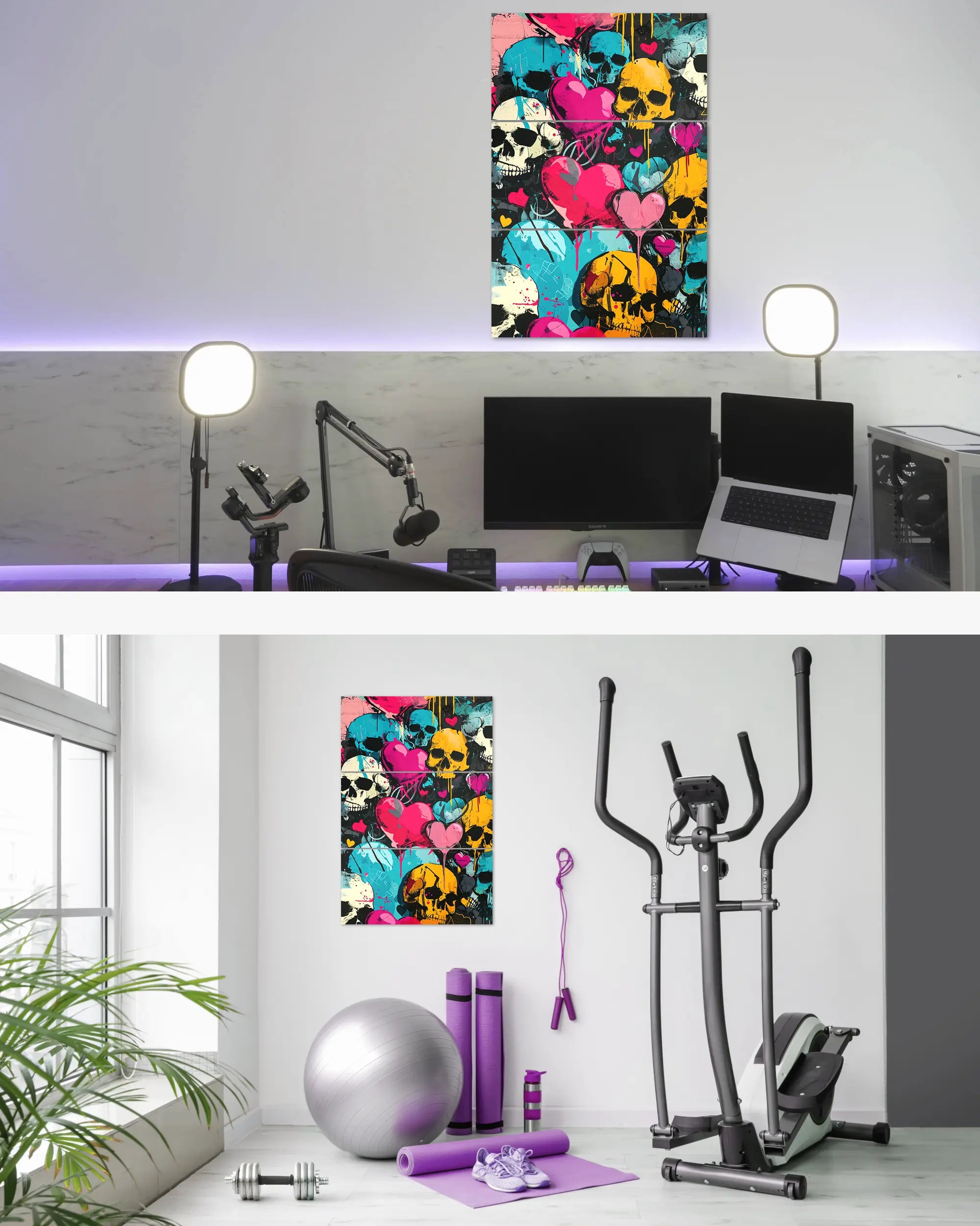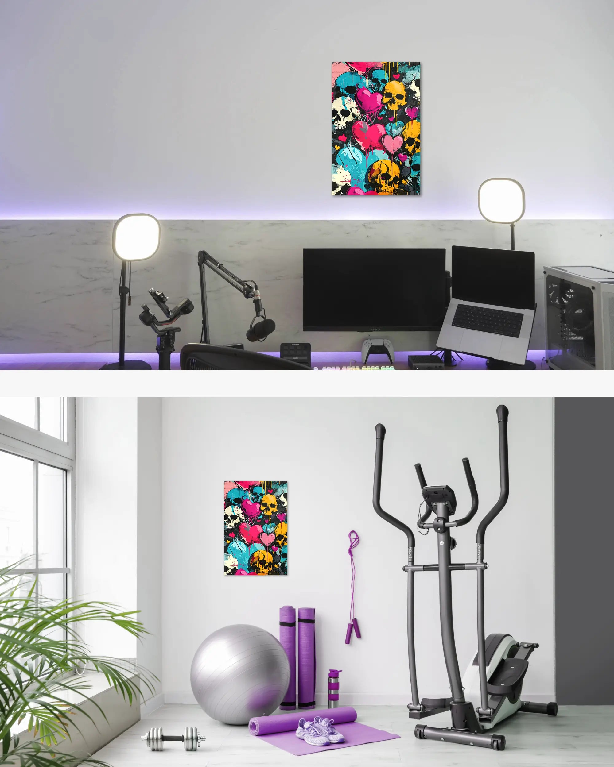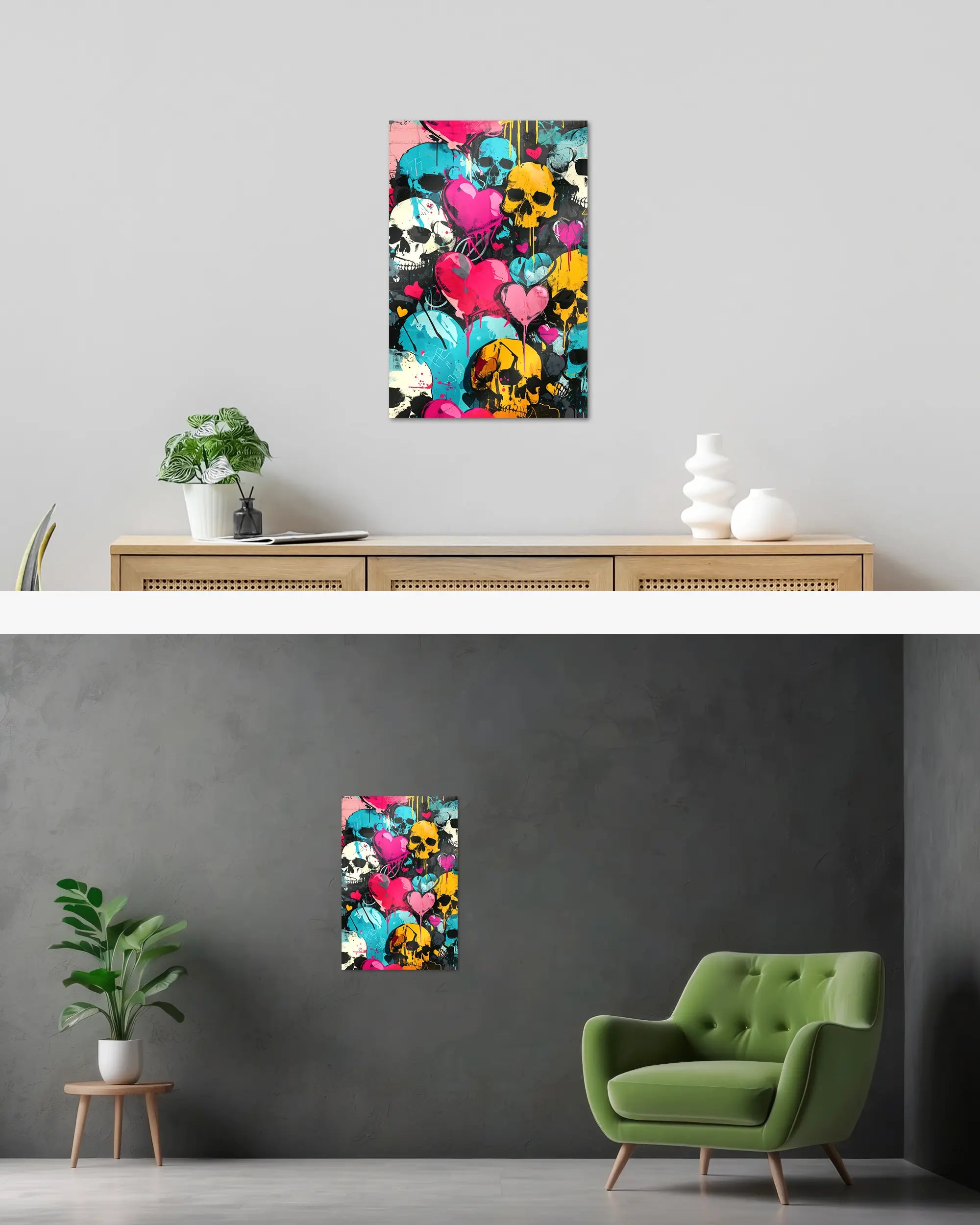 Was die Poster Plate „Happy Schädeltime“ von Maondo so besonders macht, erfährst du in den folgenden Abschnitten, aber zuerst das Wichtigste: Poster Plates sind das Beste aus der Welt von Postern und Leinwänden, vereint in einem Produkt. Sie sind so farbenstark und glatt wie hochwertige Poster und dabei gleichzeitig so robust und langlebig wie Leinwände. Besonders wegen ihrer Robustheit sind sie nicht nur zu ewigem Rumhängen verdammt, sondern eignen sich als echte Sammlerstücke.