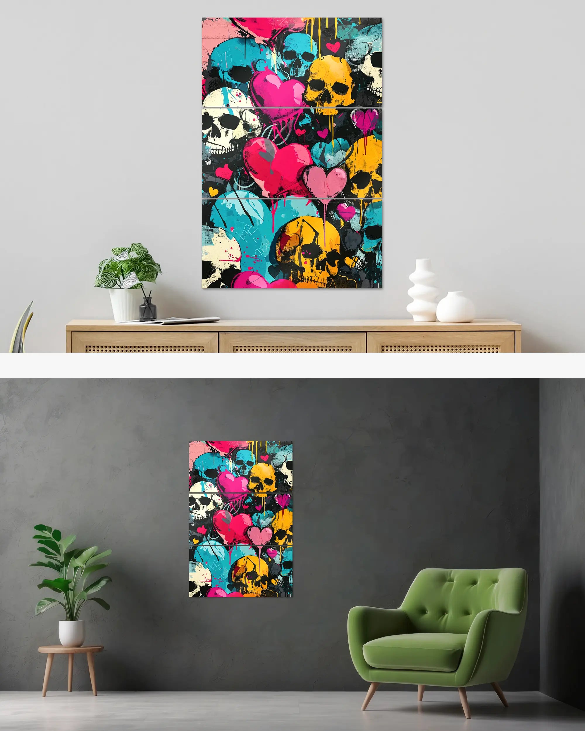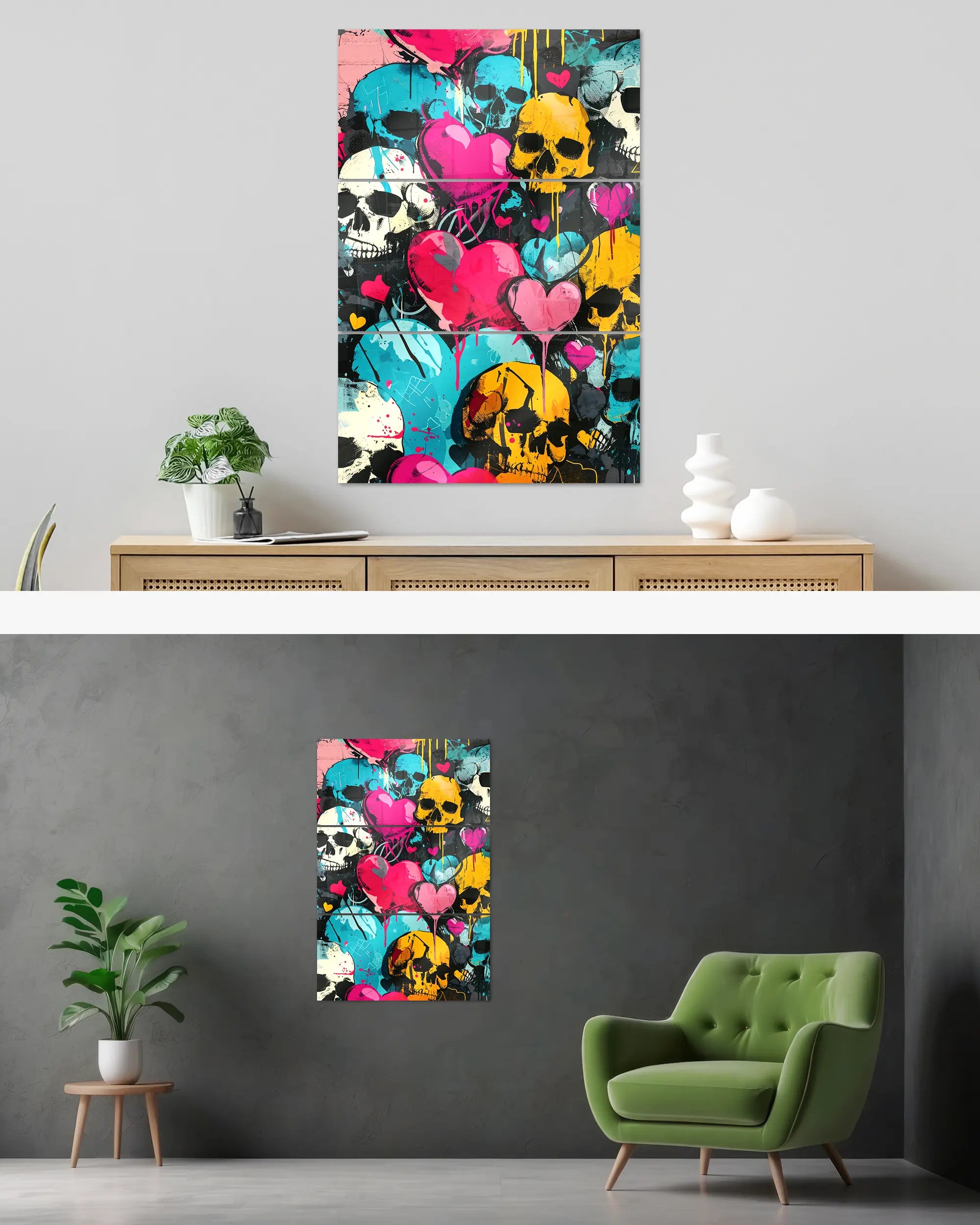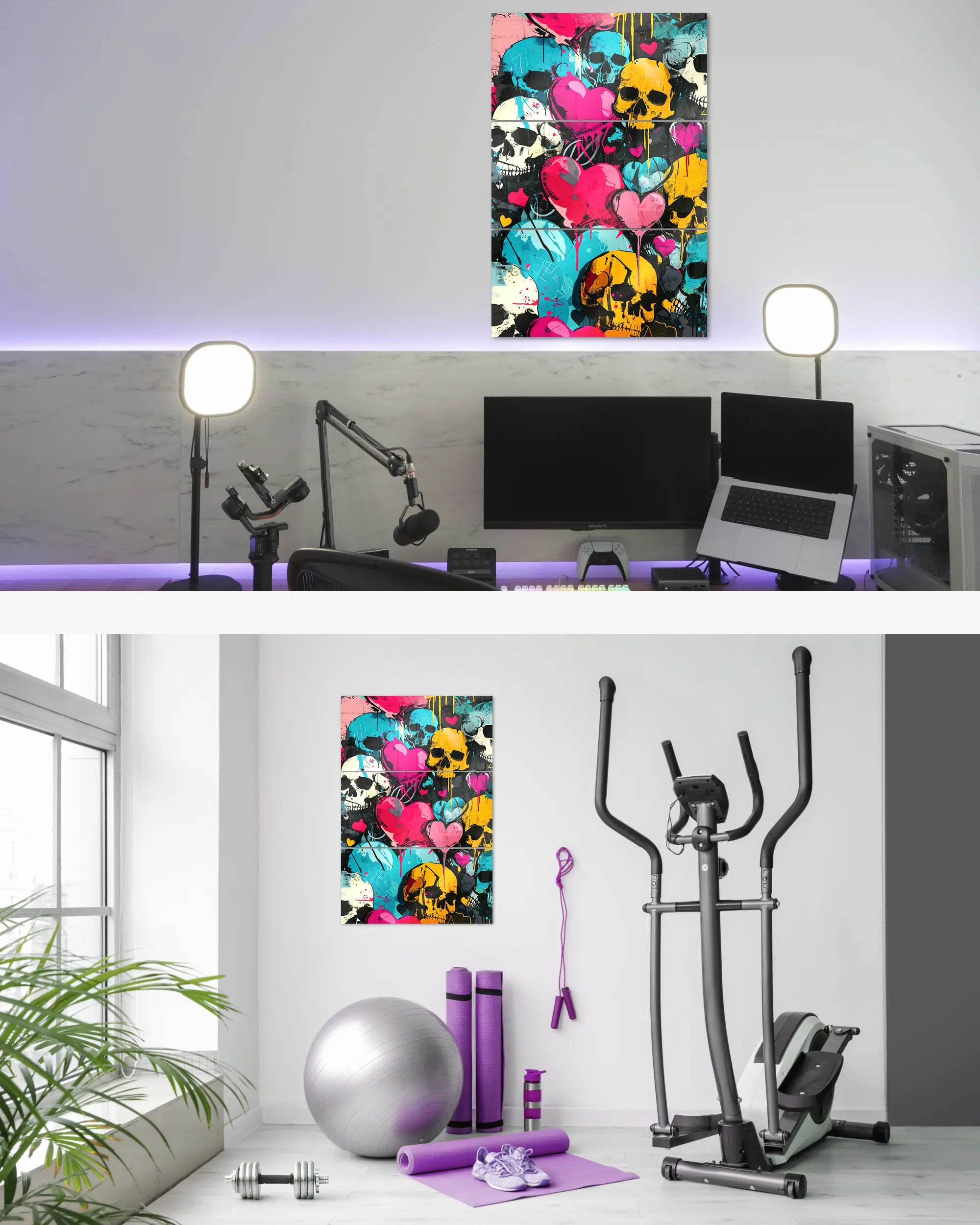 Was die Poster Plate „Happy Schädeltime“ von Maondo so besonders macht, erfährst du in den folgenden Abschnitten, aber zuerst das Wichtigste: Poster Plates sind das Beste aus der Welt von Postern und Leinwänden, vereint in einem Produkt. Sie sind so farbenstark und glatt wie hochwertige Poster und dabei gleichzeitig so robust und langlebig wie Leinwände. Besonders wegen ihrer Robustheit sind sie nicht nur zu ewigem Rumhängen verdammt, sondern eignen sich als echte Sammlerstücke.