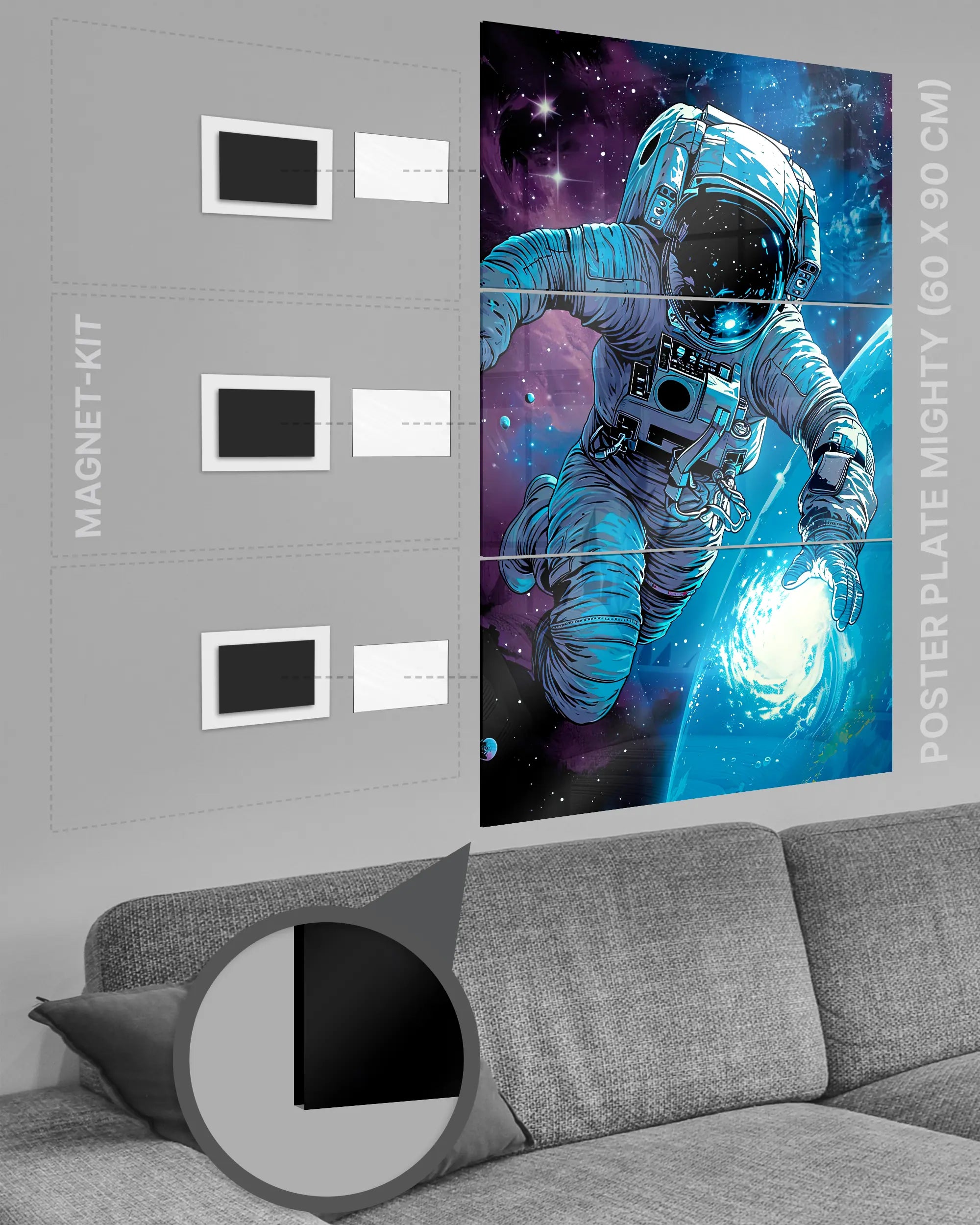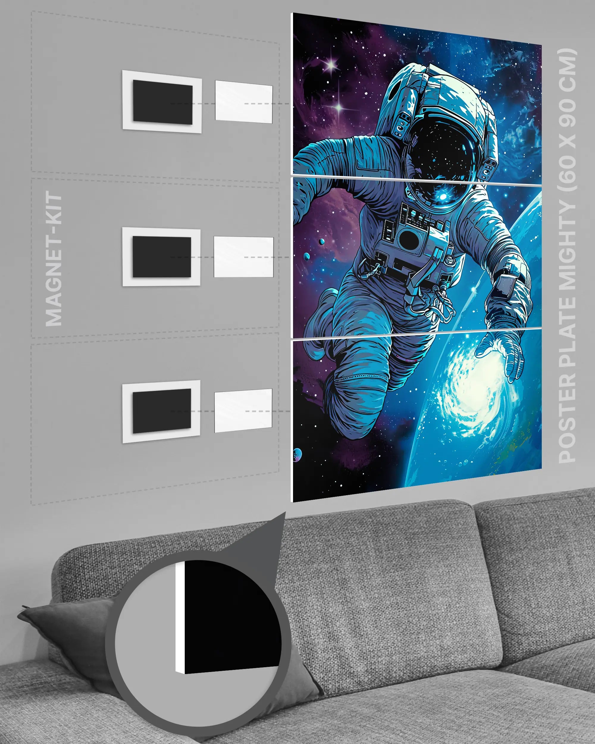 ✅ Kein Rahmen: Die Kombination von Poster Plate und Magnet-Kit macht auch einen zusätzlichen Rahmen überflüssig.