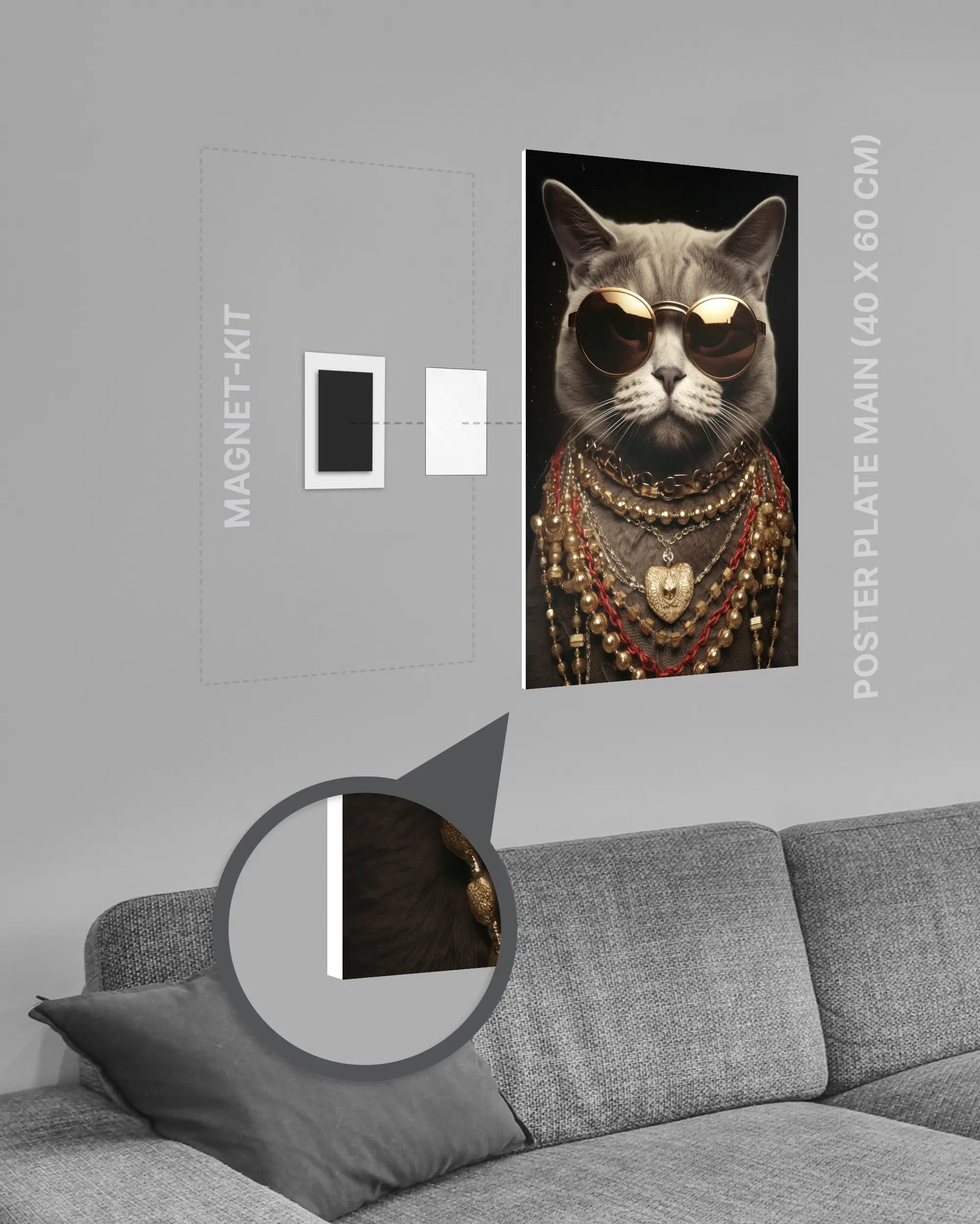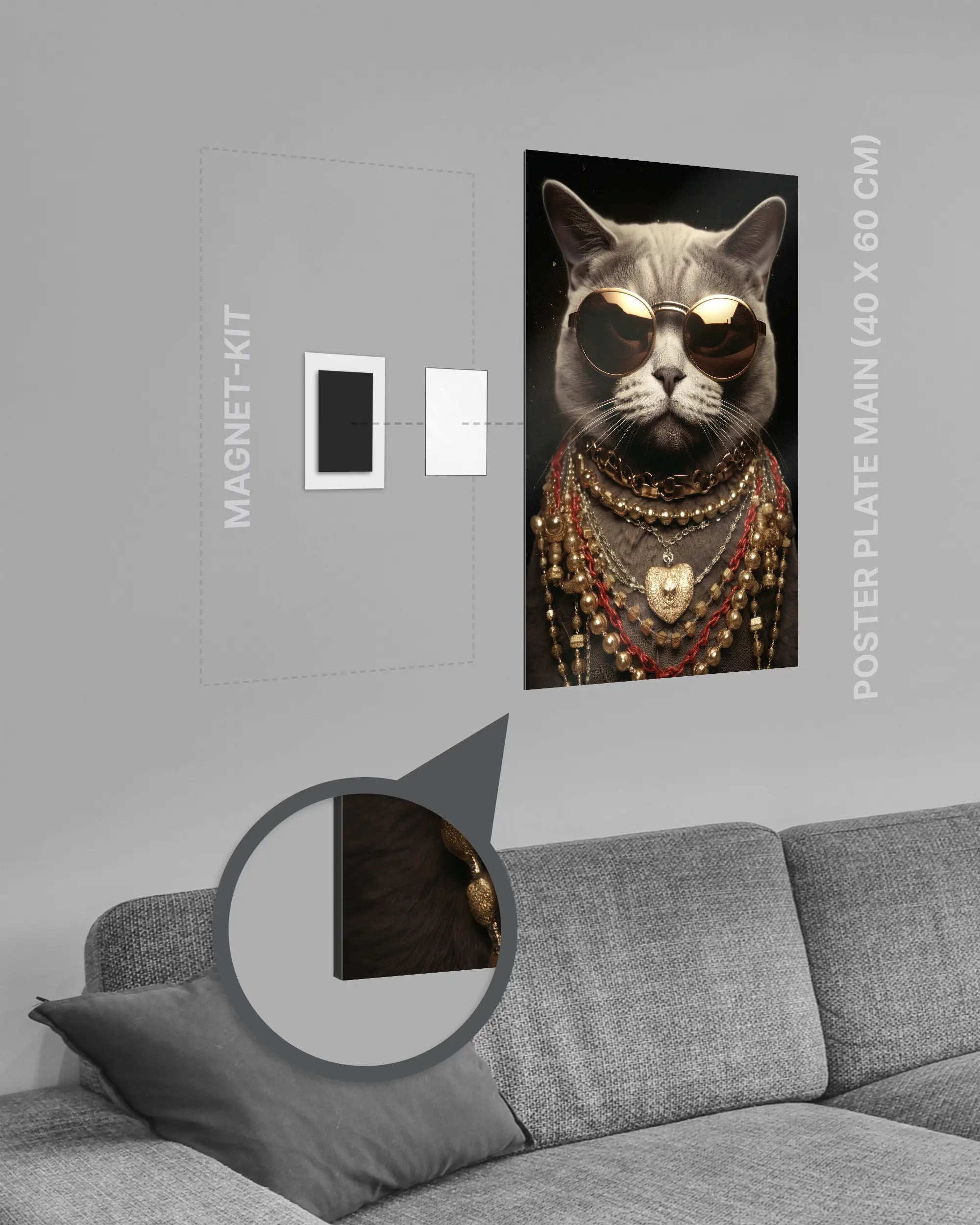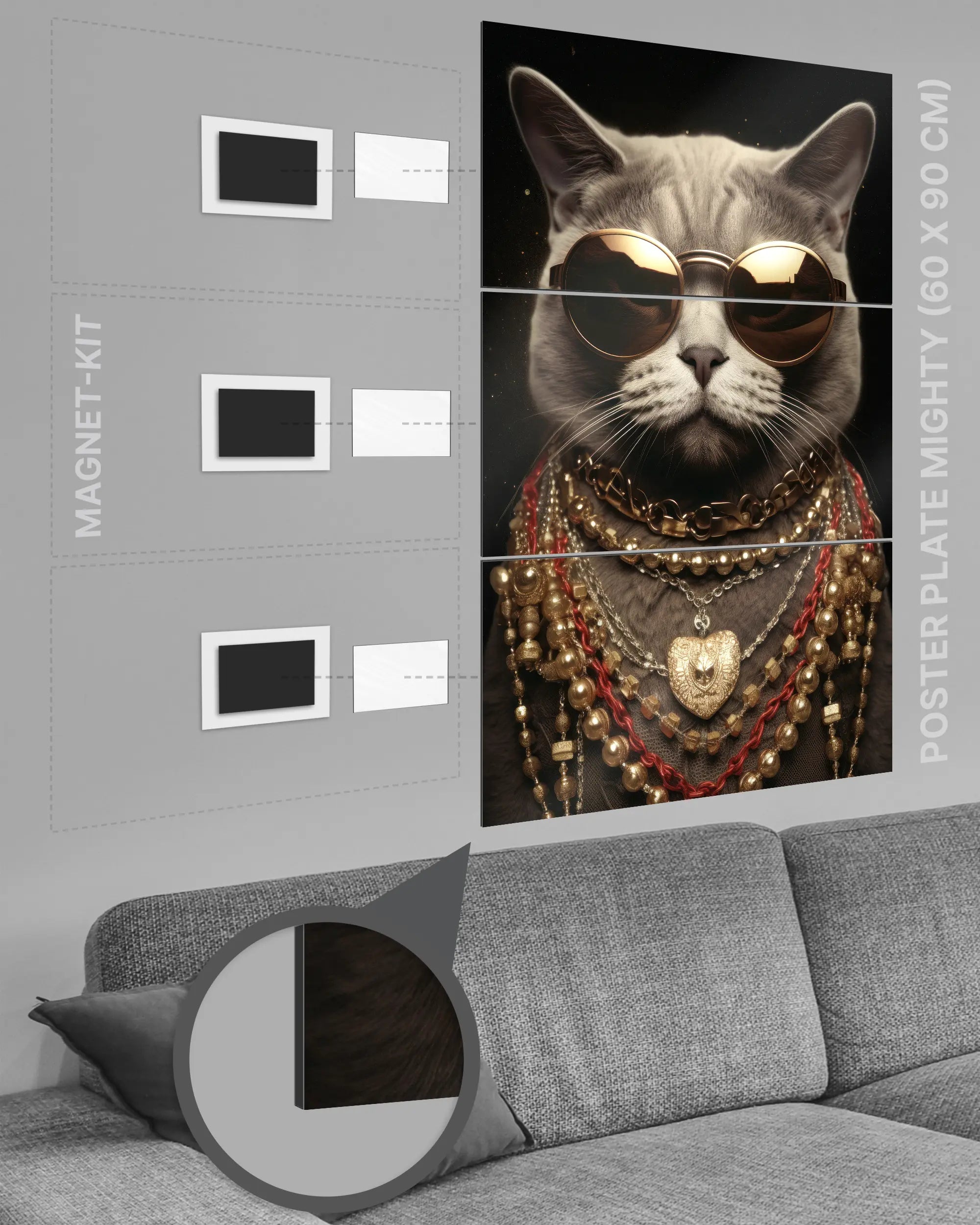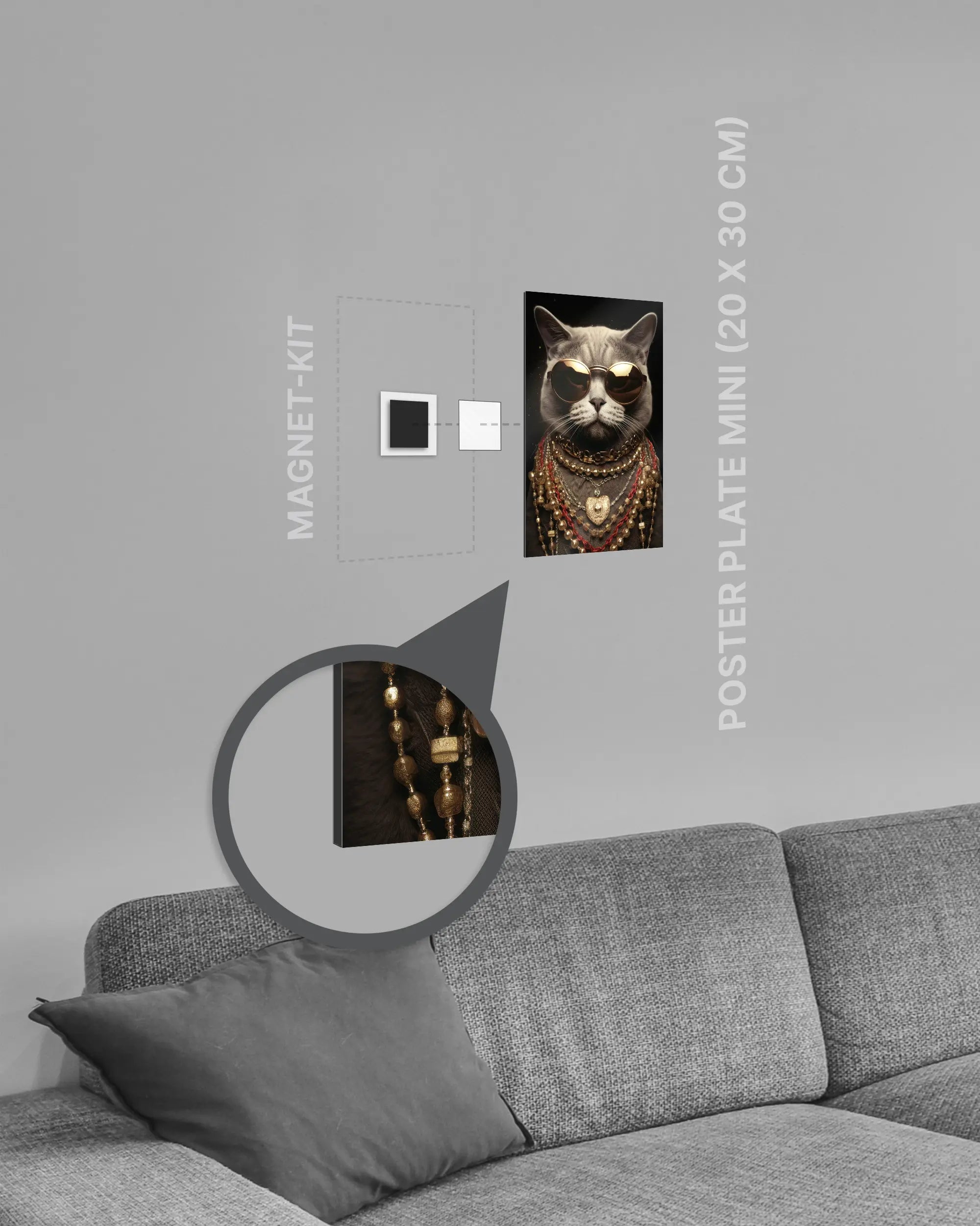 Bei deiner „Money Maker Katja“ Poster Plate ist das Magnet-Kit inklusive. Damit kannst du das Kunststück ganz ohne Bohren, Hämmern oder Rahmen an die Wand hängen und genießt dabei folgende Vorteile: