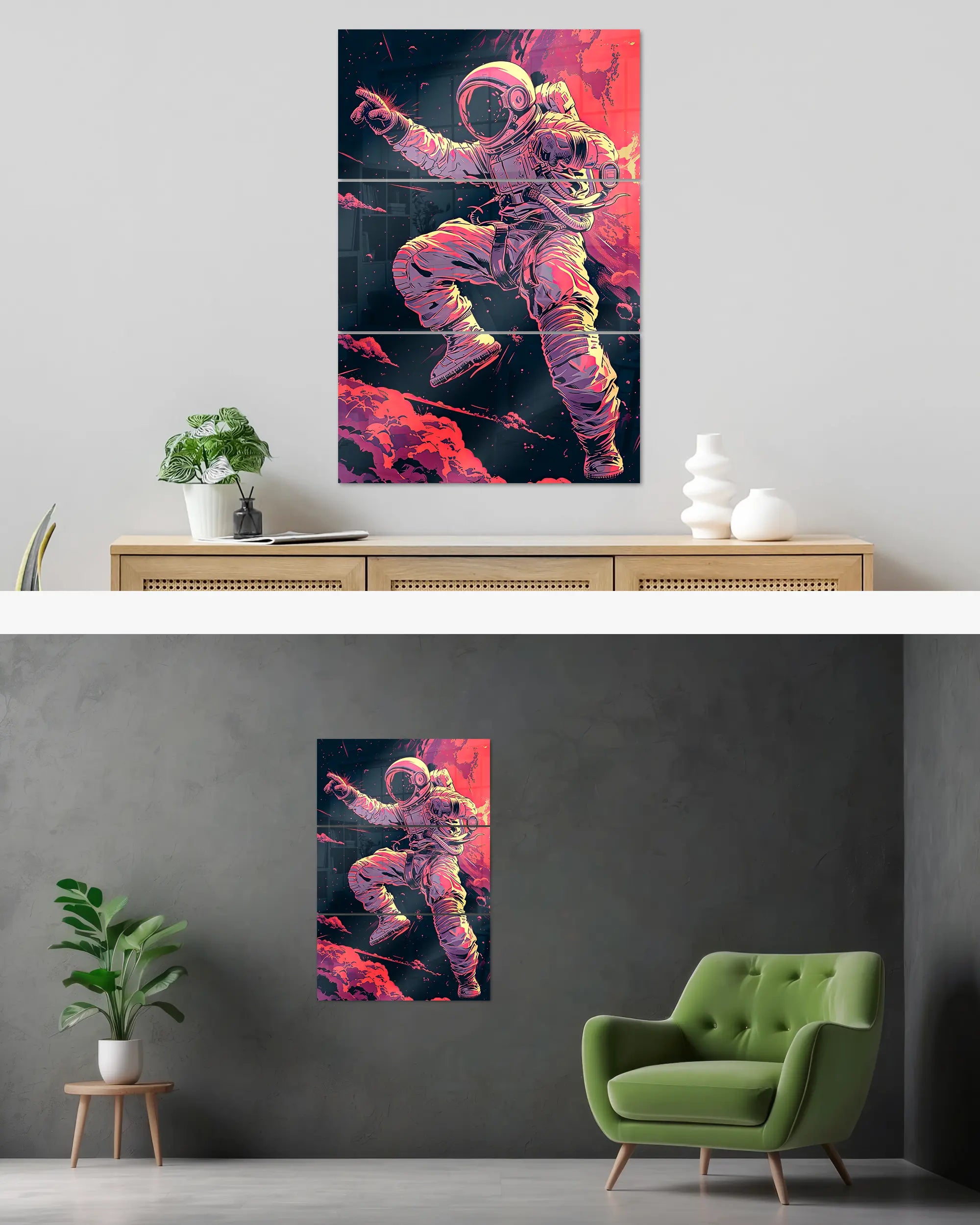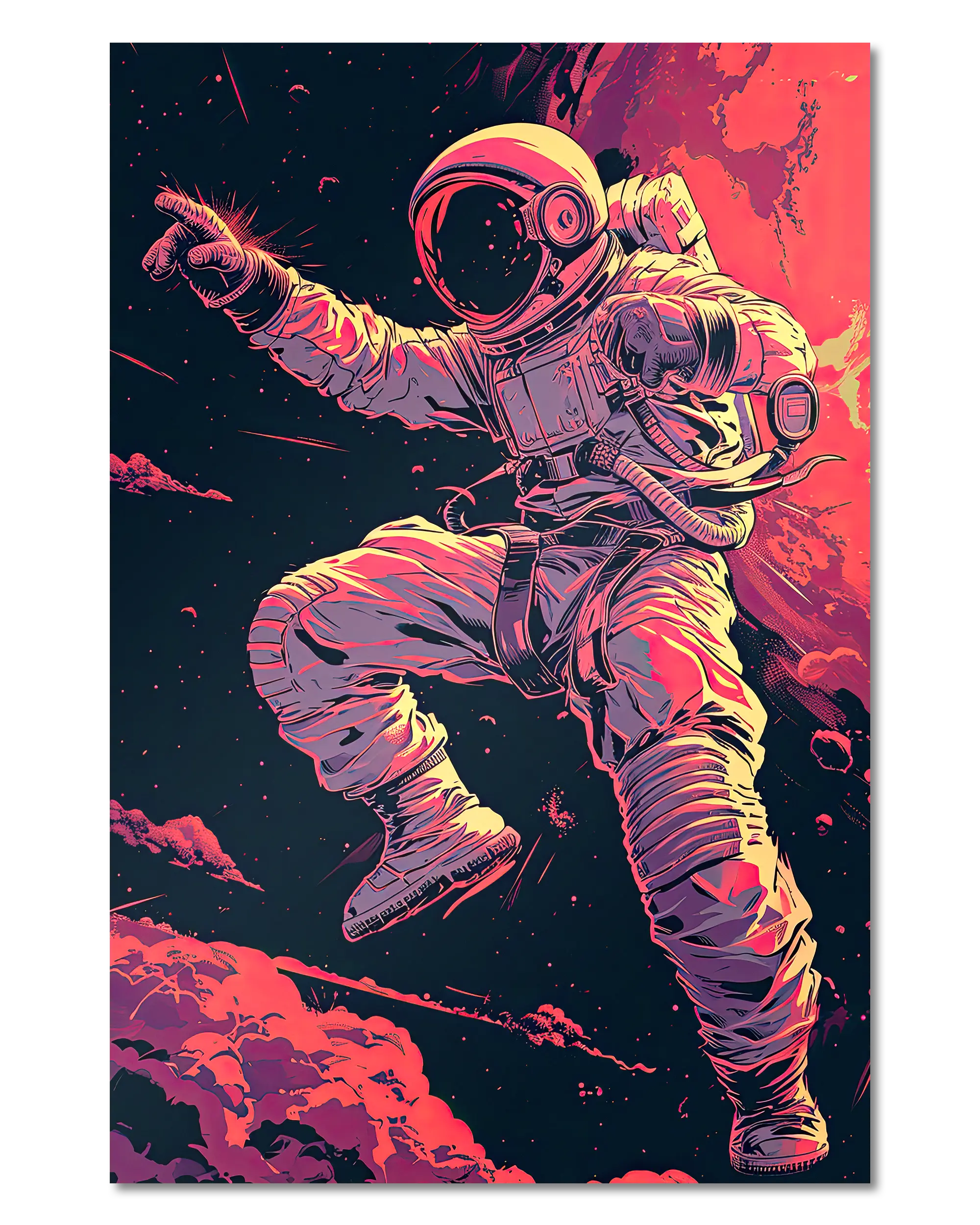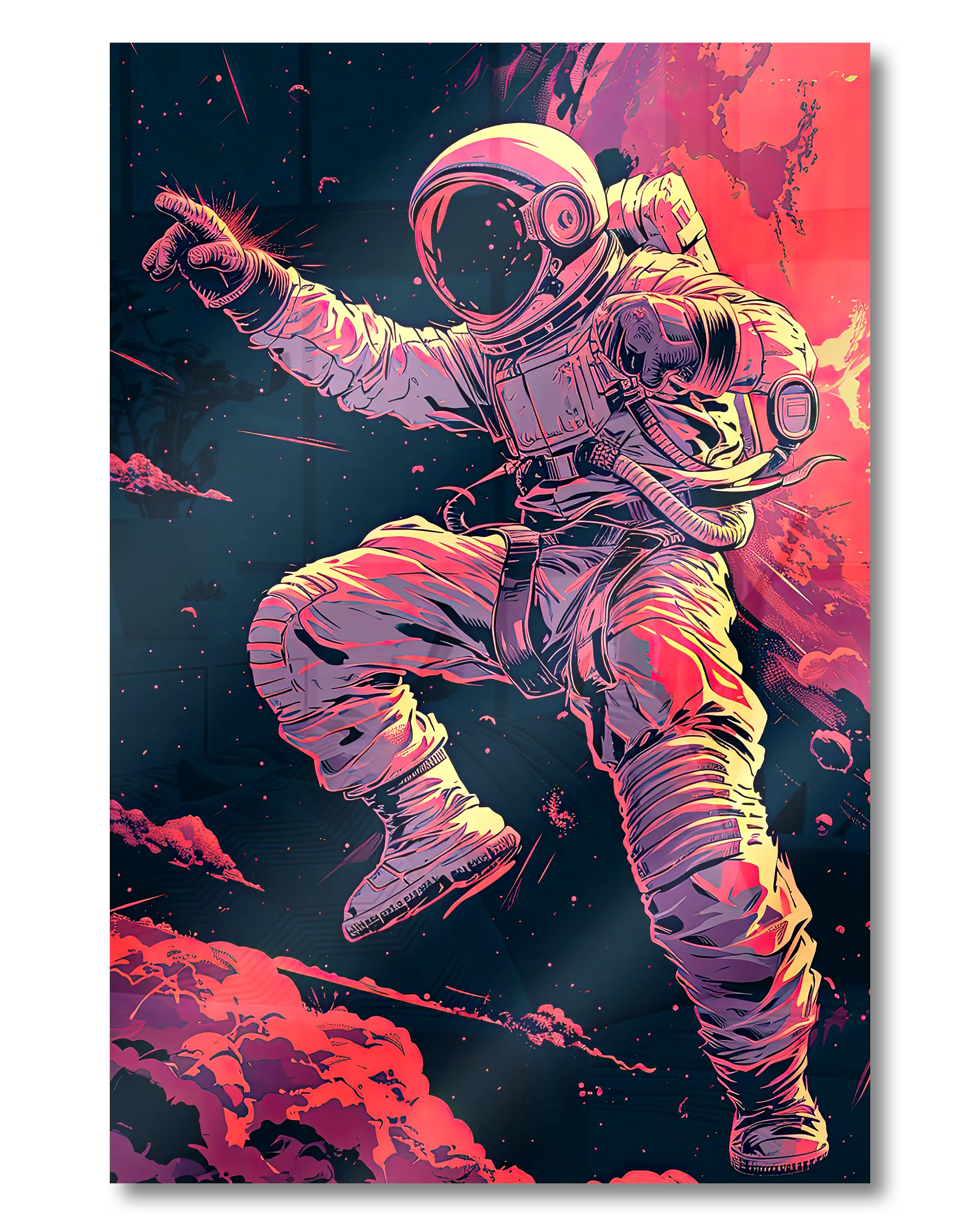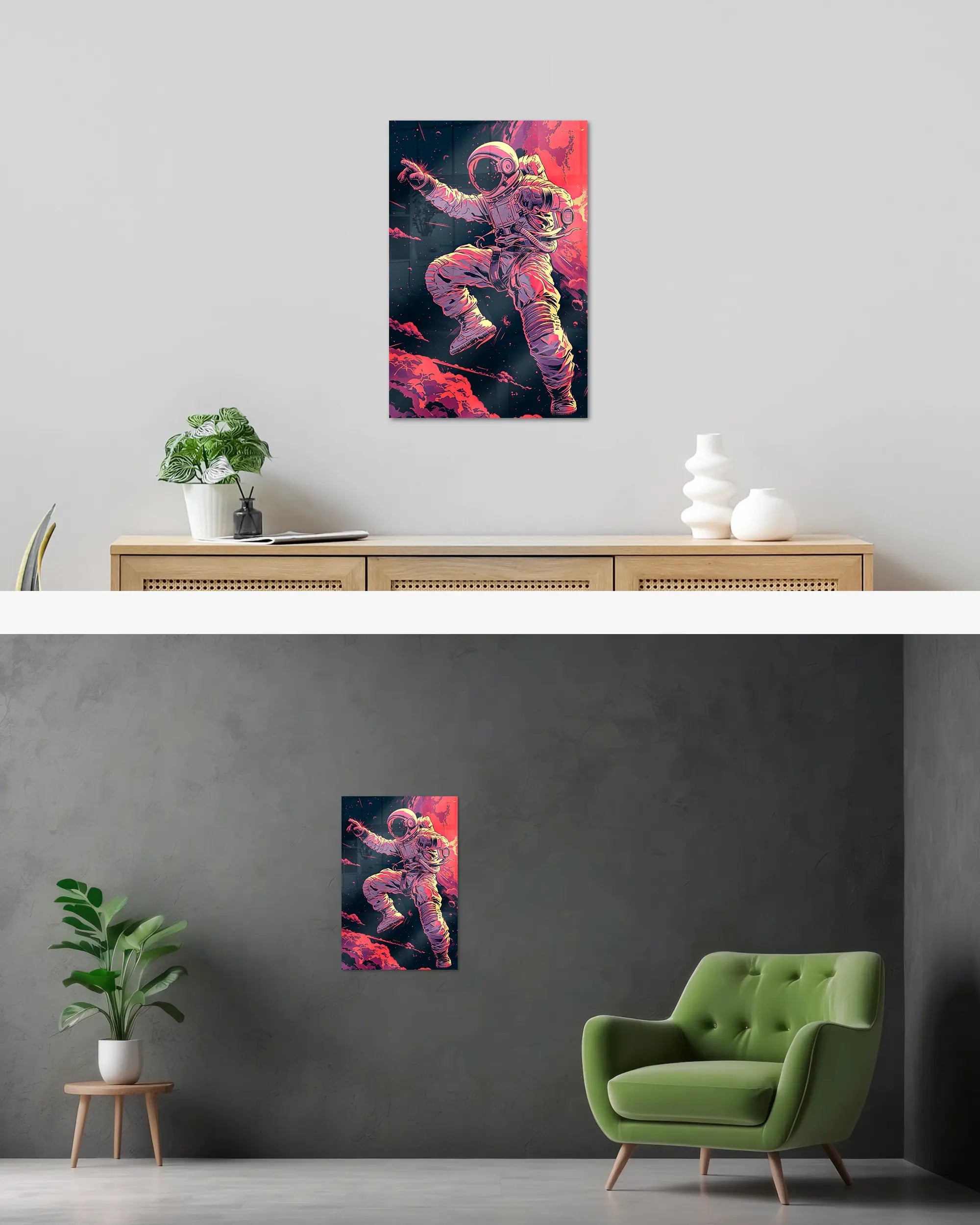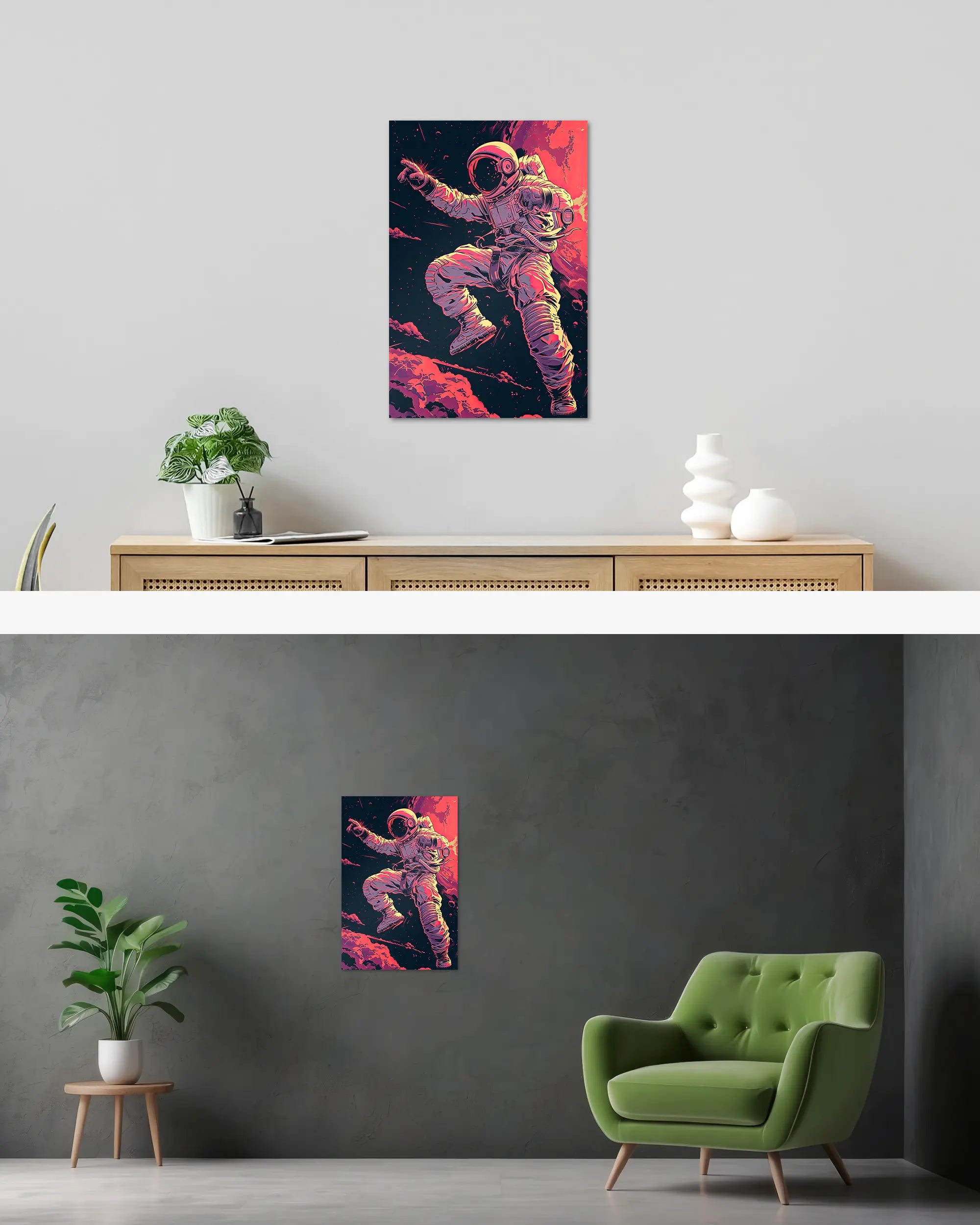 Was die Poster Plate „Space Stylin'“ von Maondo so besonders macht, erfährst du in den folgenden Abschnitten, aber zuerst das Wichtigste: Poster Plates sind das Beste aus der Welt von Postern und Leinwänden, vereint in einem Produkt. Sie sind so farbenstark und glatt wie hochwertige Poster und dabei gleichzeitig so robust und langlebig wie Leinwände. Besonders wegen ihrer Robustheit sind sie nicht nur zu ewigem Rumhängen verdammt, sondern eignen sich als echte Sammlerstücke.