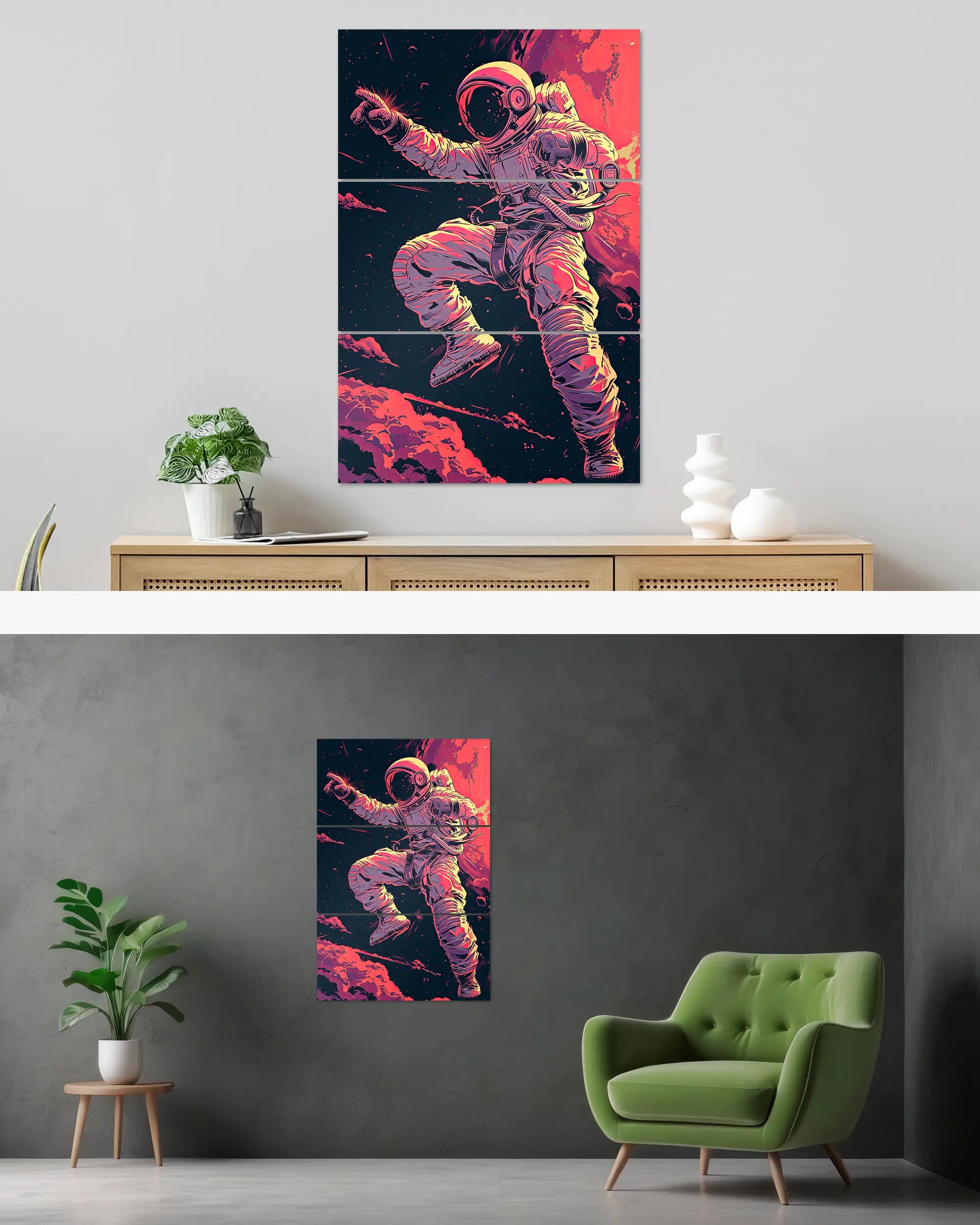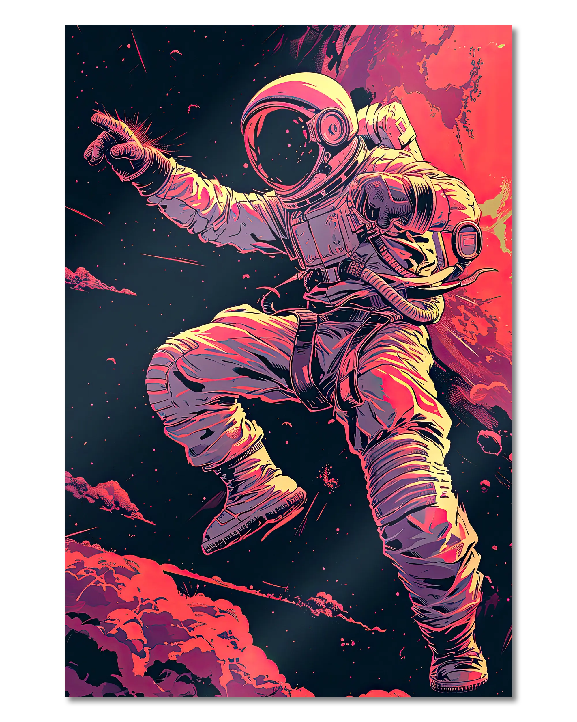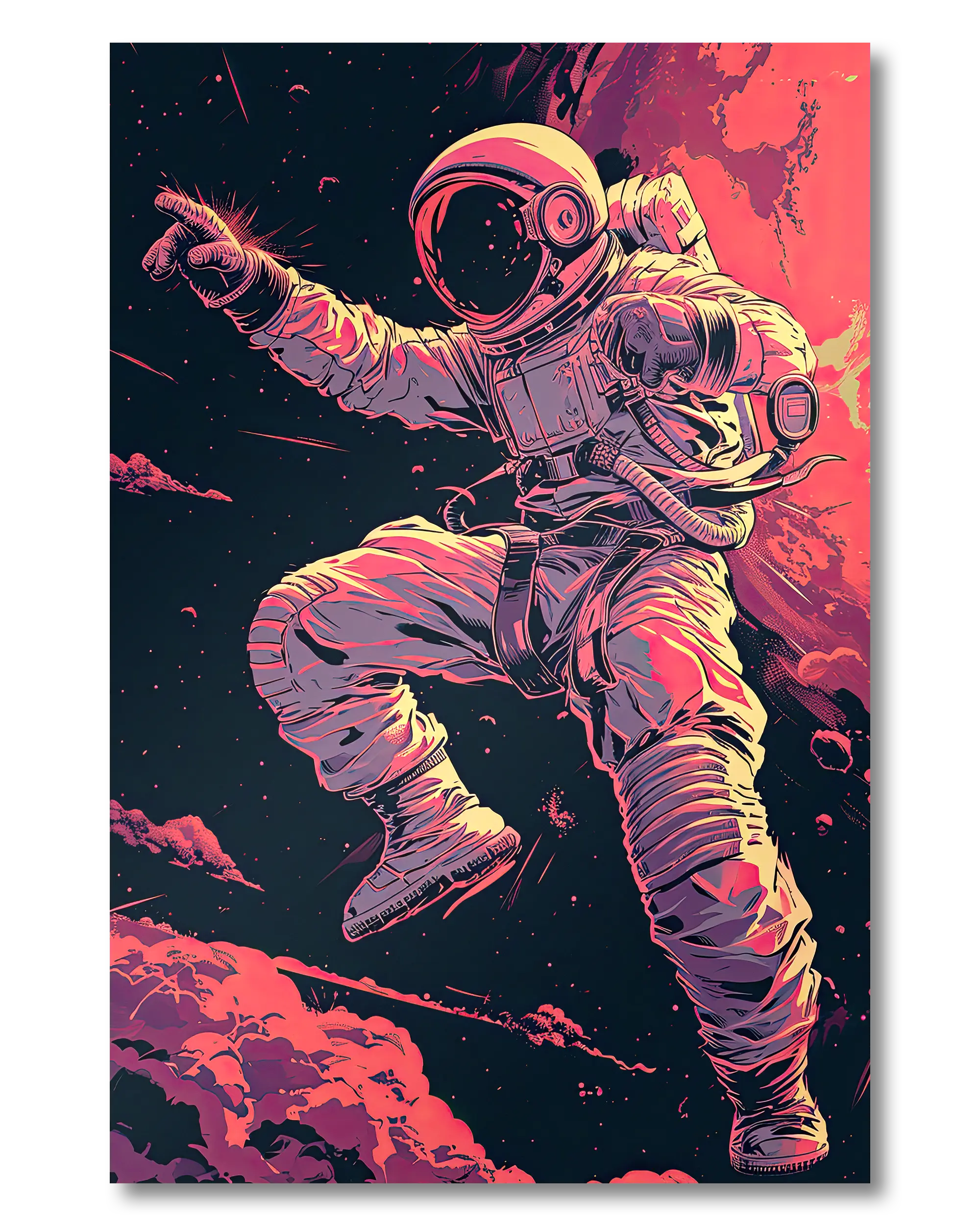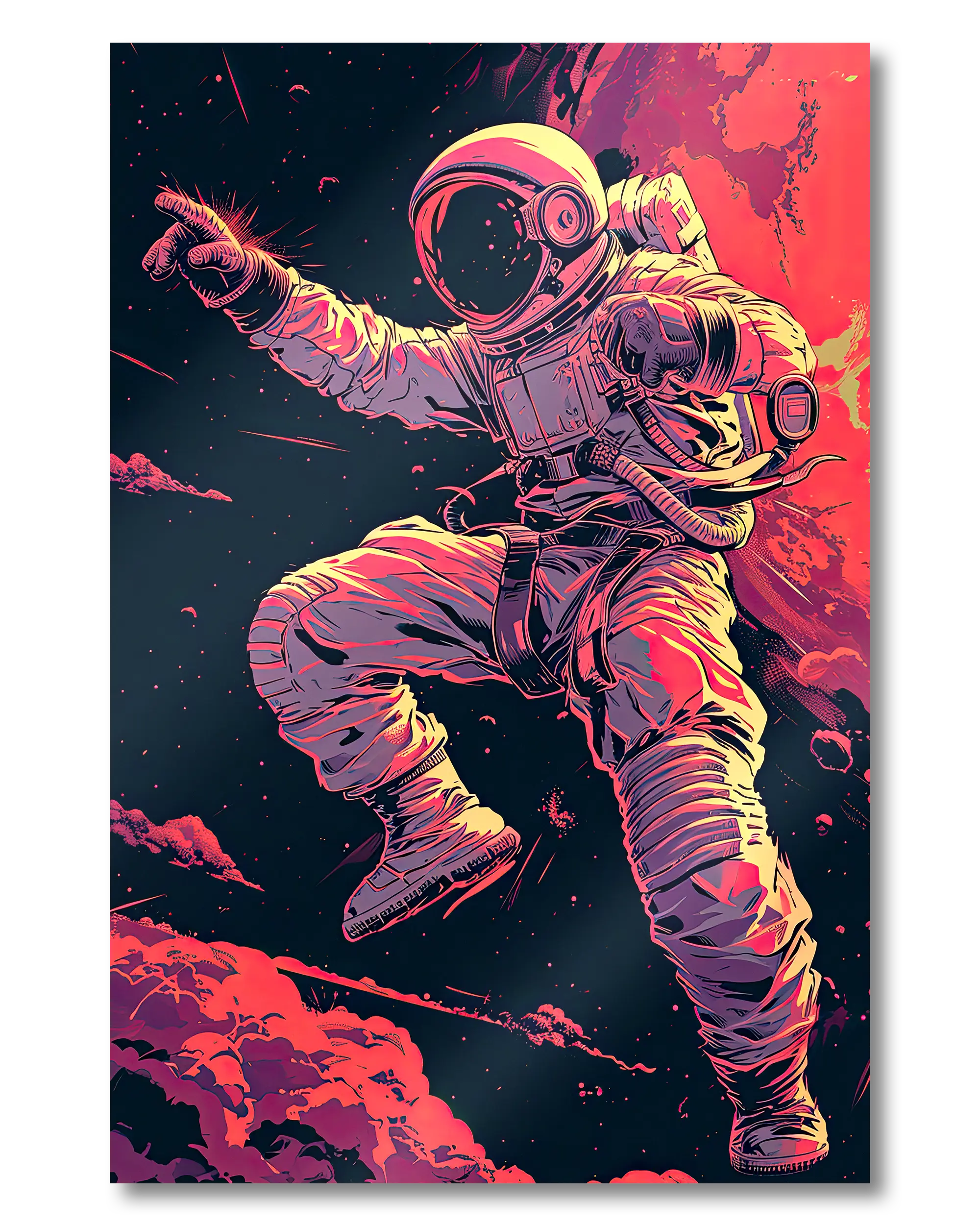 Was die Poster Plate „Space Stylin'“ von Maondo so besonders macht, erfährst du in den folgenden Abschnitten, aber zuerst das Wichtigste: Poster Plates sind das Beste aus der Welt von Postern und Leinwänden, vereint in einem Produkt. Sie sind so farbenstark und glatt wie hochwertige Poster und dabei gleichzeitig so robust und langlebig wie Leinwände. Besonders wegen ihrer Robustheit sind sie nicht nur zu ewigem Rumhängen verdammt, sondern eignen sich als echte Sammlerstücke.