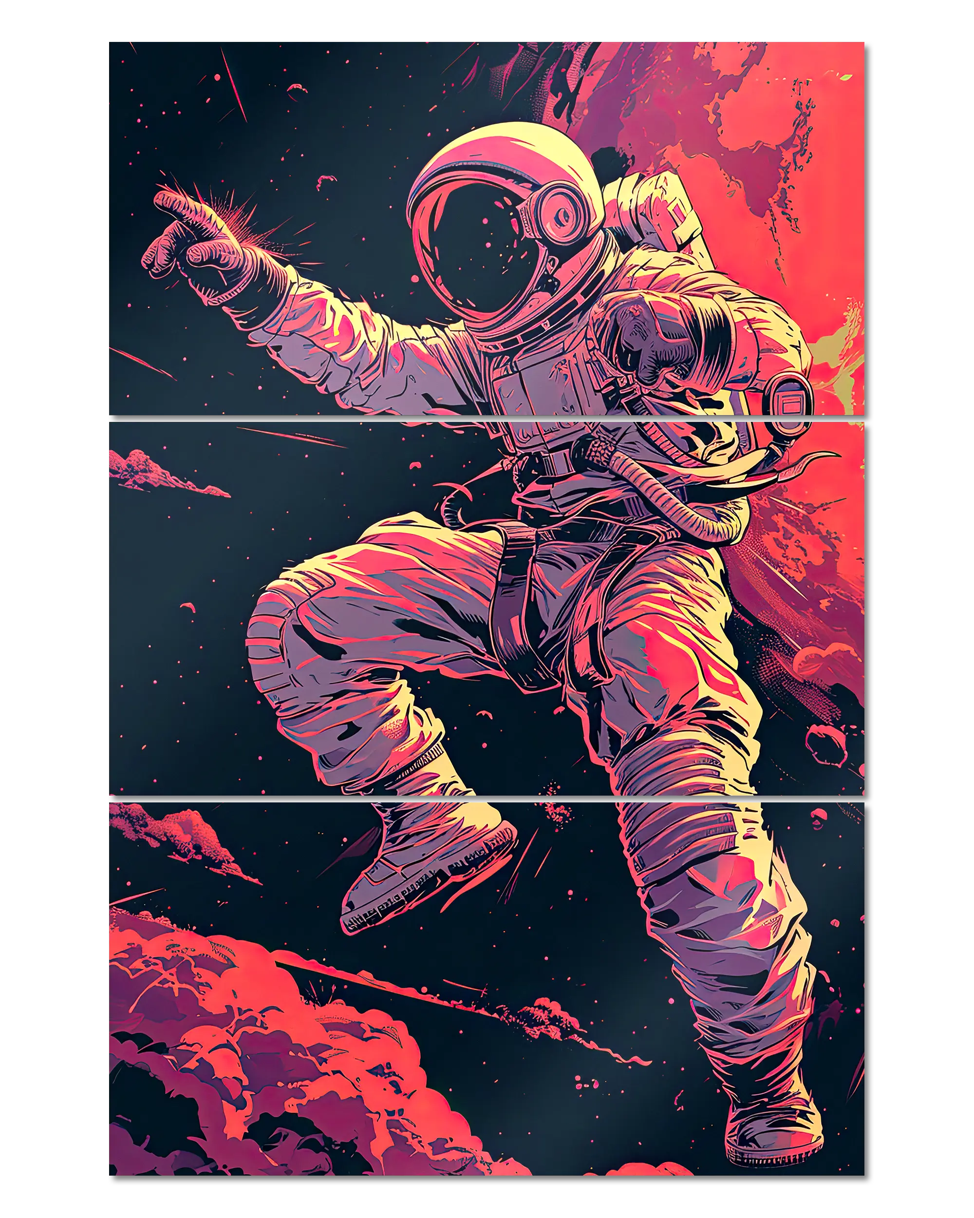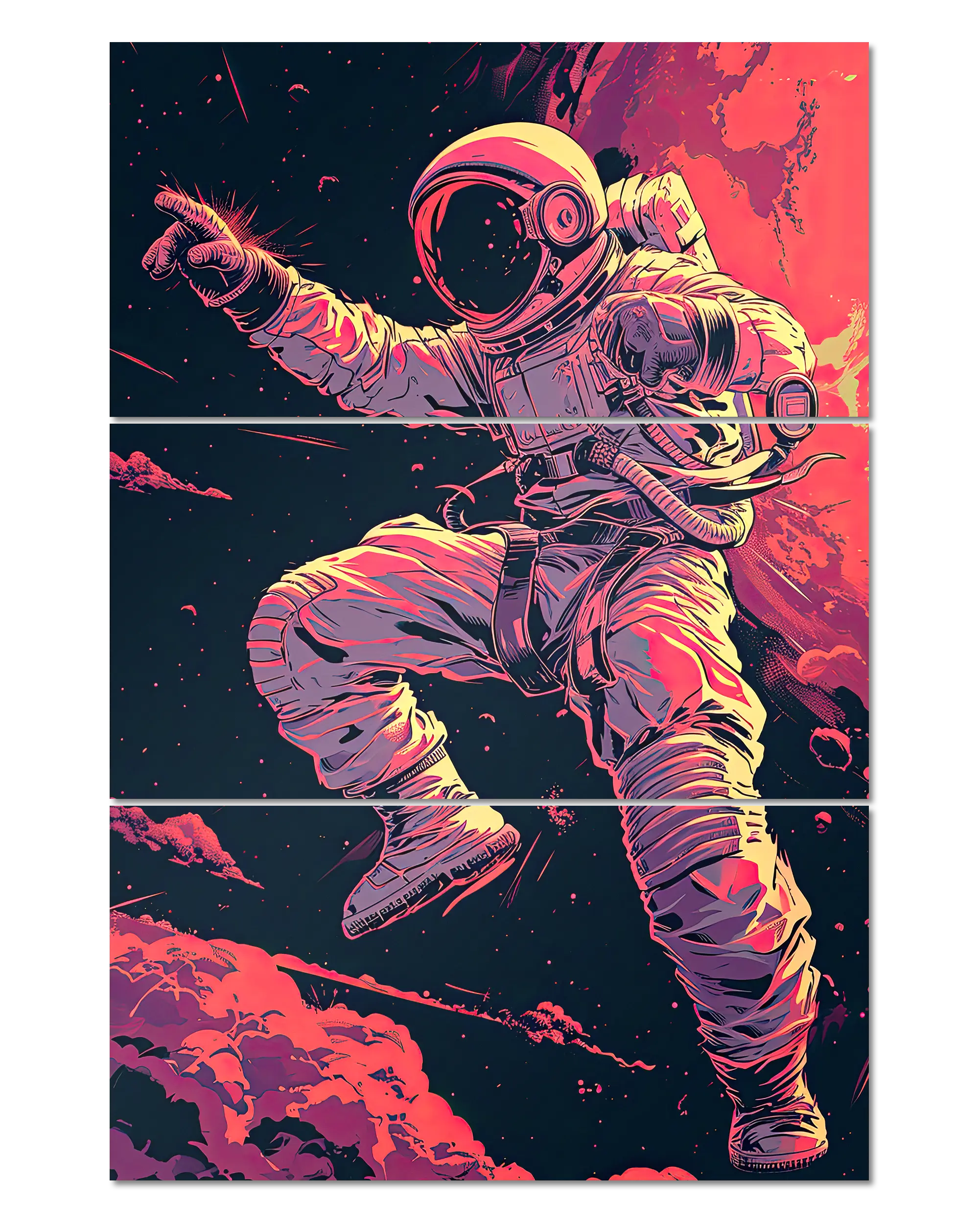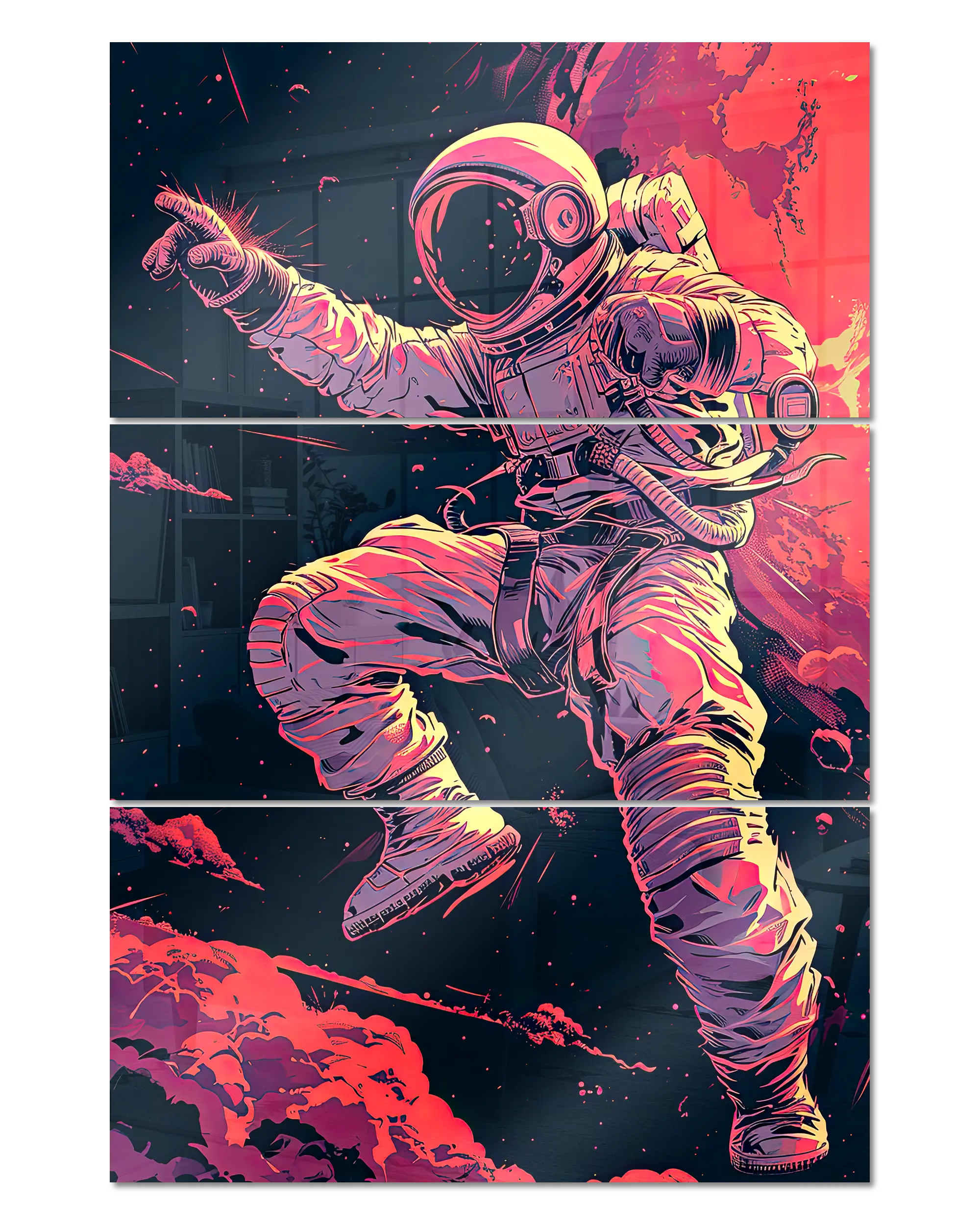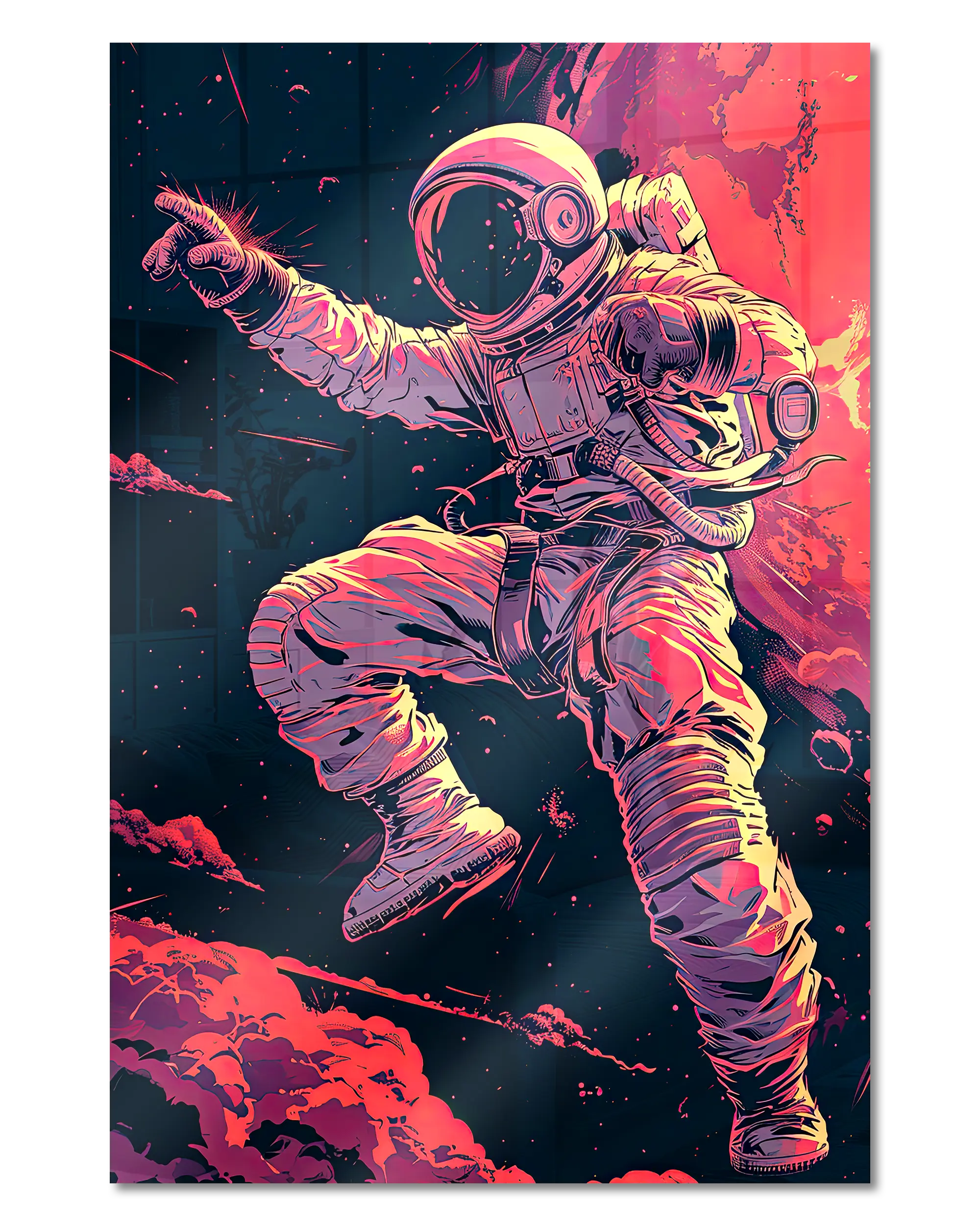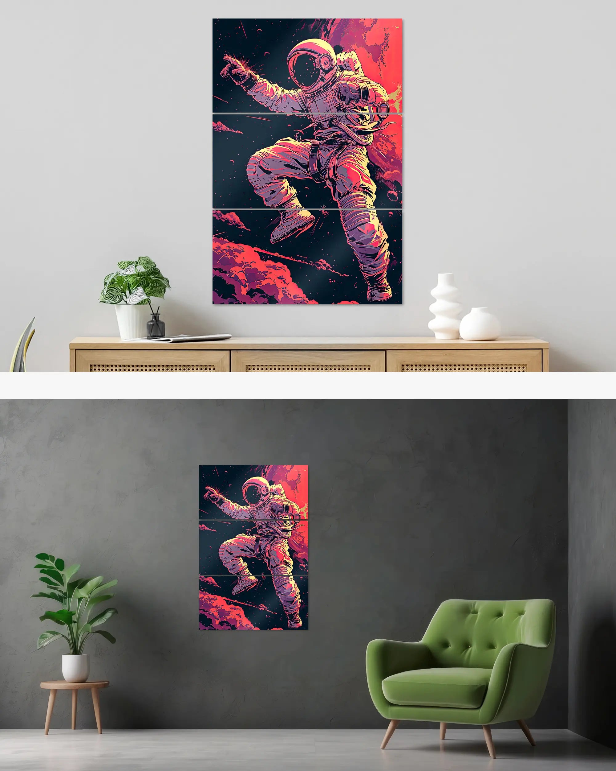 Was die Poster Plate „Space Stylin'“ von Maondo so besonders macht, erfährst du in den folgenden Abschnitten, aber zuerst das Wichtigste: Poster Plates sind das Beste aus der Welt von Postern und Leinwänden, vereint in einem Produkt. Sie sind so farbenstark und glatt wie hochwertige Poster und dabei gleichzeitig so robust und langlebig wie Leinwände. Besonders wegen ihrer Robustheit sind sie nicht nur zu ewigem Rumhängen verdammt, sondern eignen sich als echte Sammlerstücke.