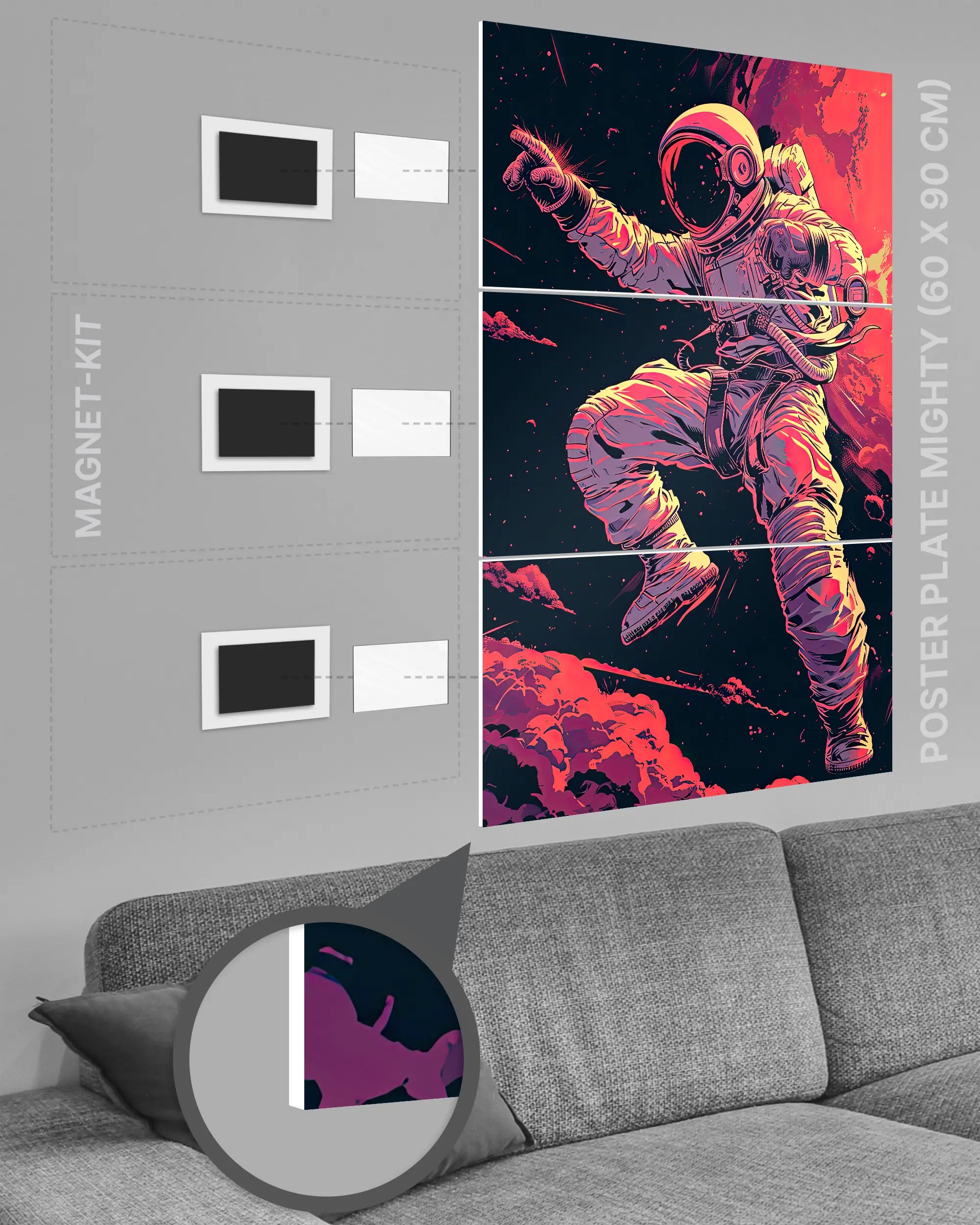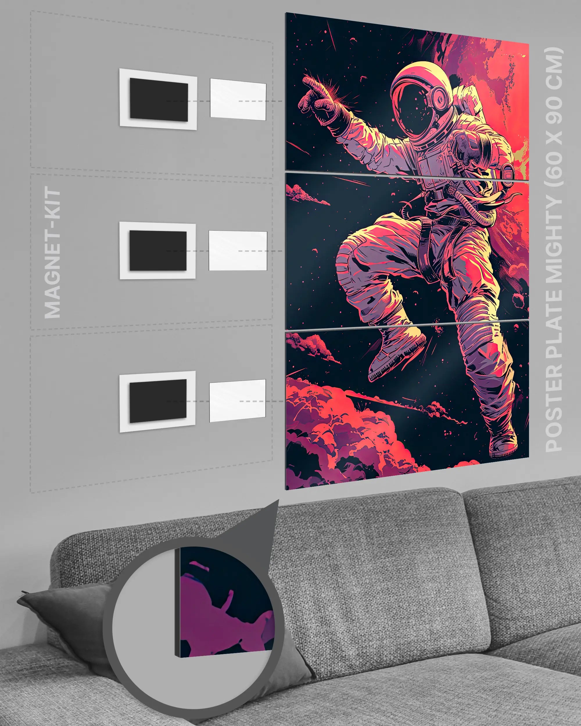 ✅ Kein Rahmen: Die Kombination von Poster Plate und Magnet-Kit macht auch einen zusätzlichen Rahmen überflüssig.