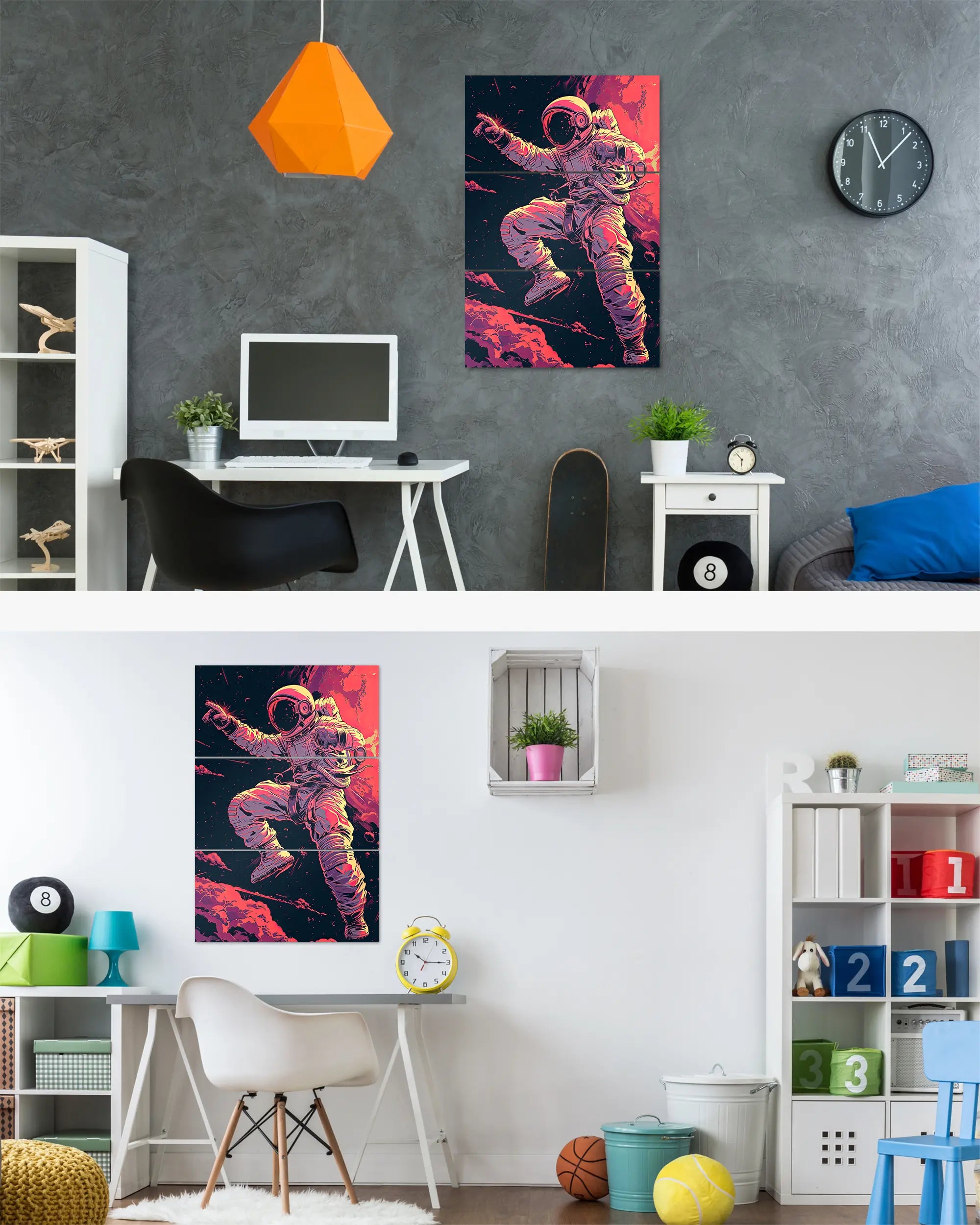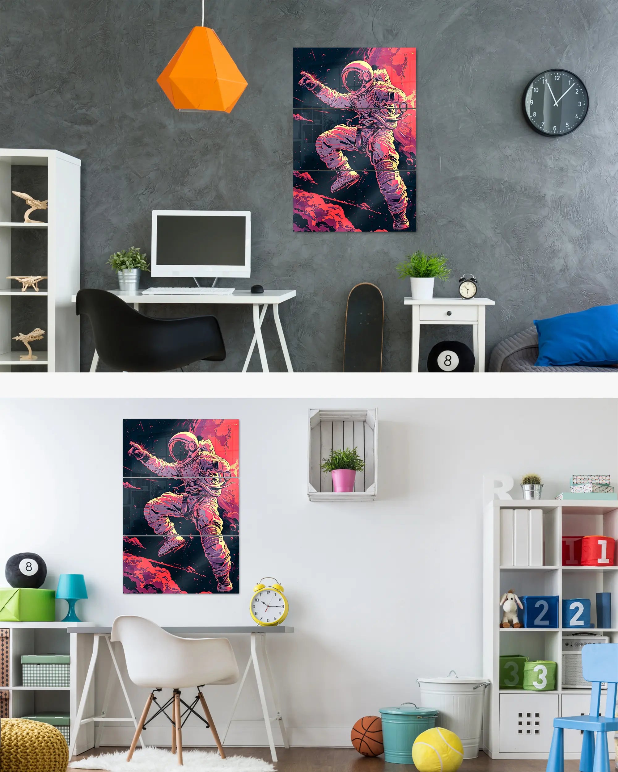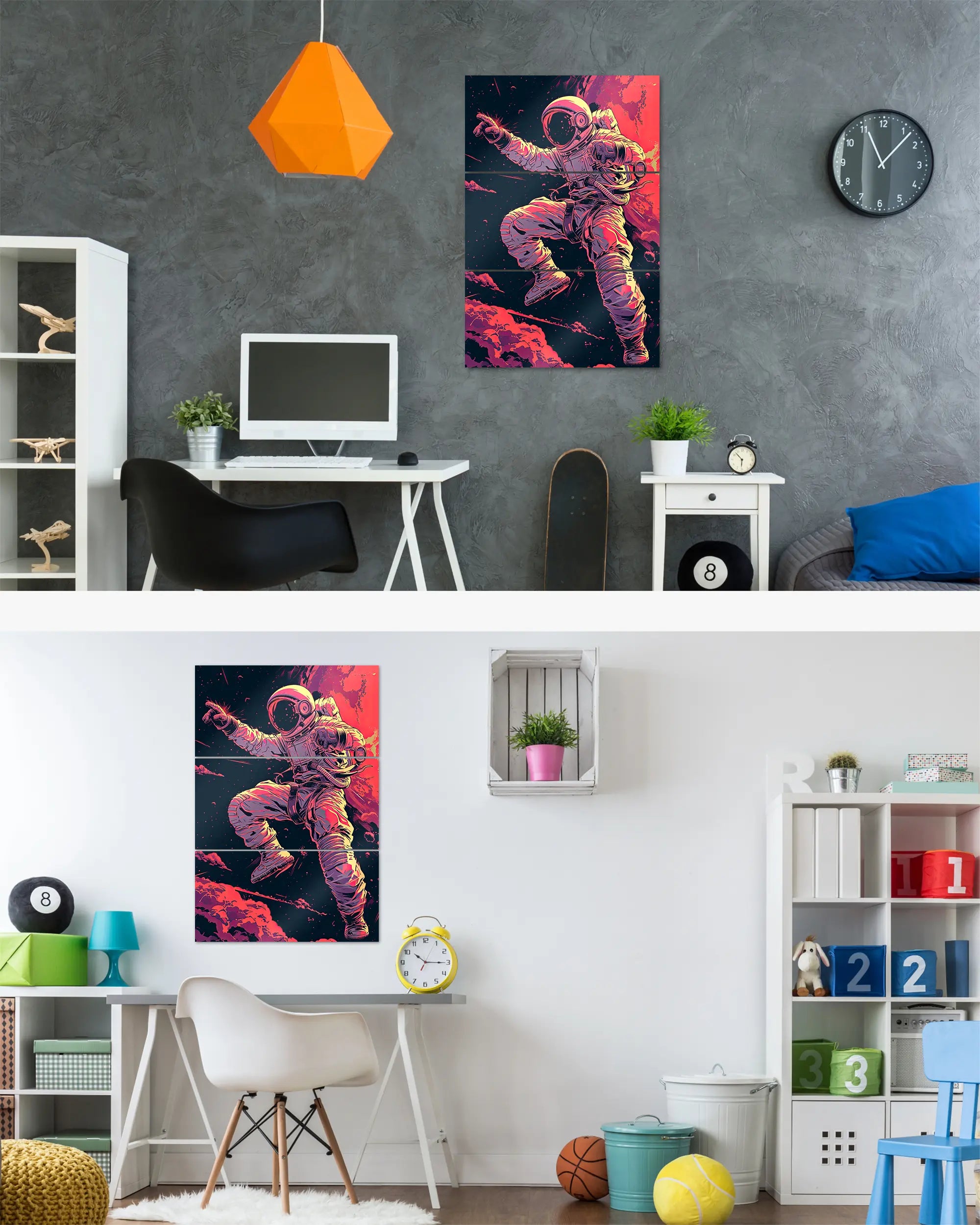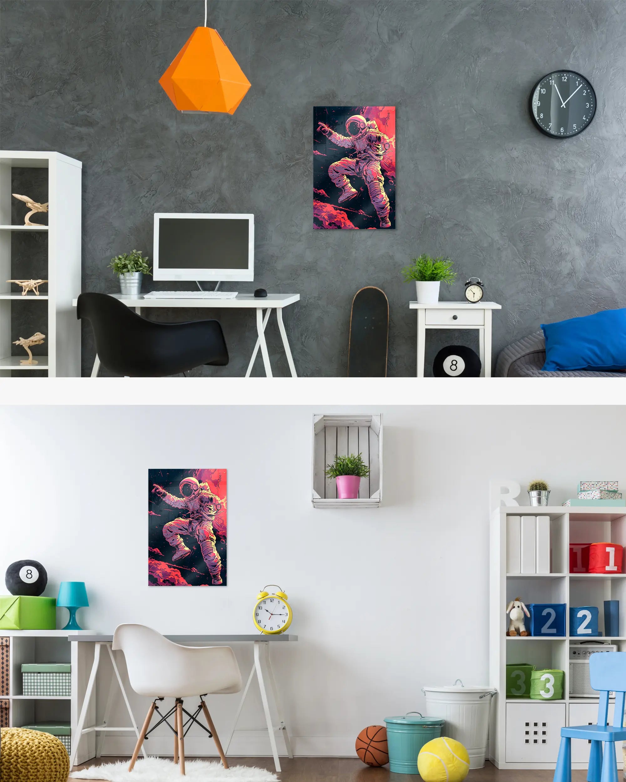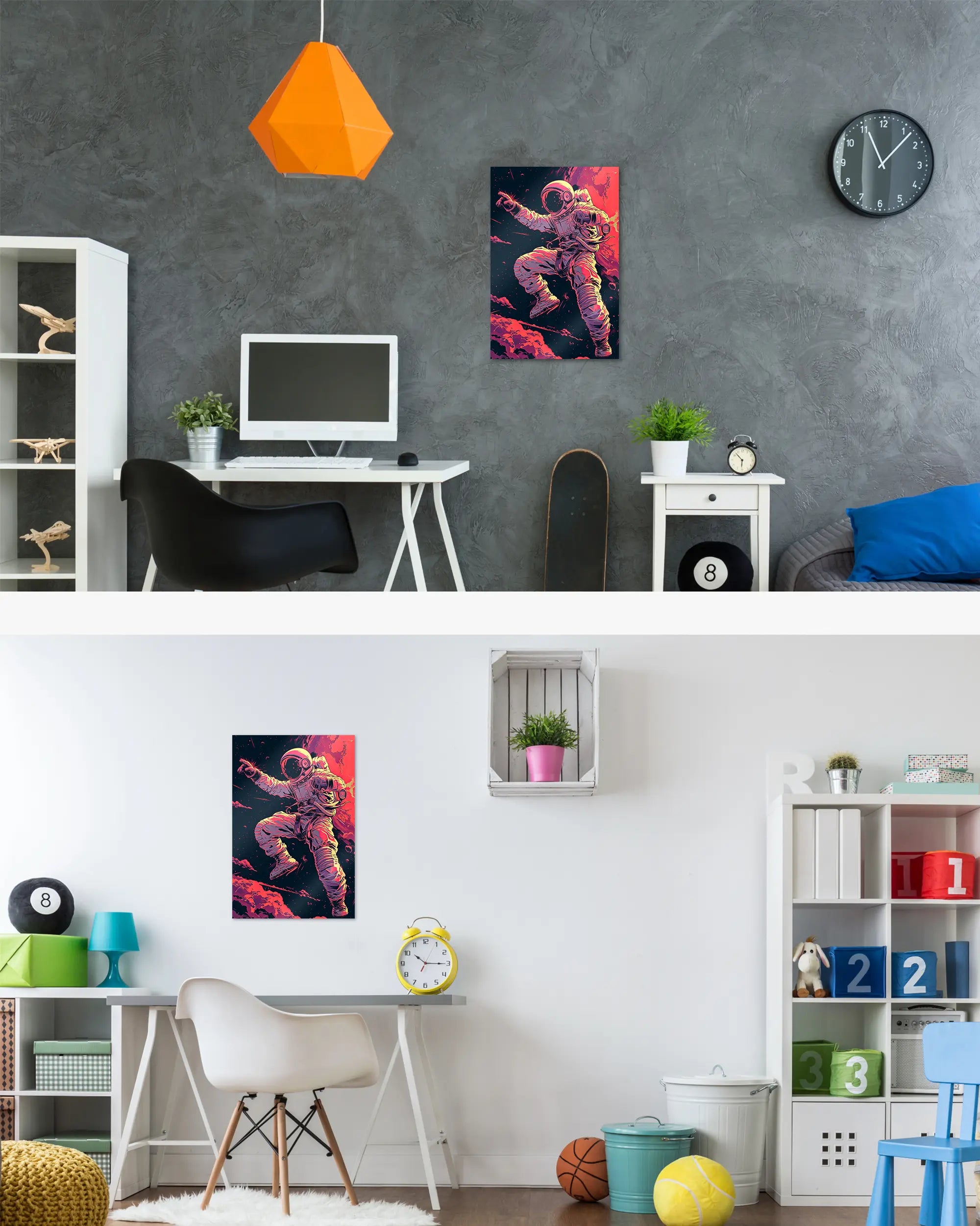 Ganz egal ob du zur Miete wohnst oder dein Eigenheim aufwerten möchtest. Diese Poster Plate von Maondo passt in fast jedes Zimmer, solange es relativ flache Wände hat. Über unsere Zimmersuche, kannst du direkt ein Design für ein bestimmtes Zimmer finden. Das Design „Space Stylin'“ passt fast überall, eignet sich aber besonders gut für folgende(s) Zimmer: