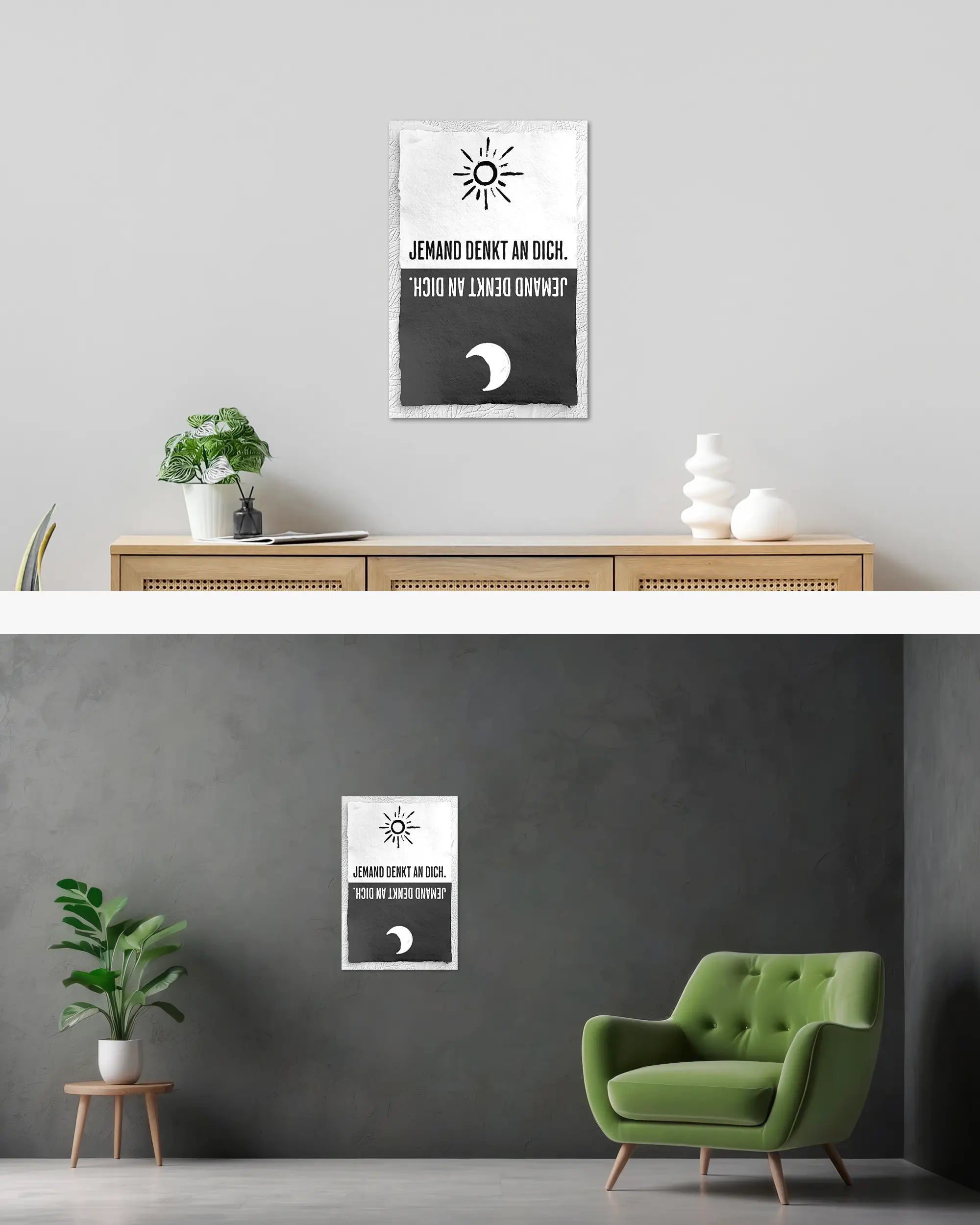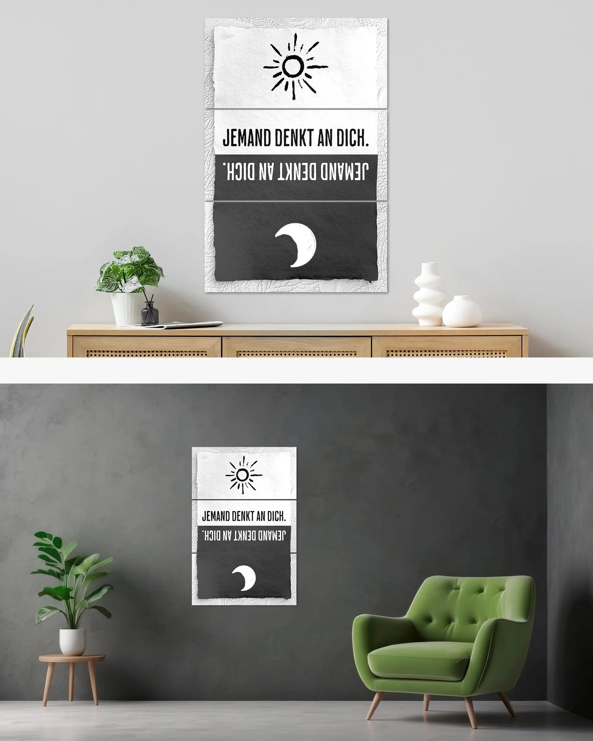 Was die Poster Plate „Tag und Nacht“ von Maondo so besonders macht, erfährst du in den folgenden Abschnitten, aber zuerst das Wichtigste: Poster Plates sind das Beste aus der Welt von Postern und Leinwänden, vereint in einem Produkt. Sie sind so farbenstark und glatt wie hochwertige Poster und dabei gleichzeitig so robust und langlebig wie Leinwände. Besonders wegen ihrer Robustheit sind sie nicht nur zu ewigem Rumhängen verdammt, sondern eignen sich als echte Sammlerstücke.
