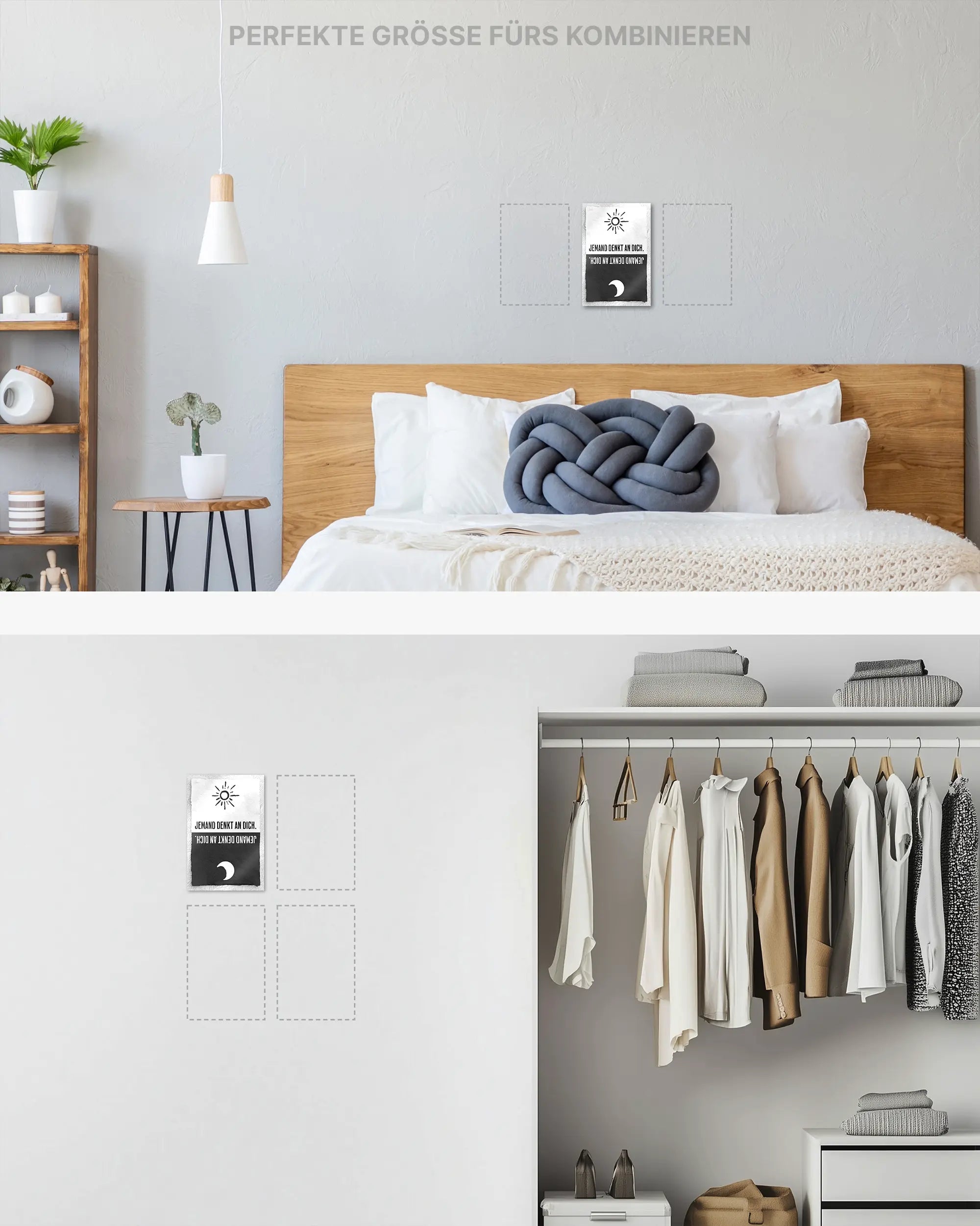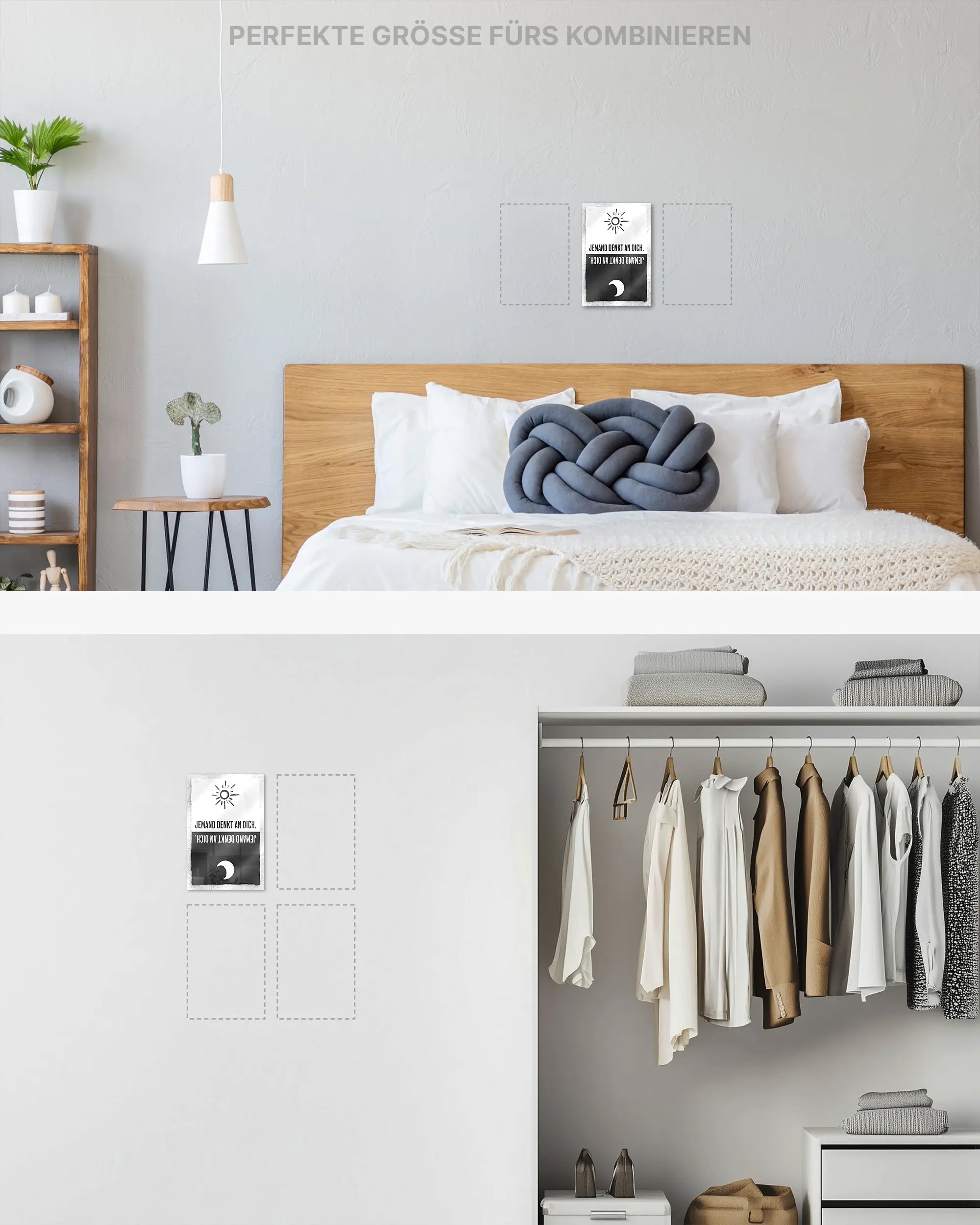 Ganz egal ob du zur Miete wohnst oder dein Eigenheim aufwerten möchtest. Diese Poster Plate von Maondo passt in fast jedes Zimmer, solange es relativ flache Wände hat. Über unsere Zimmersuche, kannst du direkt ein Design für ein bestimmtes Zimmer finden. Das Design „Tag und Nacht“ passt fast überall, eignet sich aber besonders gut für folgende(s) Zimmer: