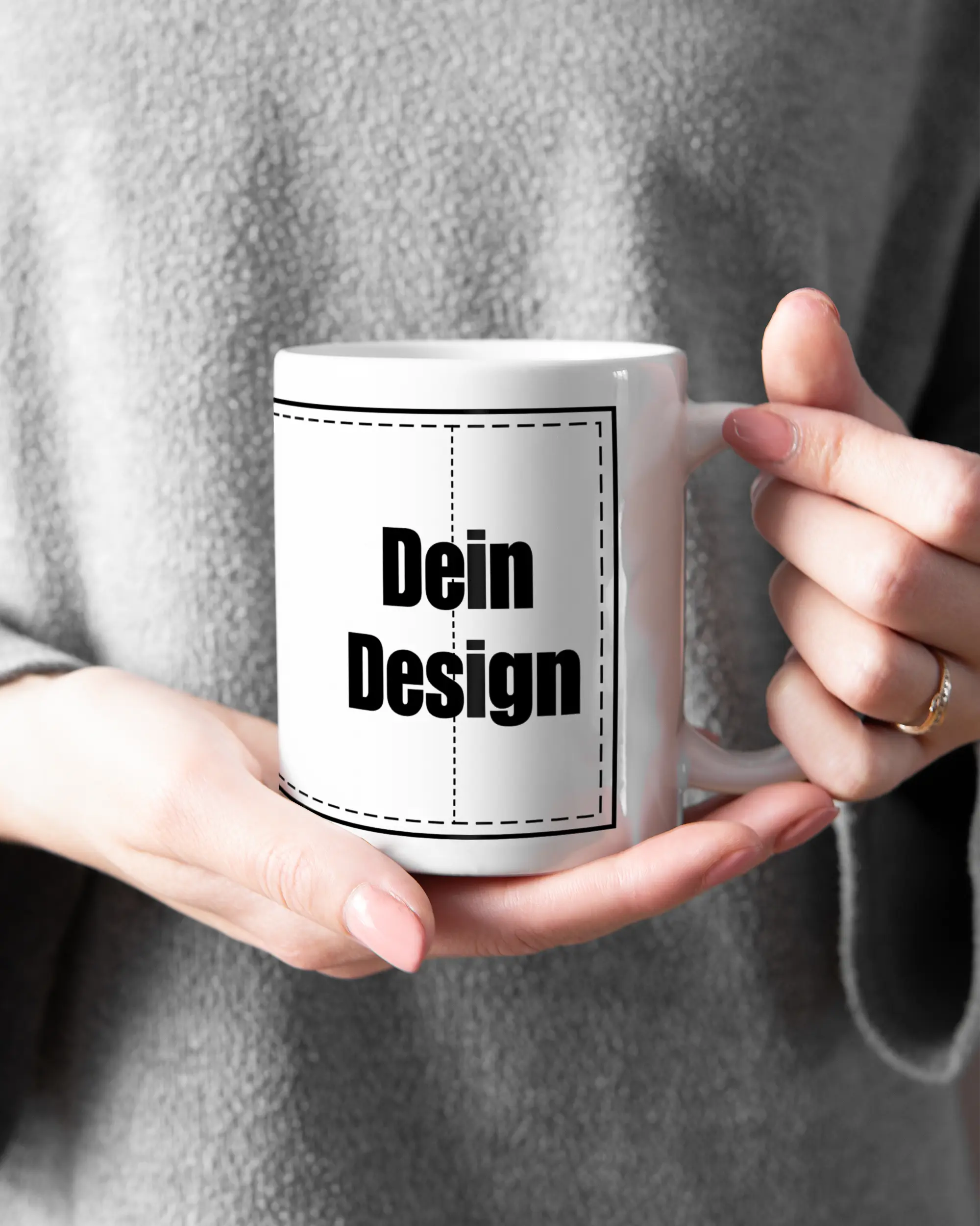 Die Weiße Tasse ist perfekt für Rechts- und Linkshänder geeignet, da sie beidseitig bedruckt ist.