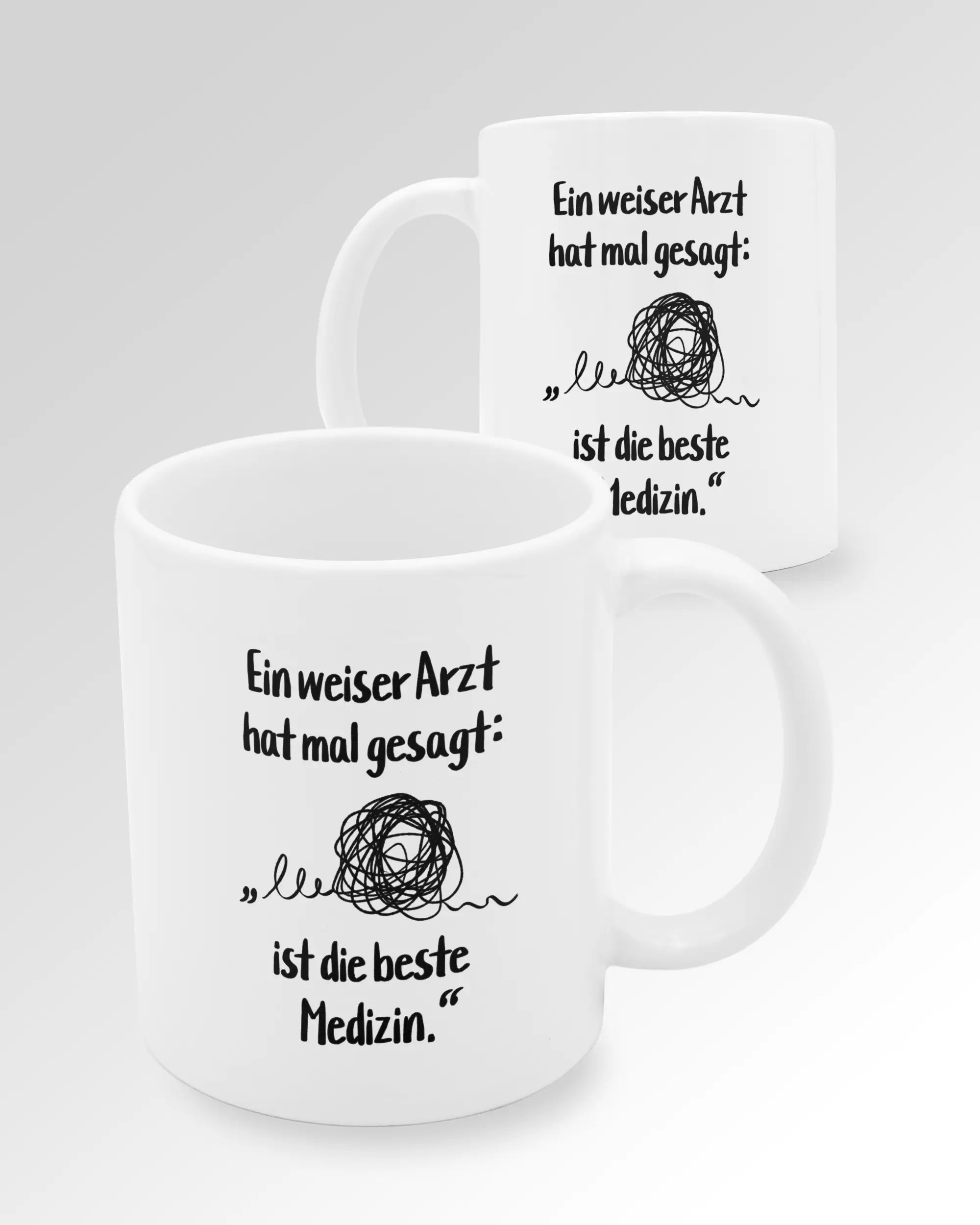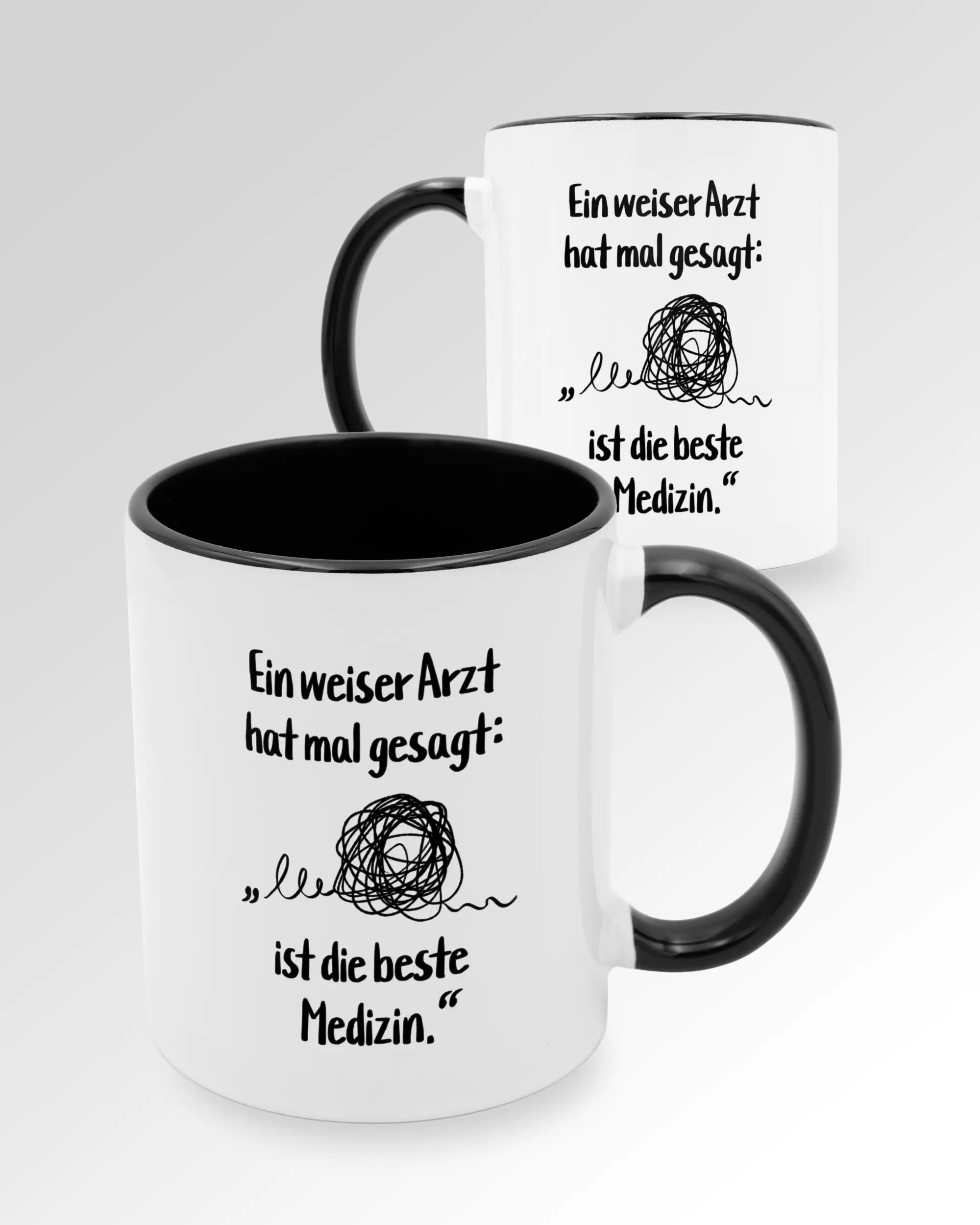 Unser Tassen Design „Weiser Arzt“ ist in drei verschiedenen Farben erhältlich. Bereit für eine echt stilvolle Tasse, für die dich jeder vergöttert? Dann empfehlen wir dir die Tasse Schwarz-Weiß. Du suchst eine schlichte weiße Tasse ohne Schnick-Schnack? Dann ist unsere weiße Tasse genau richtig für dich. Wenn du gerne aus der Masse herausstichst und eher der dunklen Seite angehörst, solltest du ein Auge auf die schwarze Tasse werfen. Deine Farbe, deine Wahl.